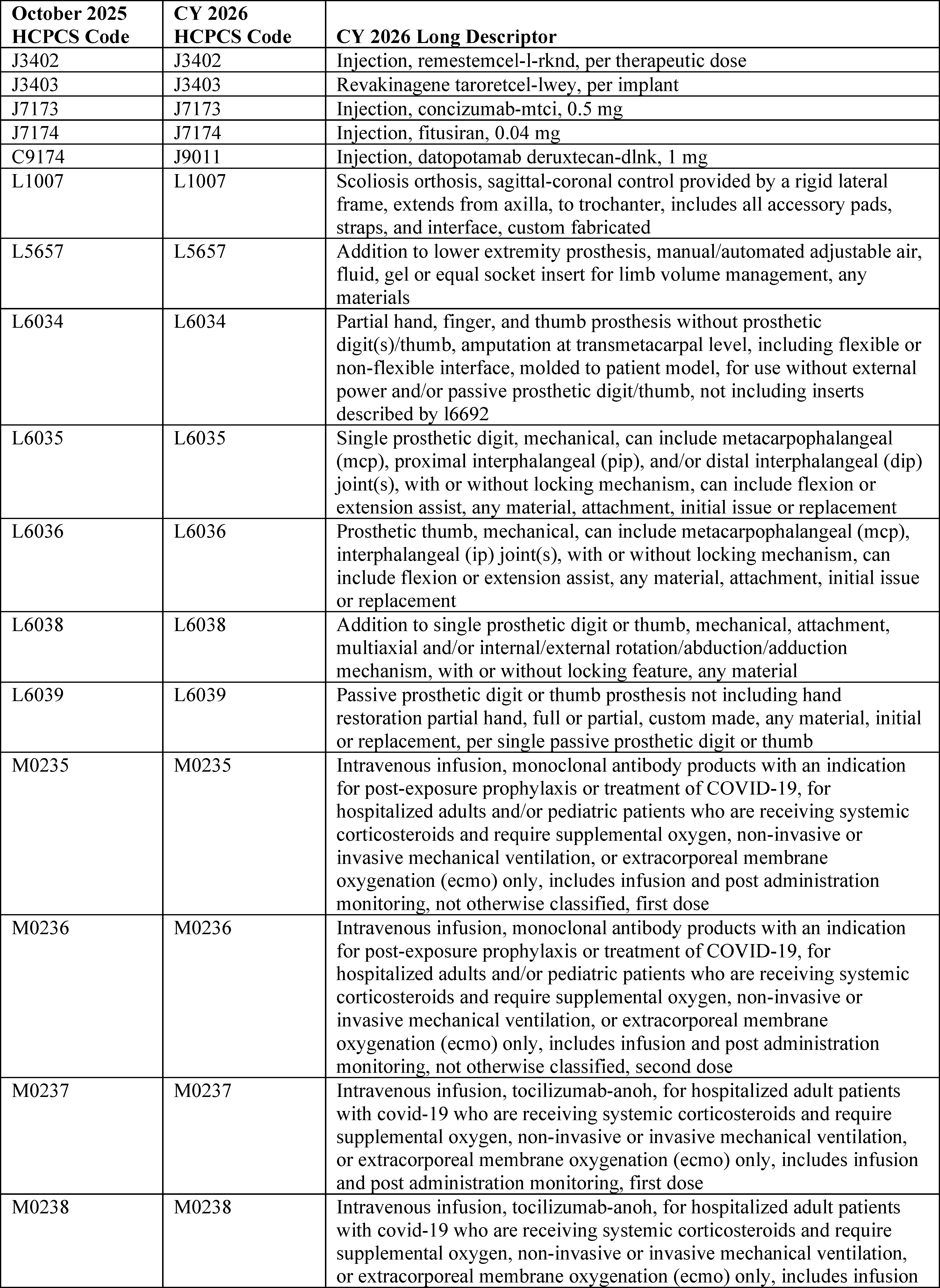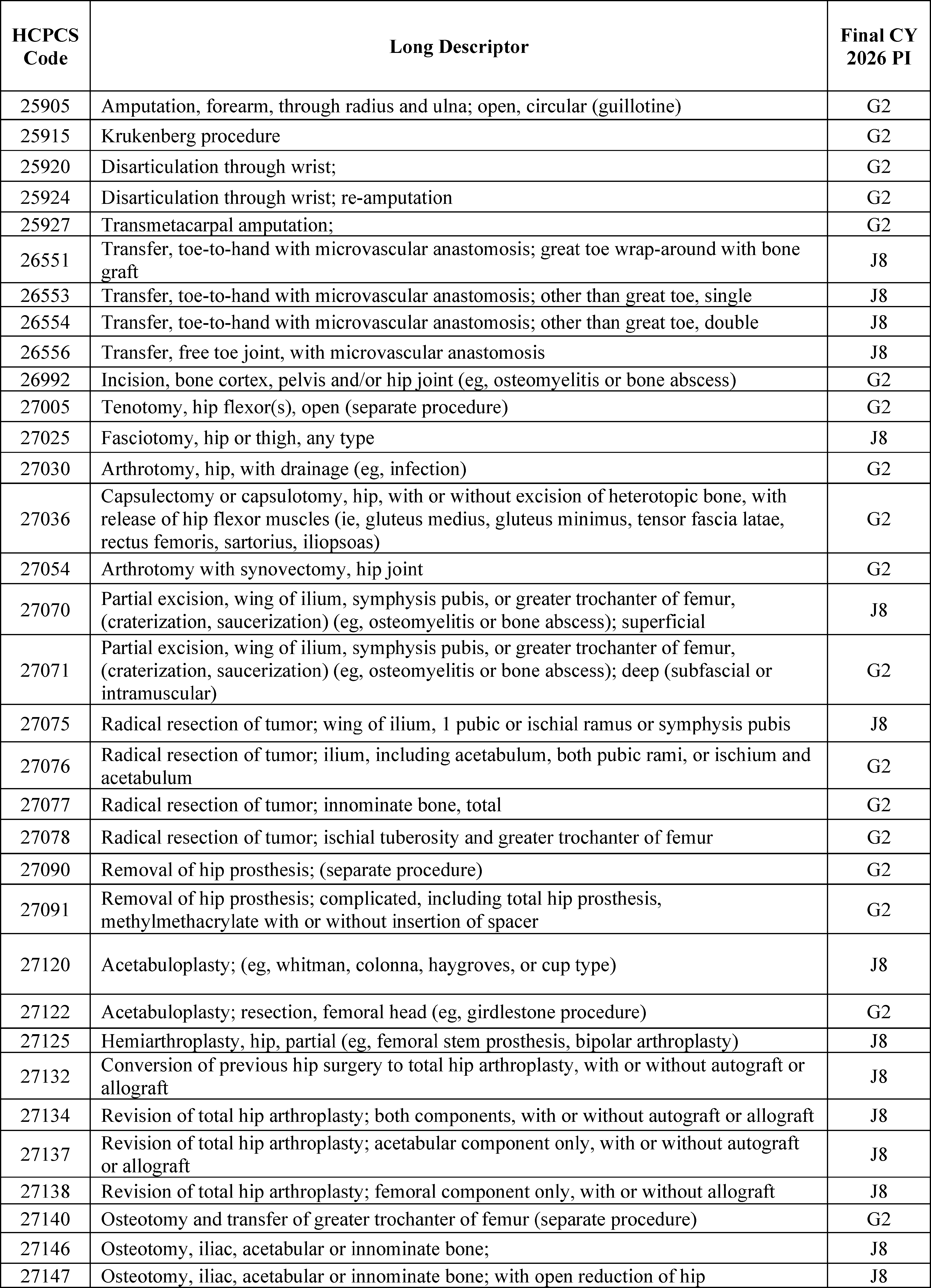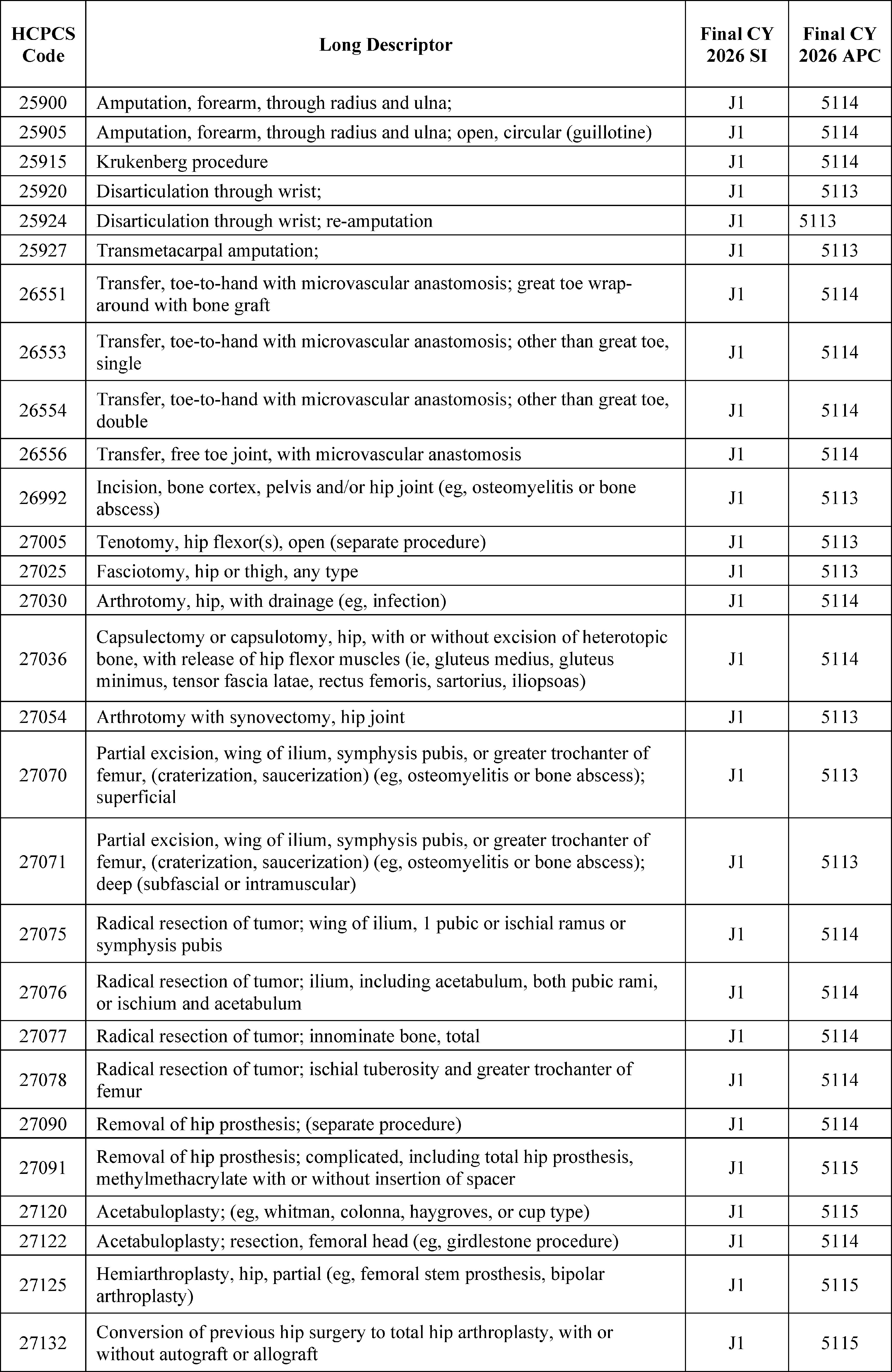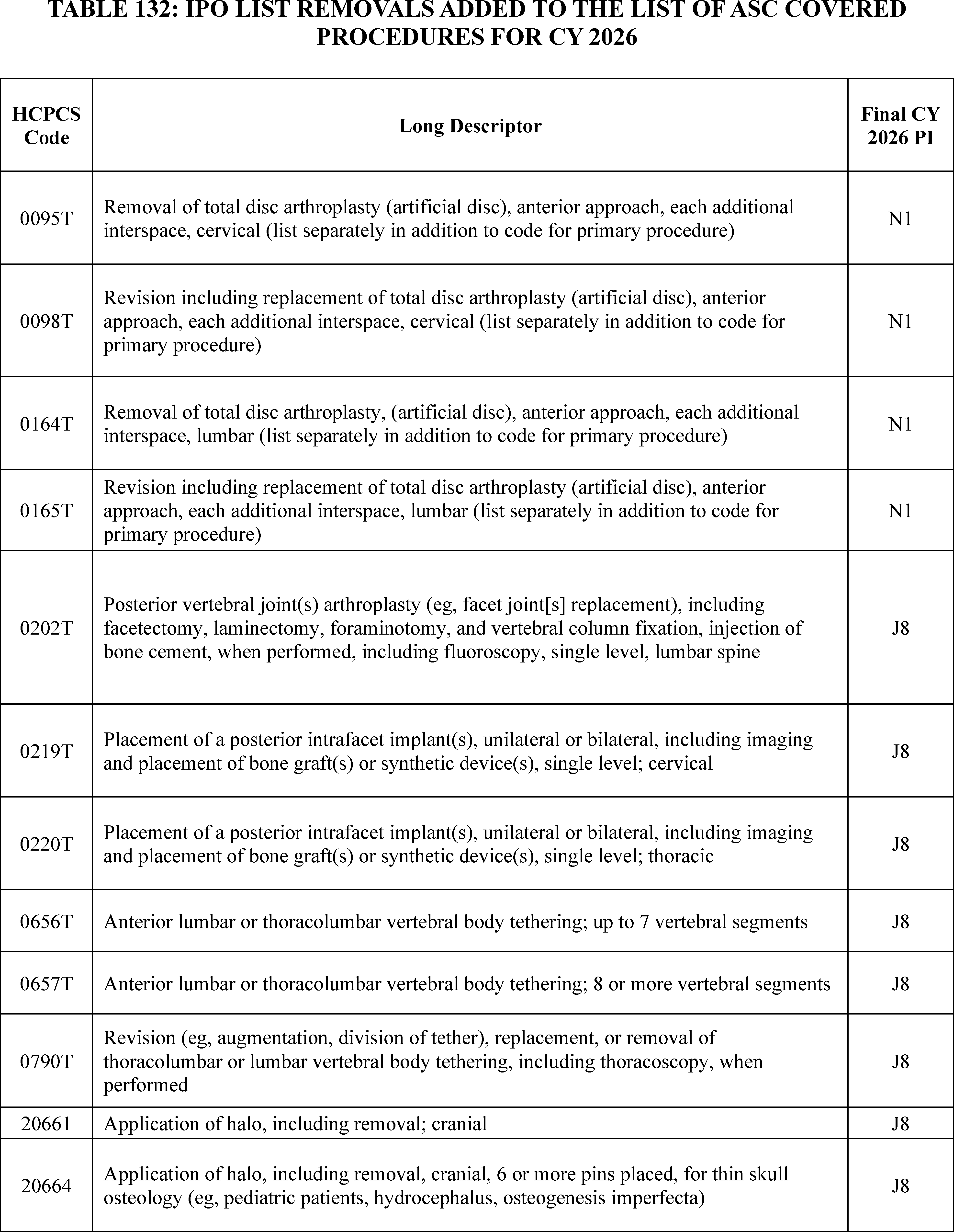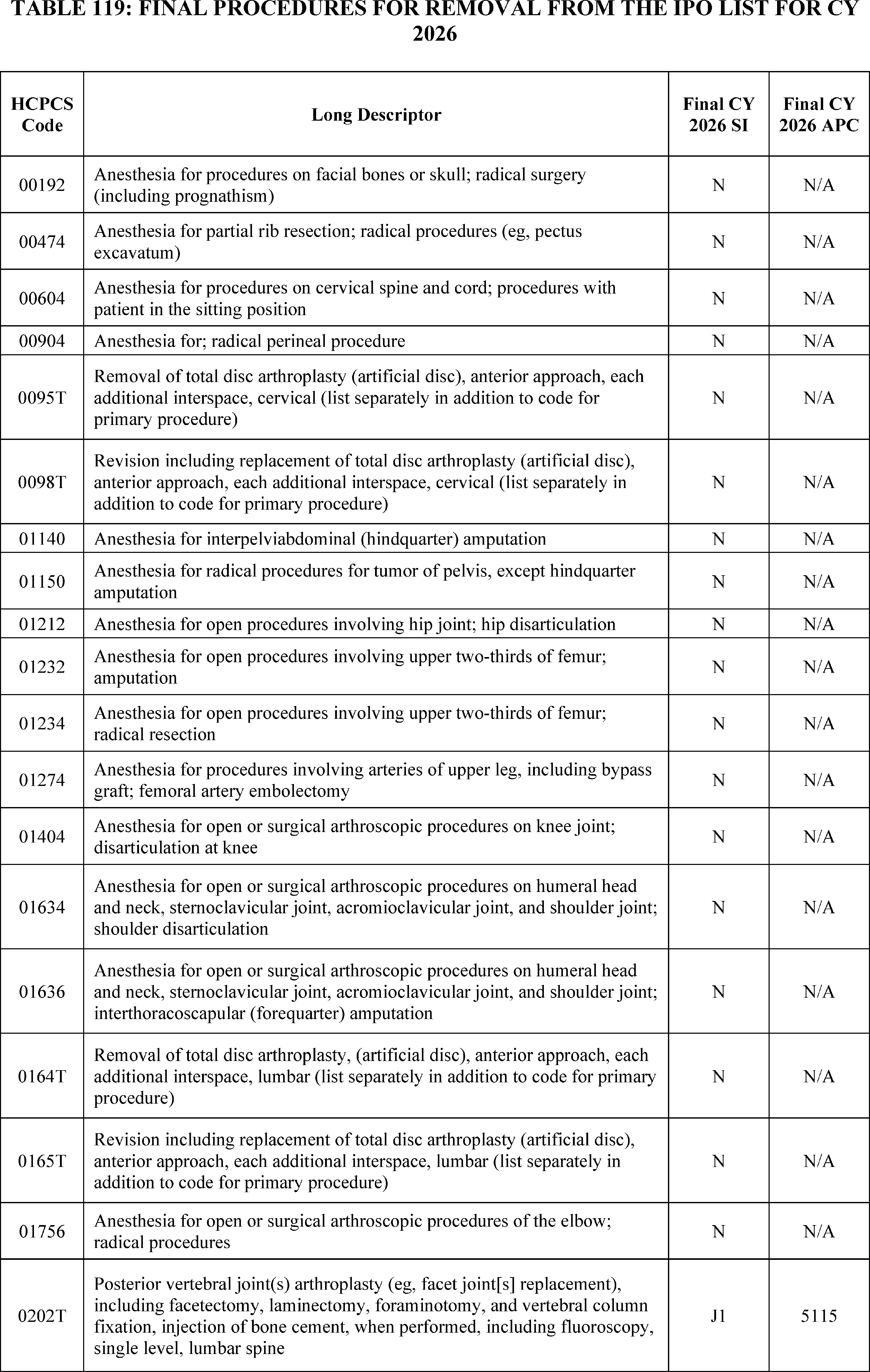 - Changes to the Inpatient Only (IPO) List: For CY 2026, we are phasing out the IPO list over 3 years, beginning with the removal of 285 mostly musculoskeletal services for CY 2026.