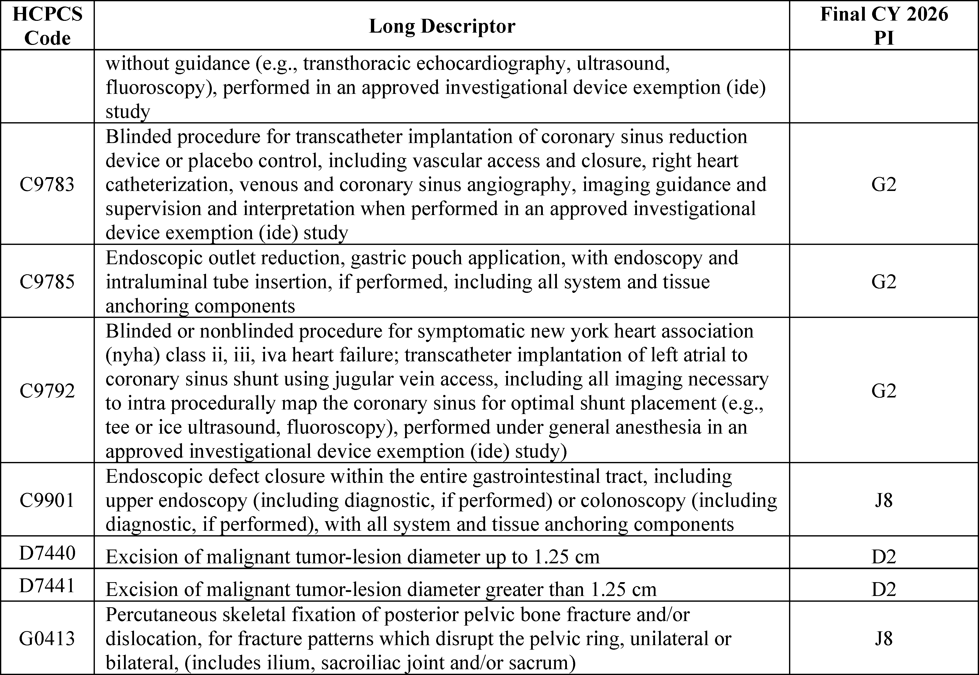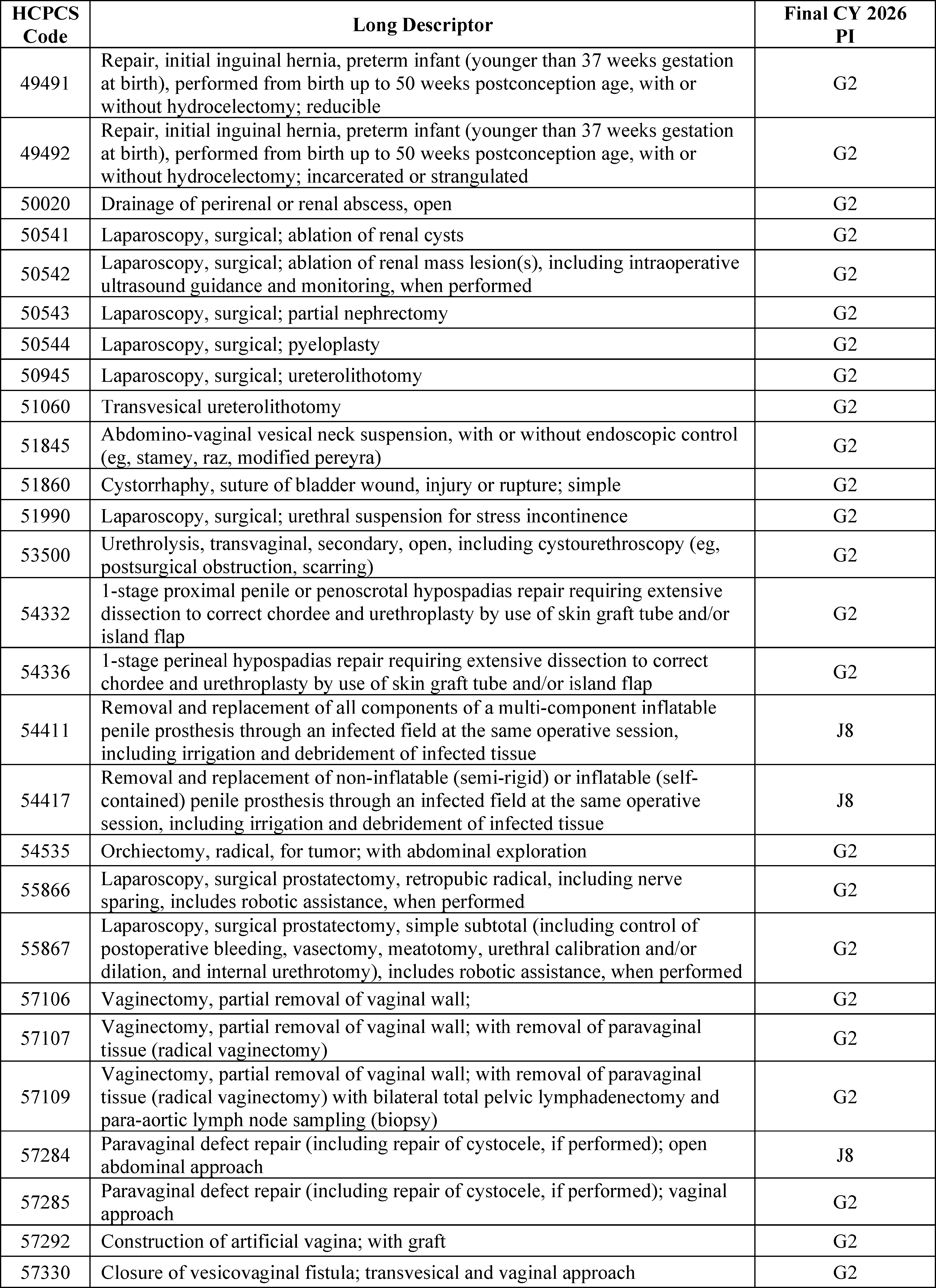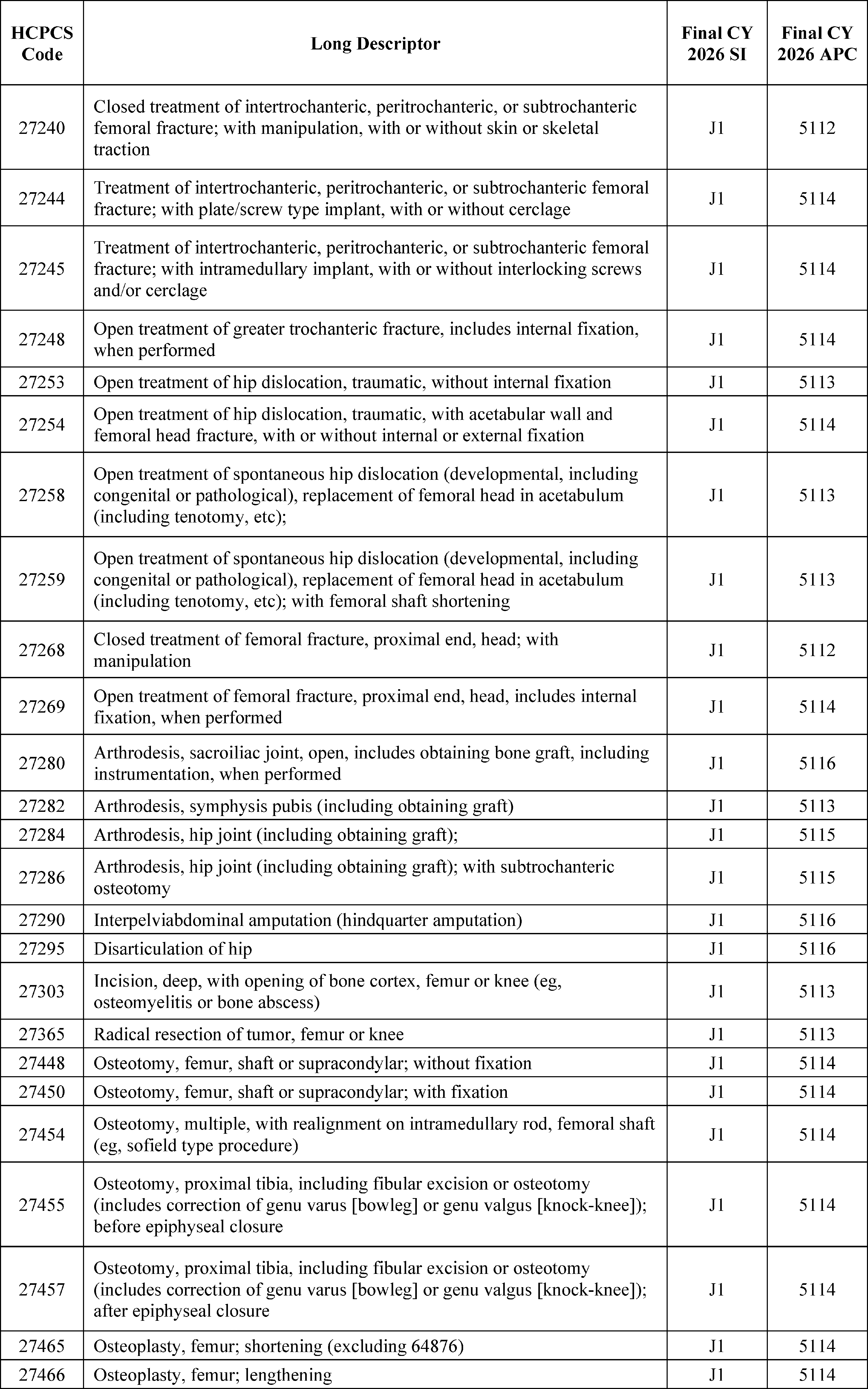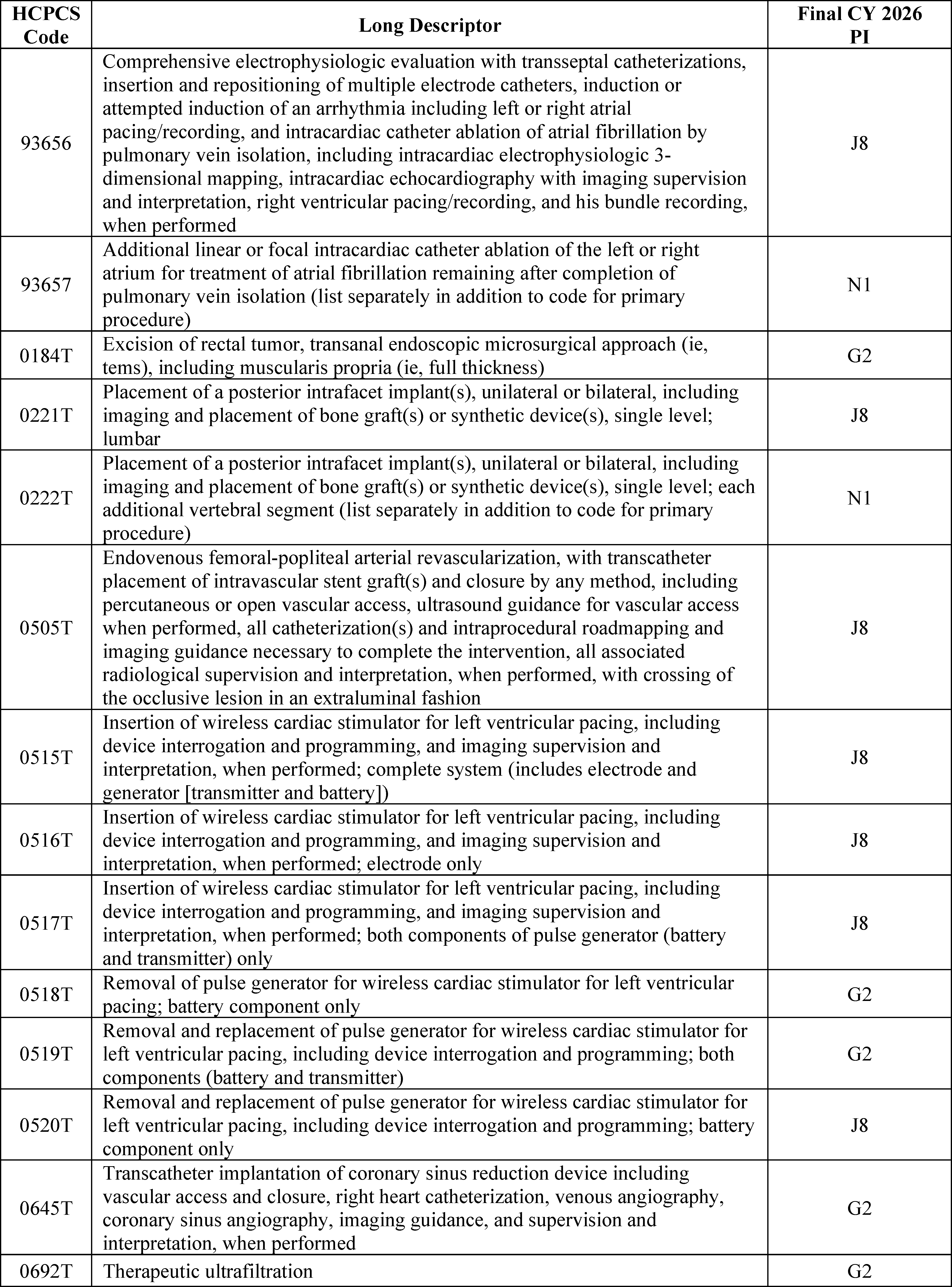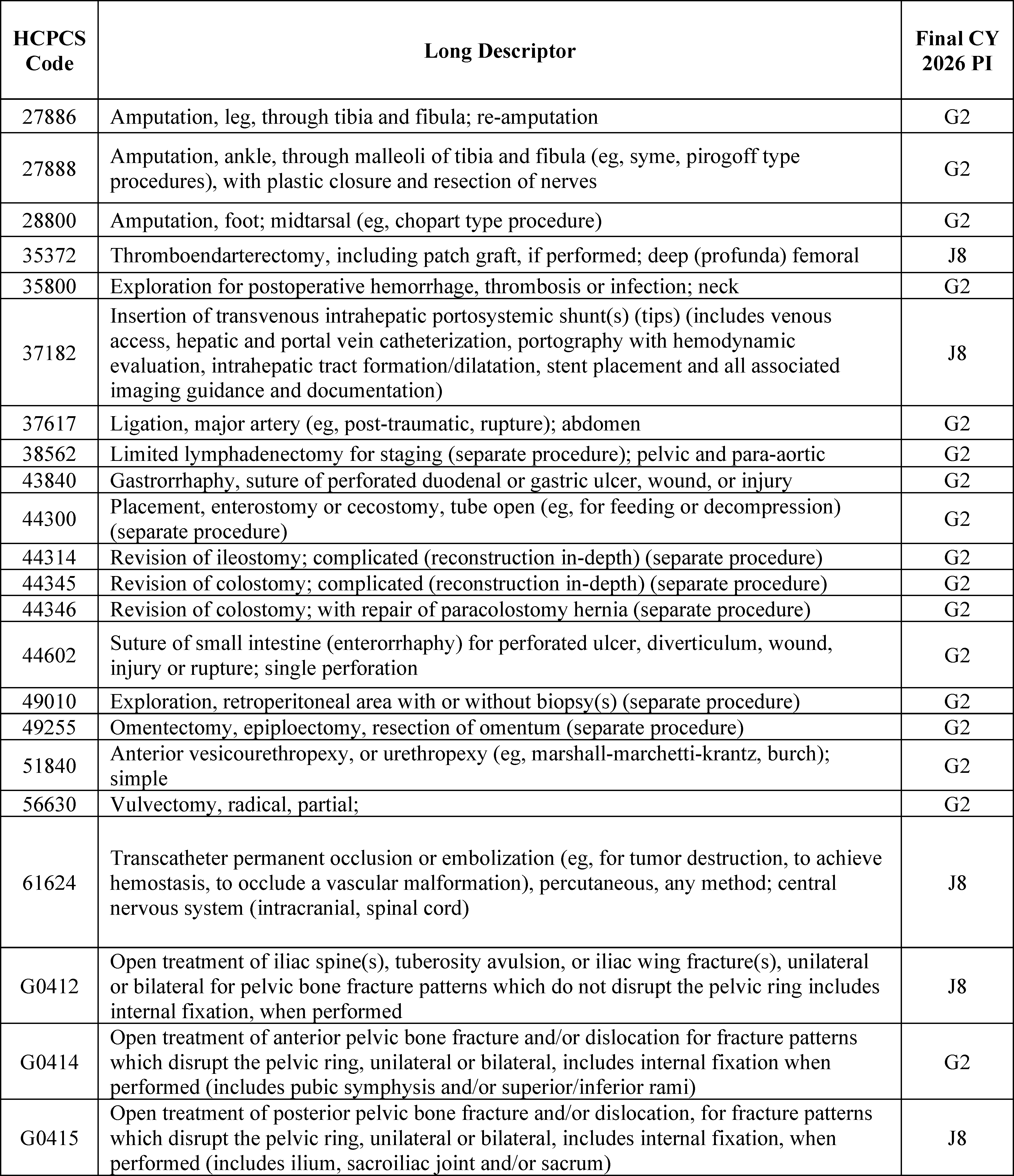 - Changes to the Inpatient Only (IPO) List: For CY 2026, we are phasing out the IPO list over 3 years, beginning with the removal of 285 mostly musculoskeletal services for CY 2026.