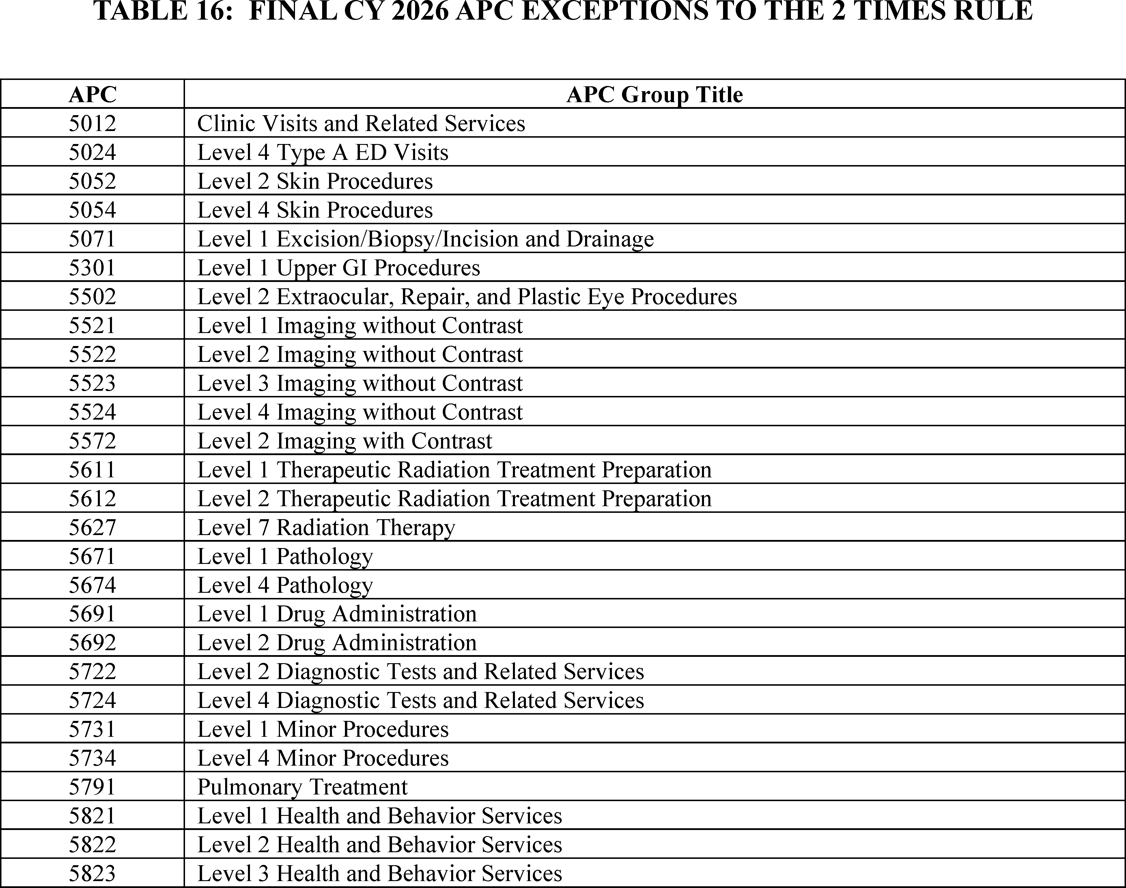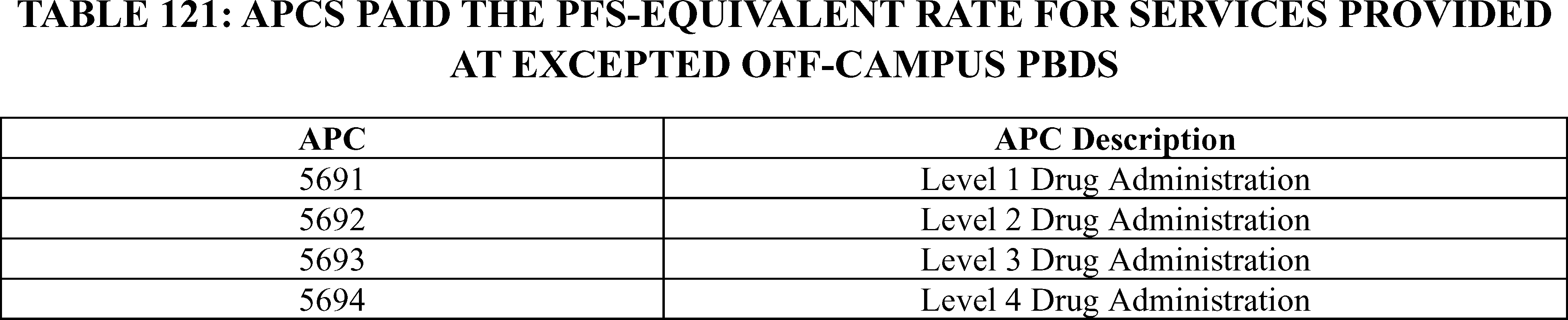 Method to Control Unnecessary Increases in the Volume of Outpatient Services Furnished in Excepted Off-Campus Provider-Based Departments (PBDs): For CY 2026, we are finalizing a policy to use our authority under section 1833(t)(2)(F) of the Act to apply the Physician Fee Schedule equivalent rate for any HPCPCs codes assigned to the drug administration services APCs, when provided at an off-campus PBD excepted from section 1833(t)(21) of the Act. We are finalizing a policy to exempt rural Sole Community Hospitals from this method to control the unnecessary volume of drug administration services.