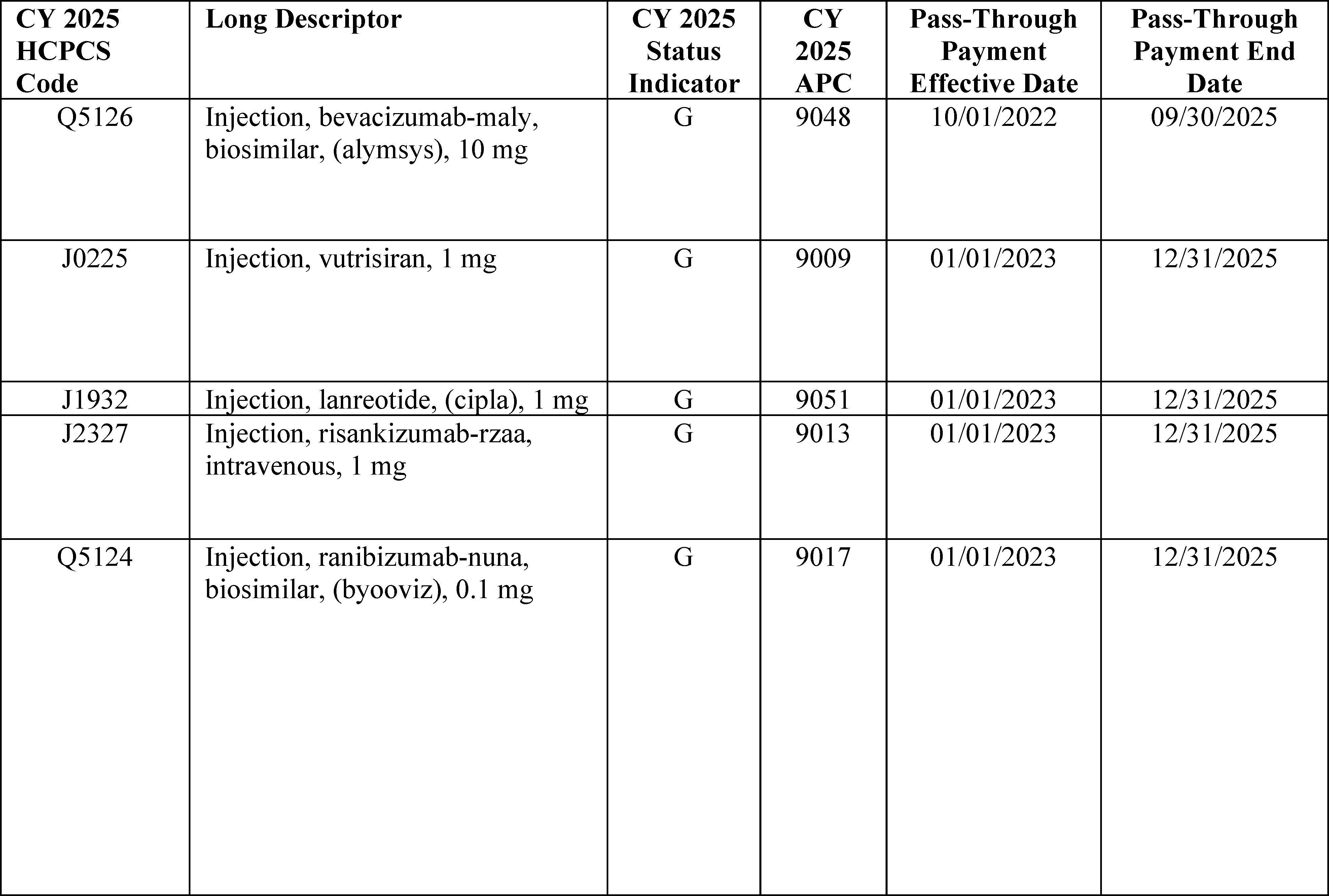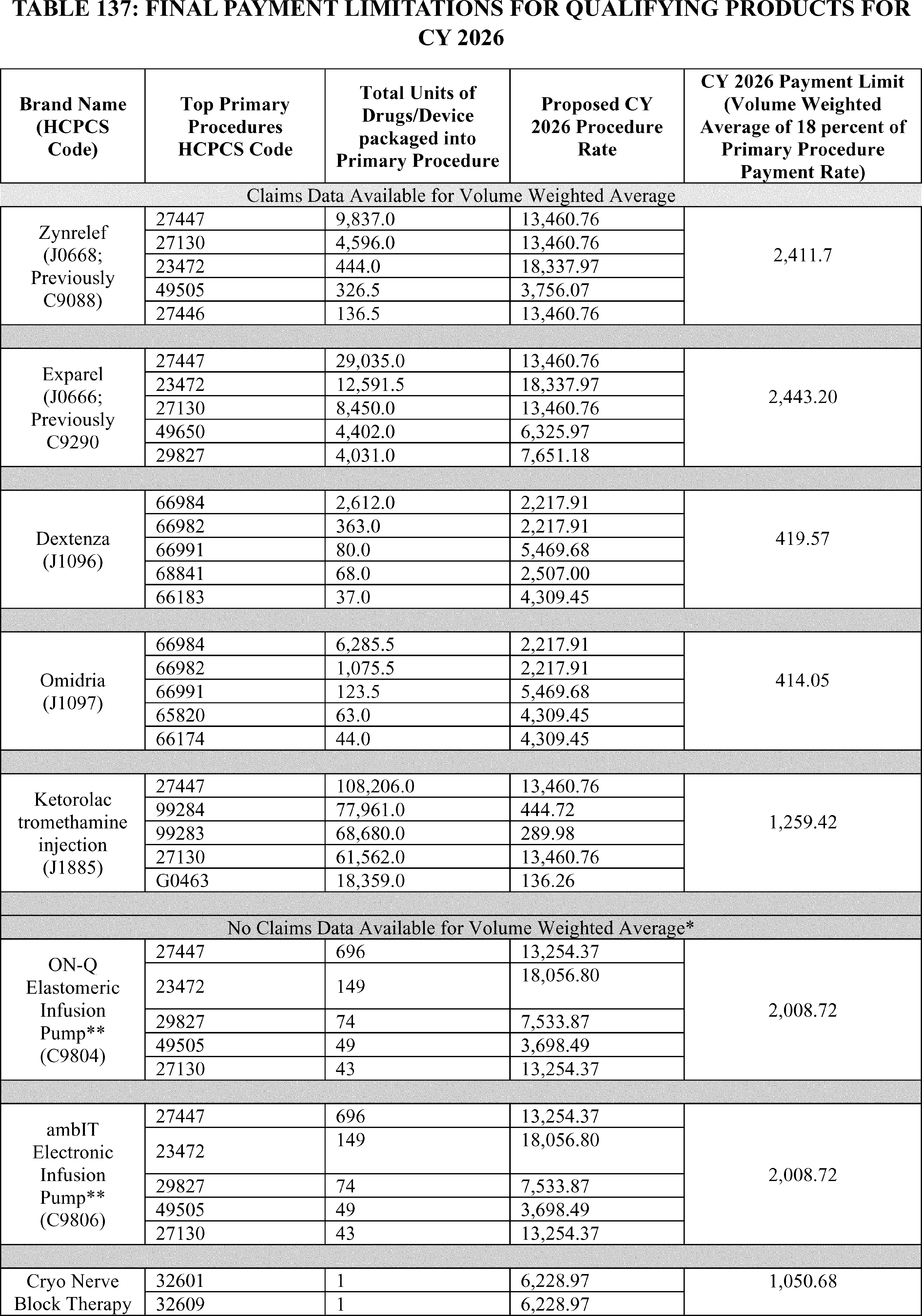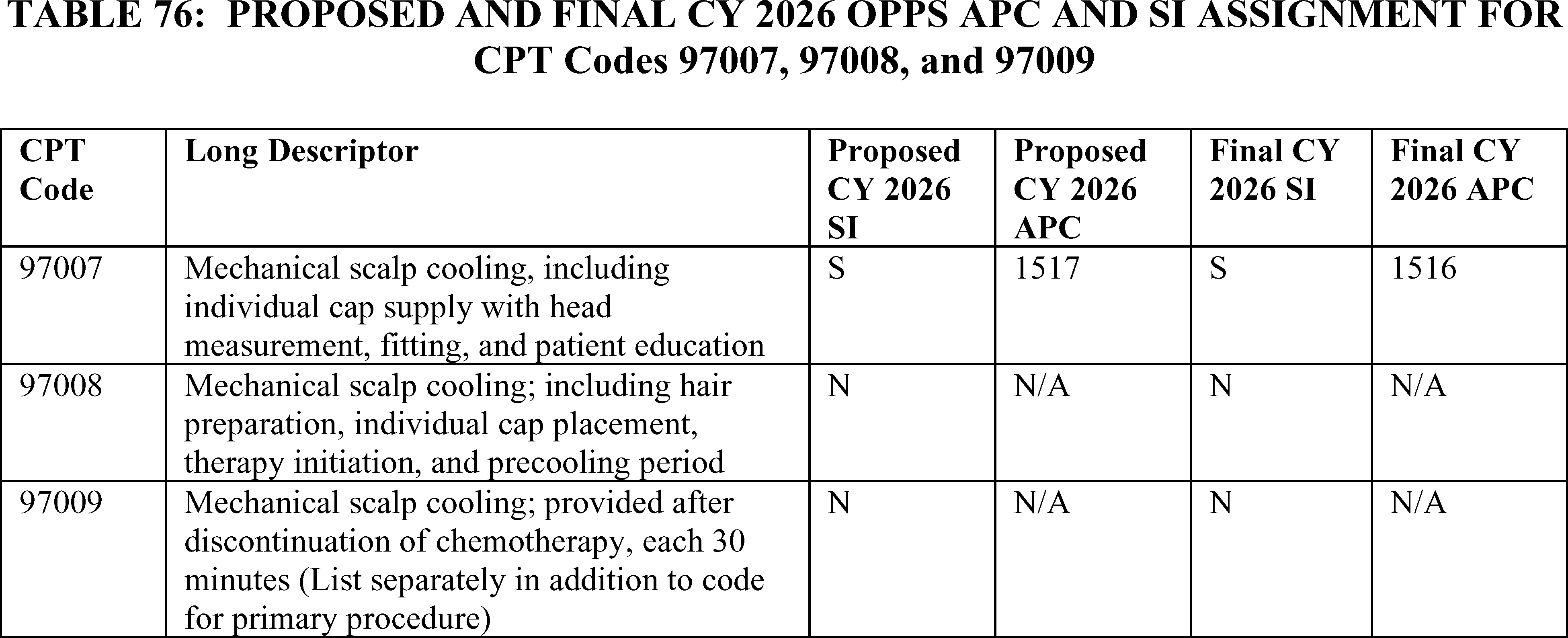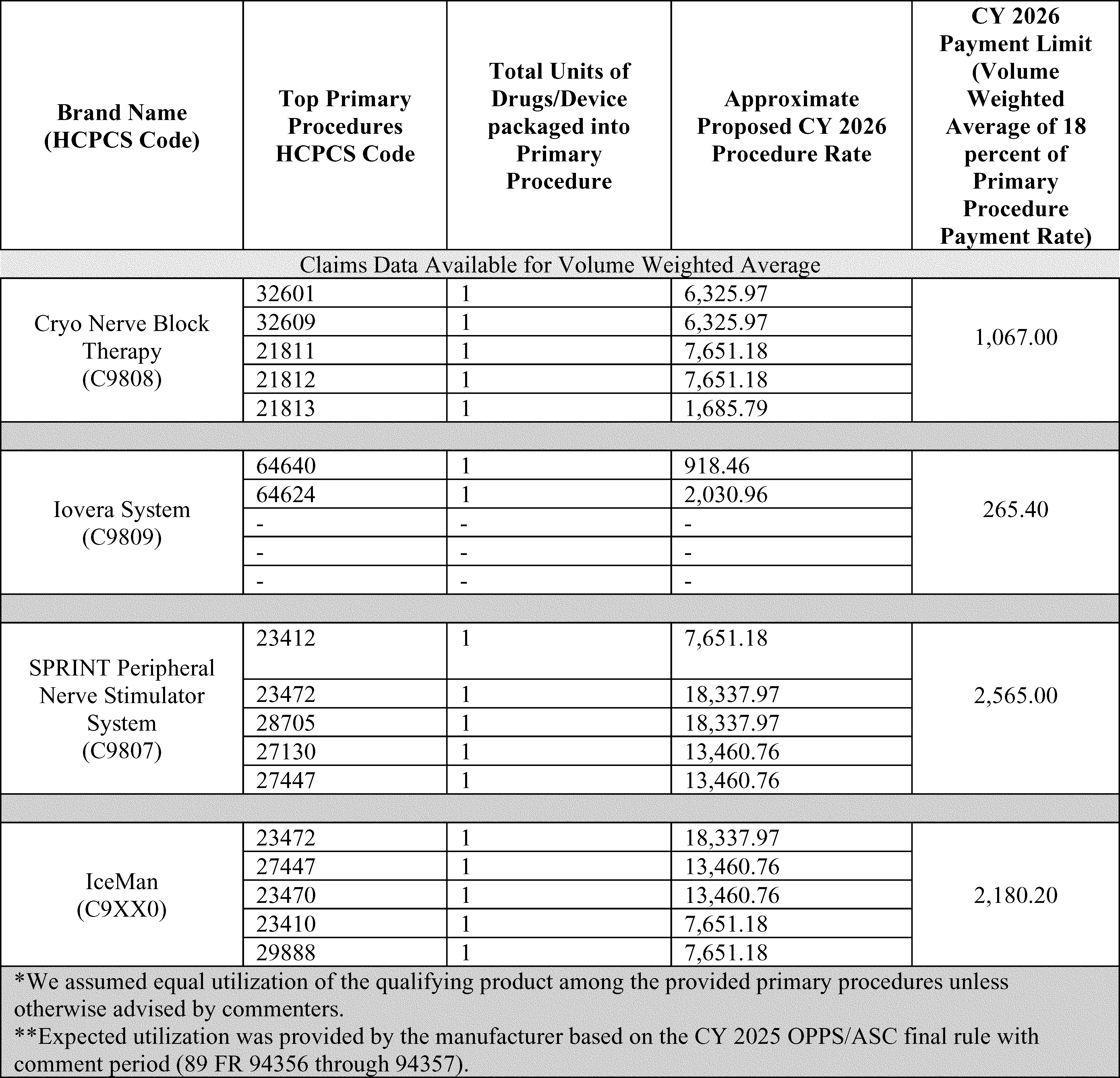 - Payment for Skin Substitute Products under the OPPS. For CY 2026, we are finalizing a policy for CMS to separately pay for the provision of certain groups of skin substitute products as supplies when they are used during a covered application procedure paid under the PFS in the non-facility setting or under the OPPS. We are finalizing a policy to group skin substitutes that are not drugs or biologicals using three FDA regulatory categories (PMAs, 510(k)s, and 361 HCT/Ps) to set payment rates. To effectuate this categorization into a payment policy under the OPPS, we are creating three new APCs for HCPCS codes that describe skin substitute products organized by clinical and resource similarity. These three APCs will divide skin substitutes by their FDA regulatory pathway. Specifically, we are creating: APC 6000 (PMA Skin Substitute Products); APC 6001 (510(k) Skin Substitute Products); and APC 6002 (361 HCT/P Skin Substitute Products). This will result in an initial payment rate of $127.14 for each of the new APCs. We are implementing this policy in both the non-facility, ambulatory surgical center setting, and outpatient hospital settings.