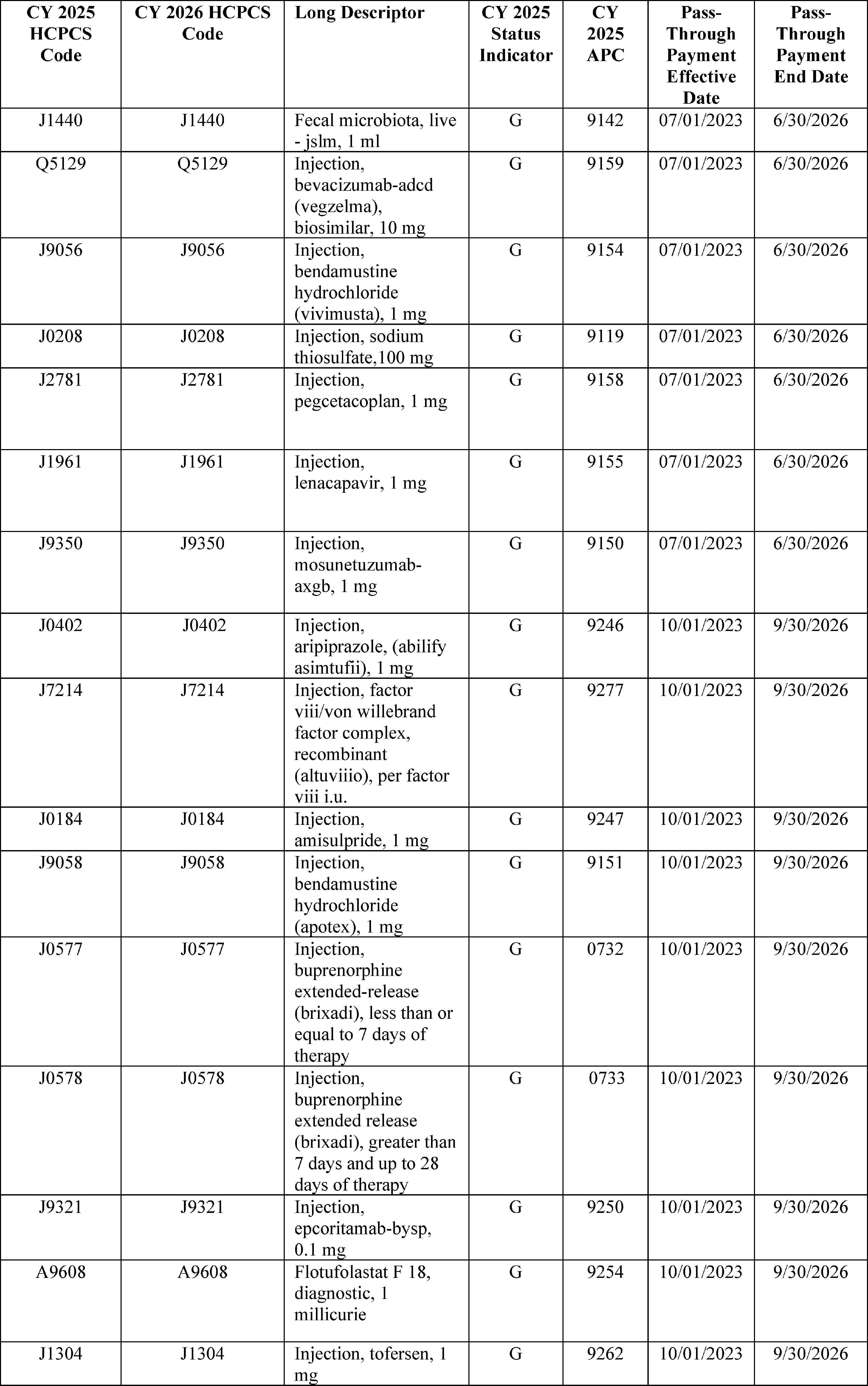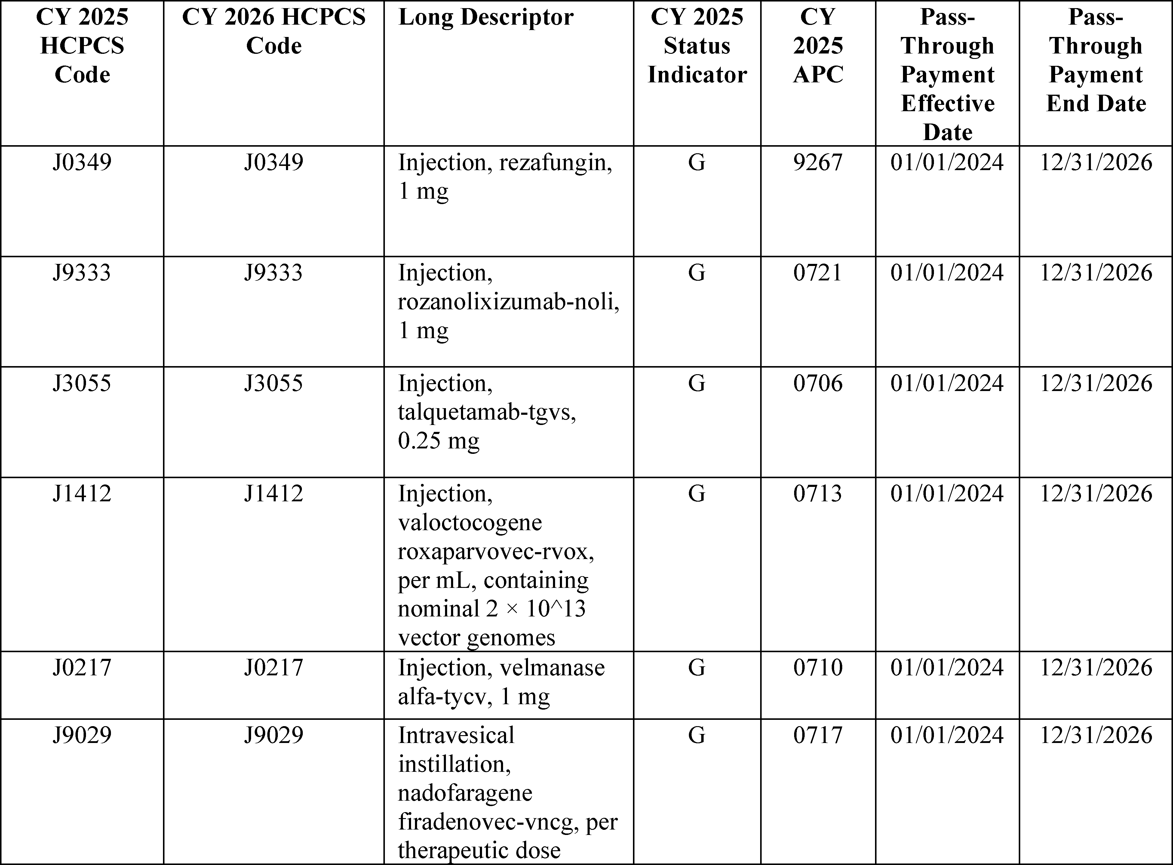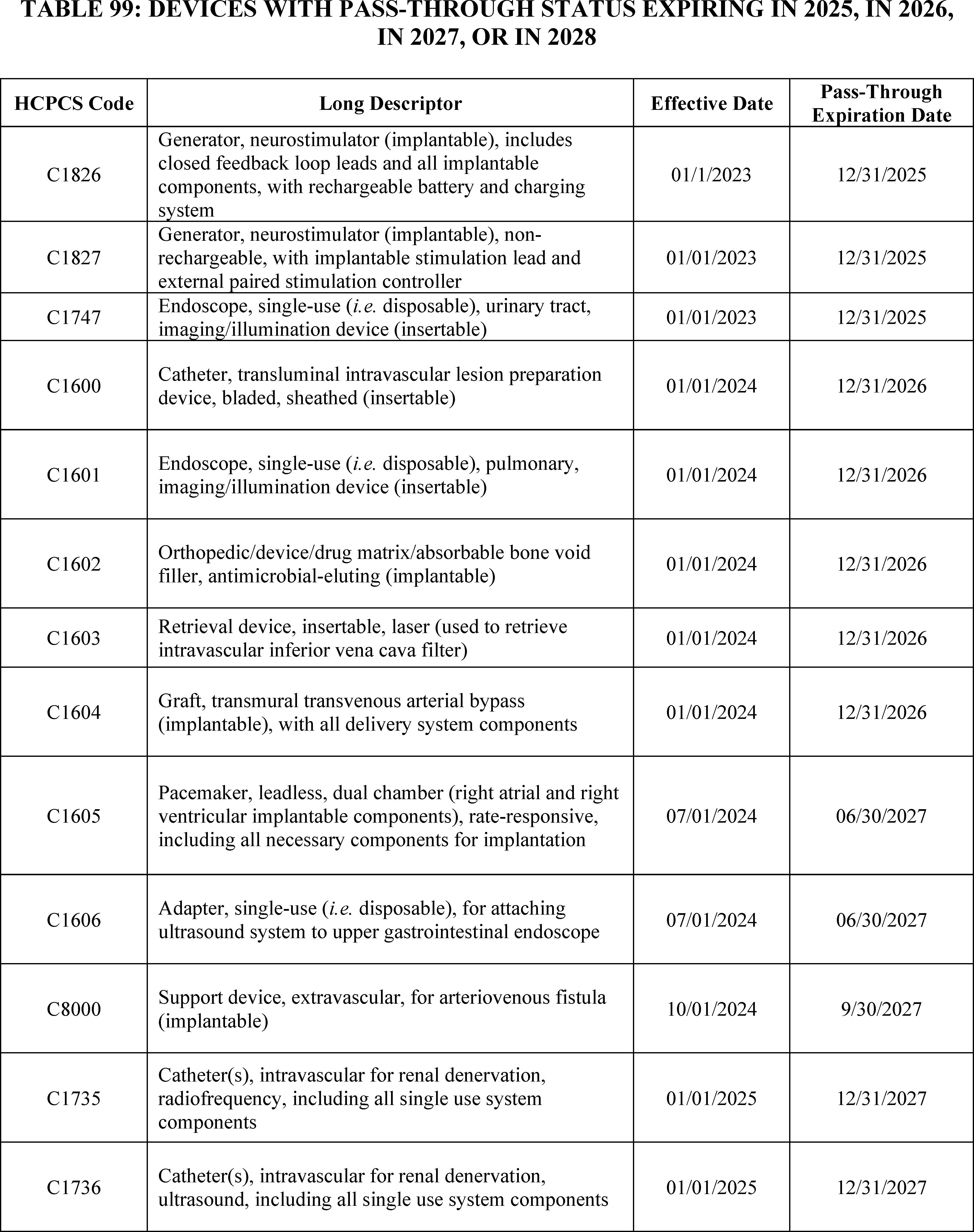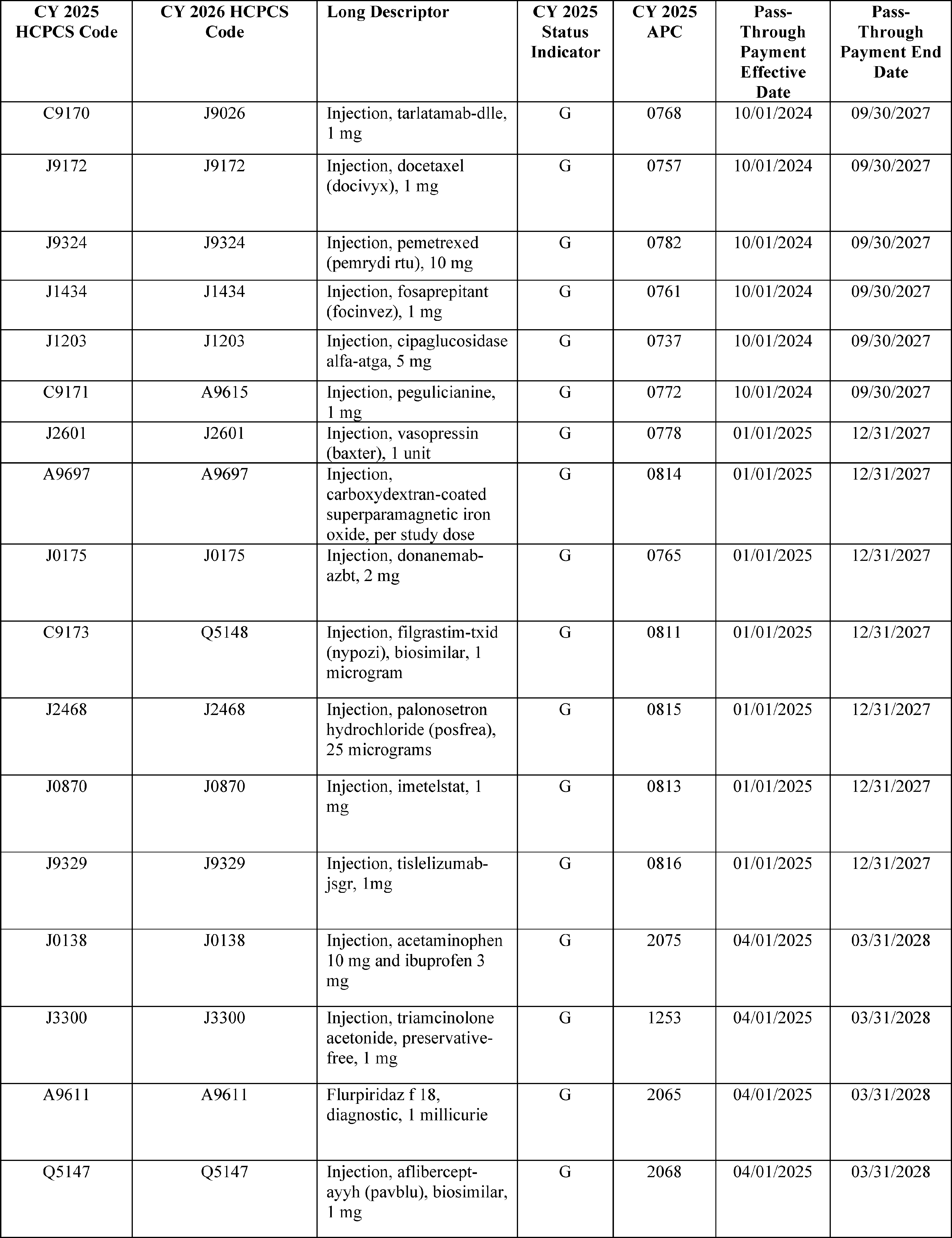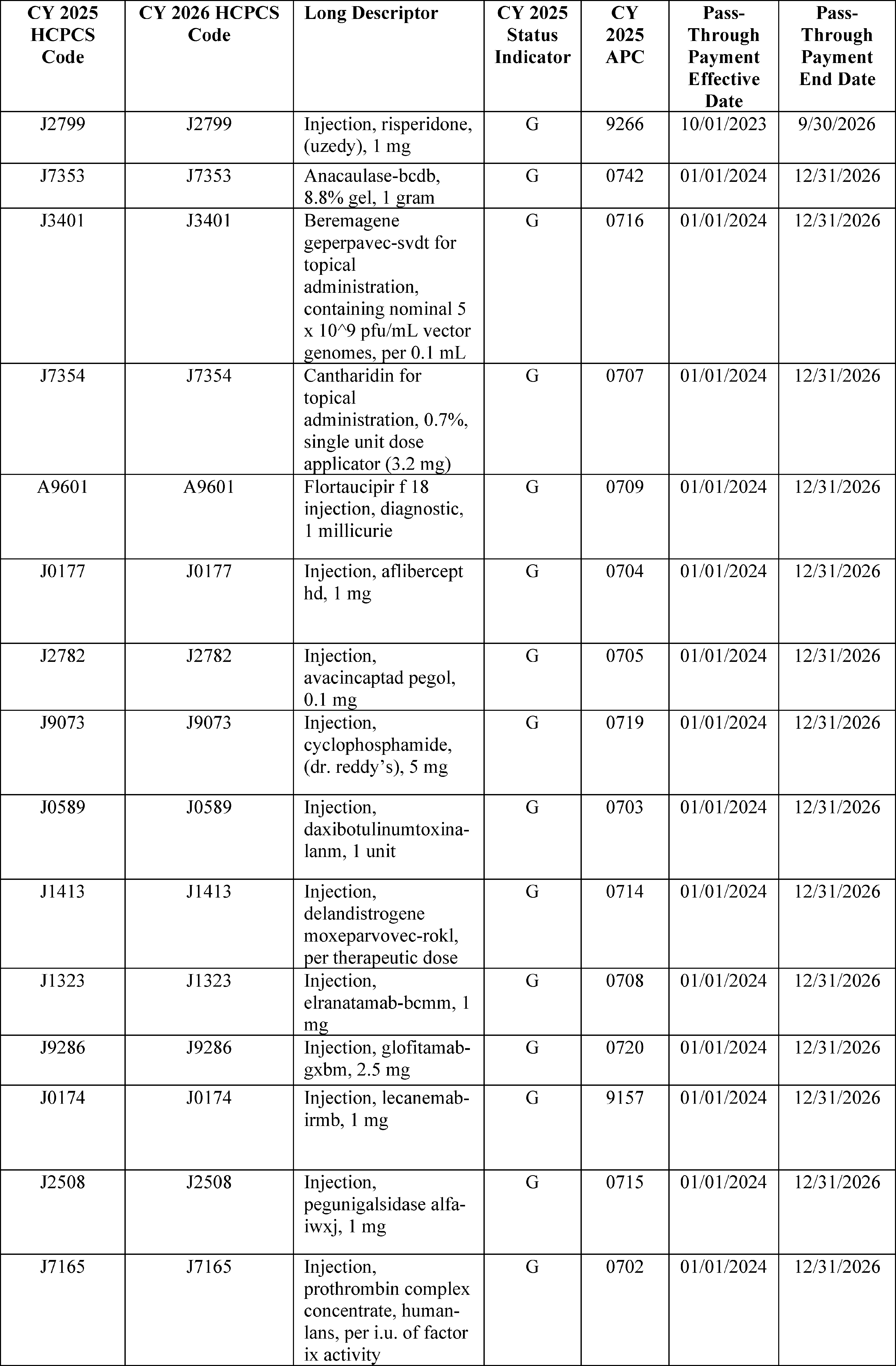 - Device Pass-Through Payment Applications: For CY 2026, we received eight complete applications for device pass-through payments. We sought public comment on seven applications and make final determinations on these applications in this final rule with comment period.