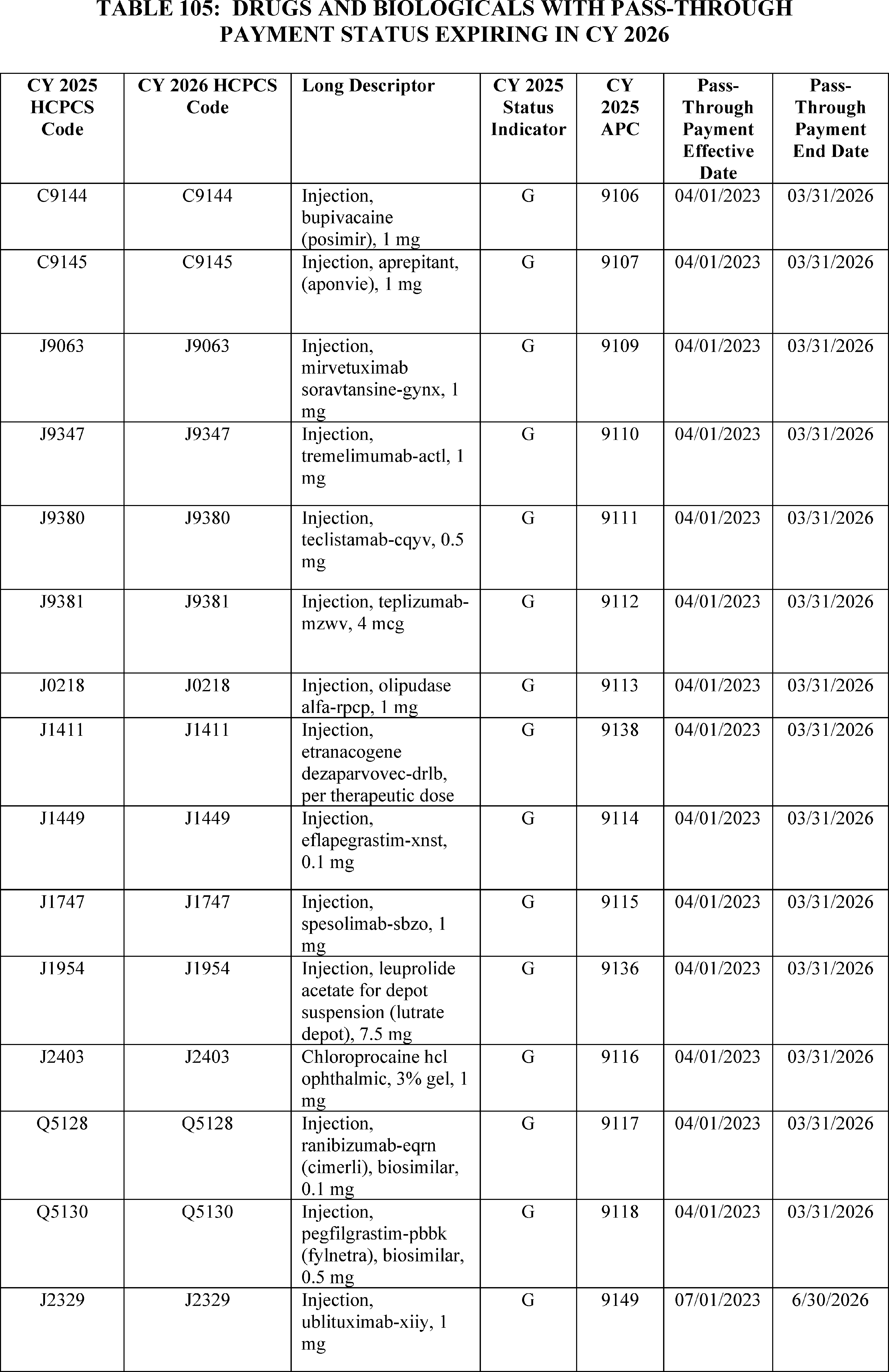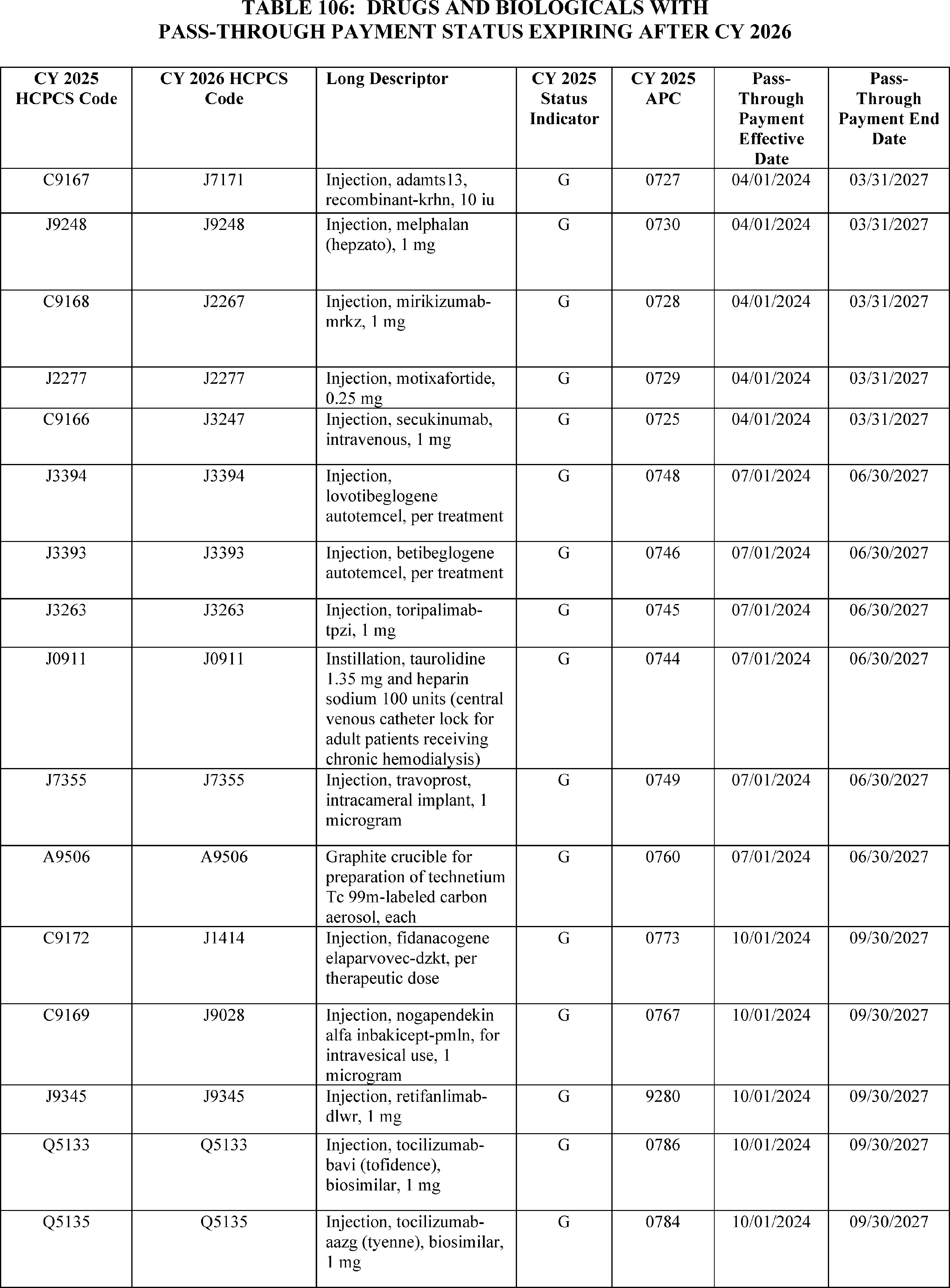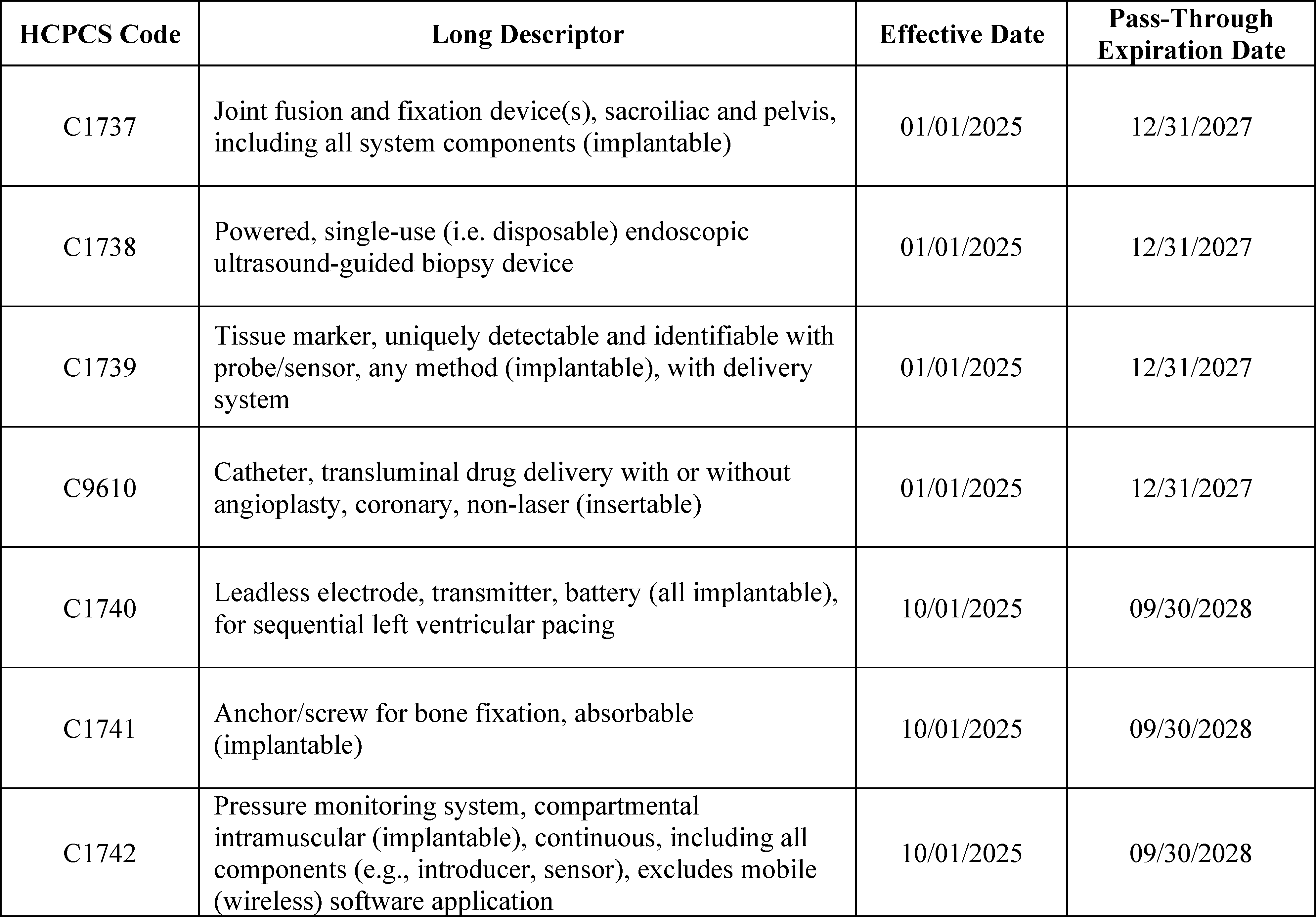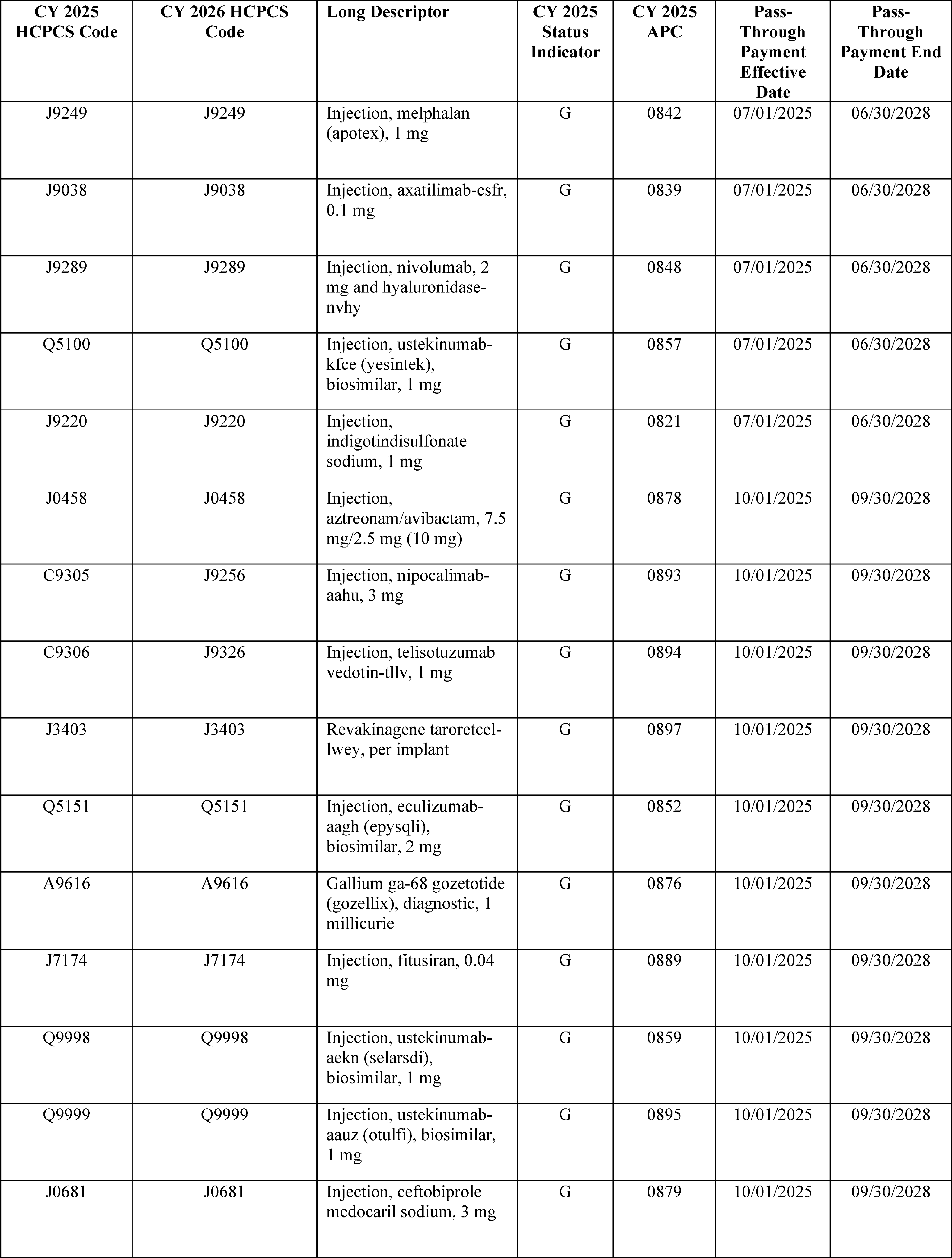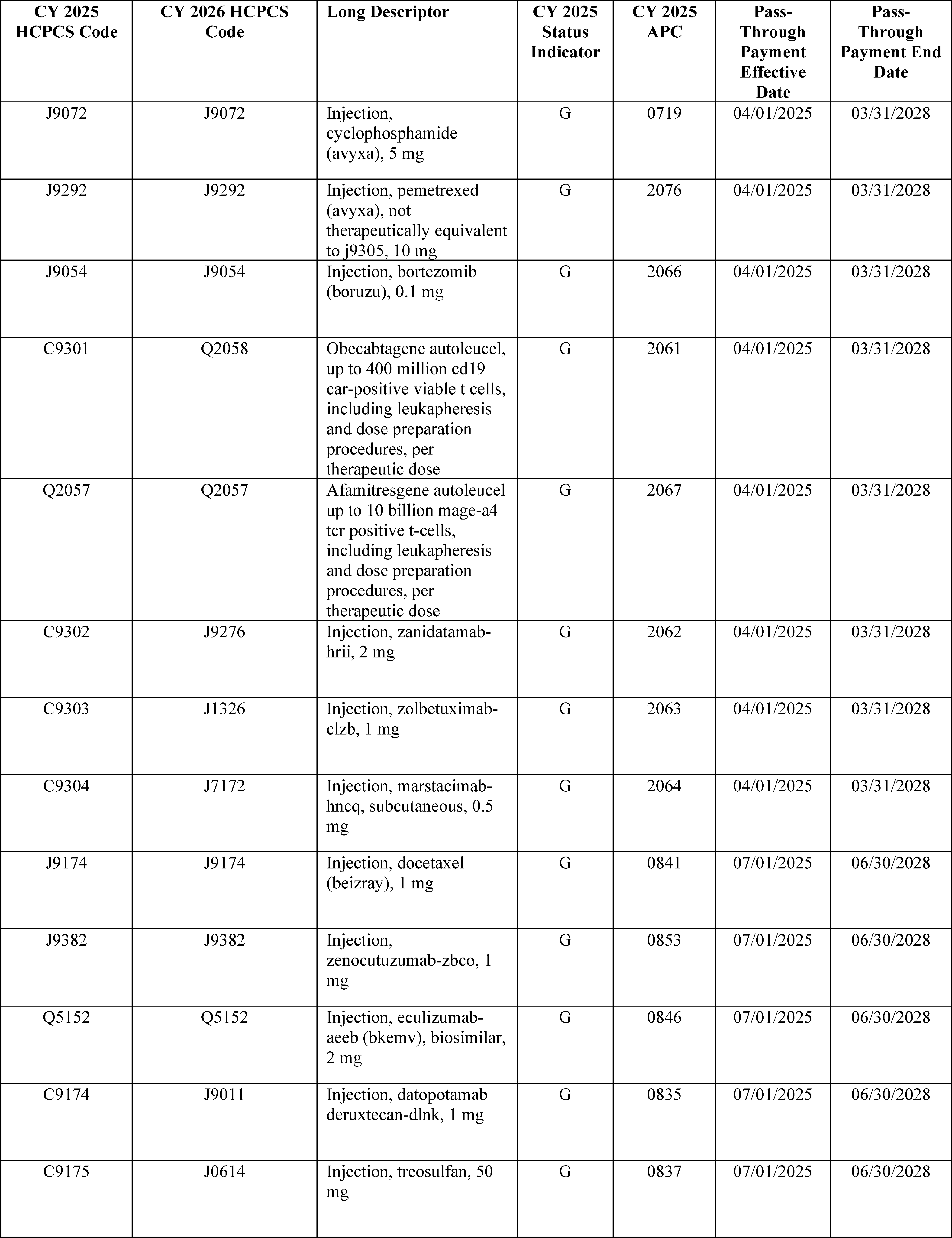 - Device Pass-Through Payment Applications: For CY 2026, we received eight complete applications for device pass-through payments. We sought public comment on seven applications and make final determinations on these applications in this final rule with comment period.