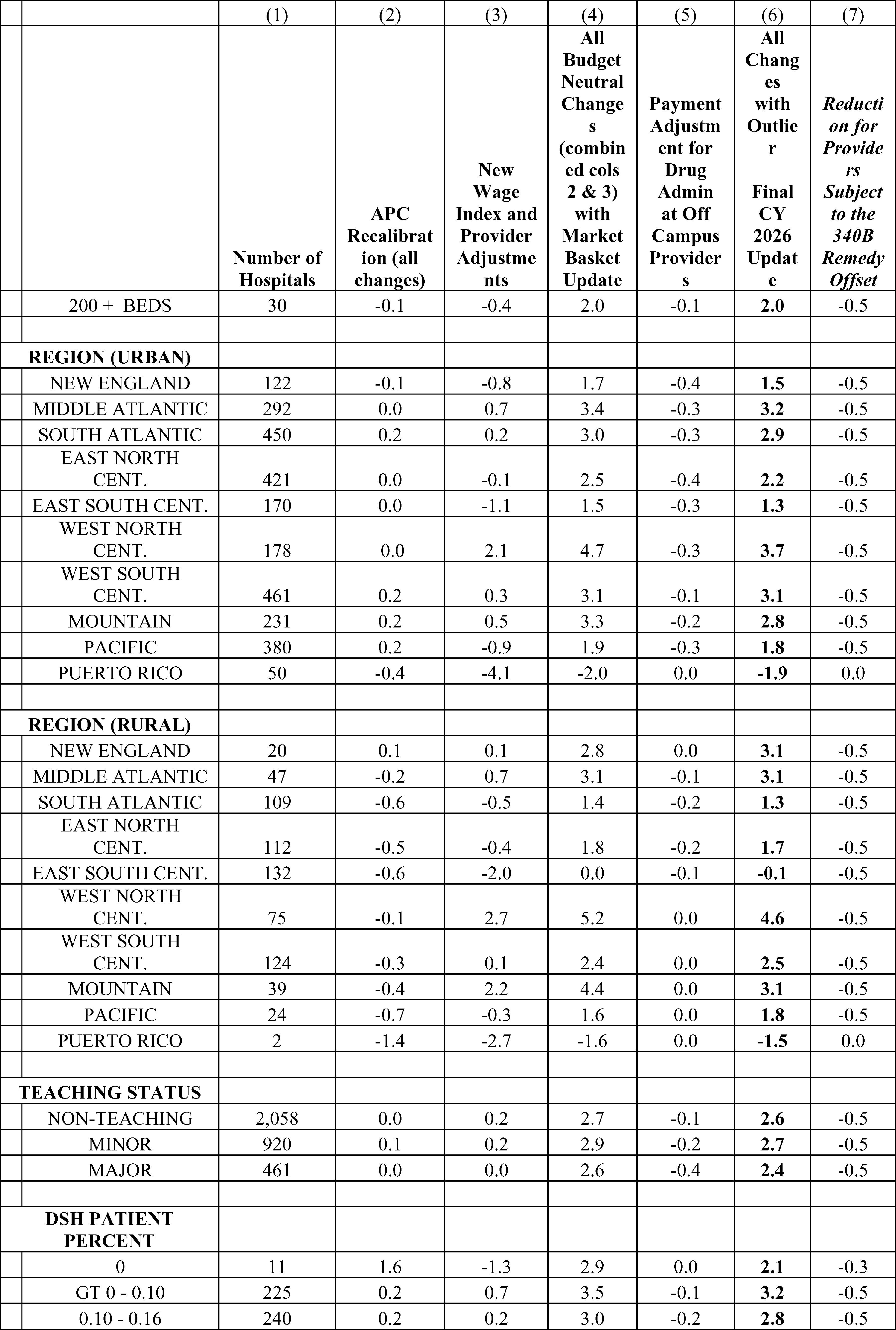 This final rule with comment period revises the Medicare Hospital Outpatient Prospective Payment System (OPPS) and the Medicare Ambulatory Surgical Center (ASC) payment system for calendar year 2026 based on our continuing experience with these systems. We also describe the changes to the amounts and factors used to determine the payment rates for Medicare services paid under the OPPS and those paid under the ASC payment systems. In addition, this final rule with comment period announces the closure of a teaching hospital and the opportunity to apply for available slots, and updates and refines the requirements for the Hospital Outpatient Quality Reporting Program, Rural Emergency Hospital Quality Reporting Program, Ambulatory Surgical Center Quality Reporting Program, Overall Hospital Quality Star Rating, and hospitals to make public their standard charge information and enforcement of hospital price transparency, as well as summarizes comments received in response to a request for information on measure concepts regarding Well-Being and Nutrition for consideration in future years for the OQR, REHQR, and ASCQR programs.