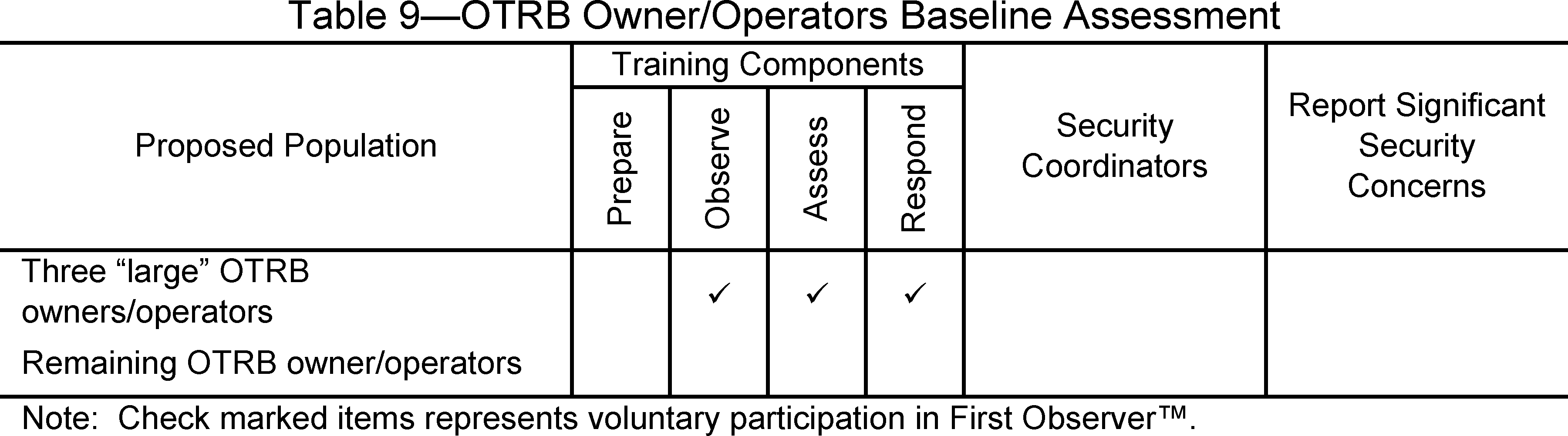 Back to Citation88. The First ObserverTM program, previously known as Operation Secure Transport, has been in use for highway motor carriers (OTRB owner/operators) and covers the Observe, Assess, and Respond security training components required by this rulemaking. TSA credits those OTRB owner/operators who have used the First ObserverTM program in its RIA (full description in Section 1.5 of the Final RIA).
