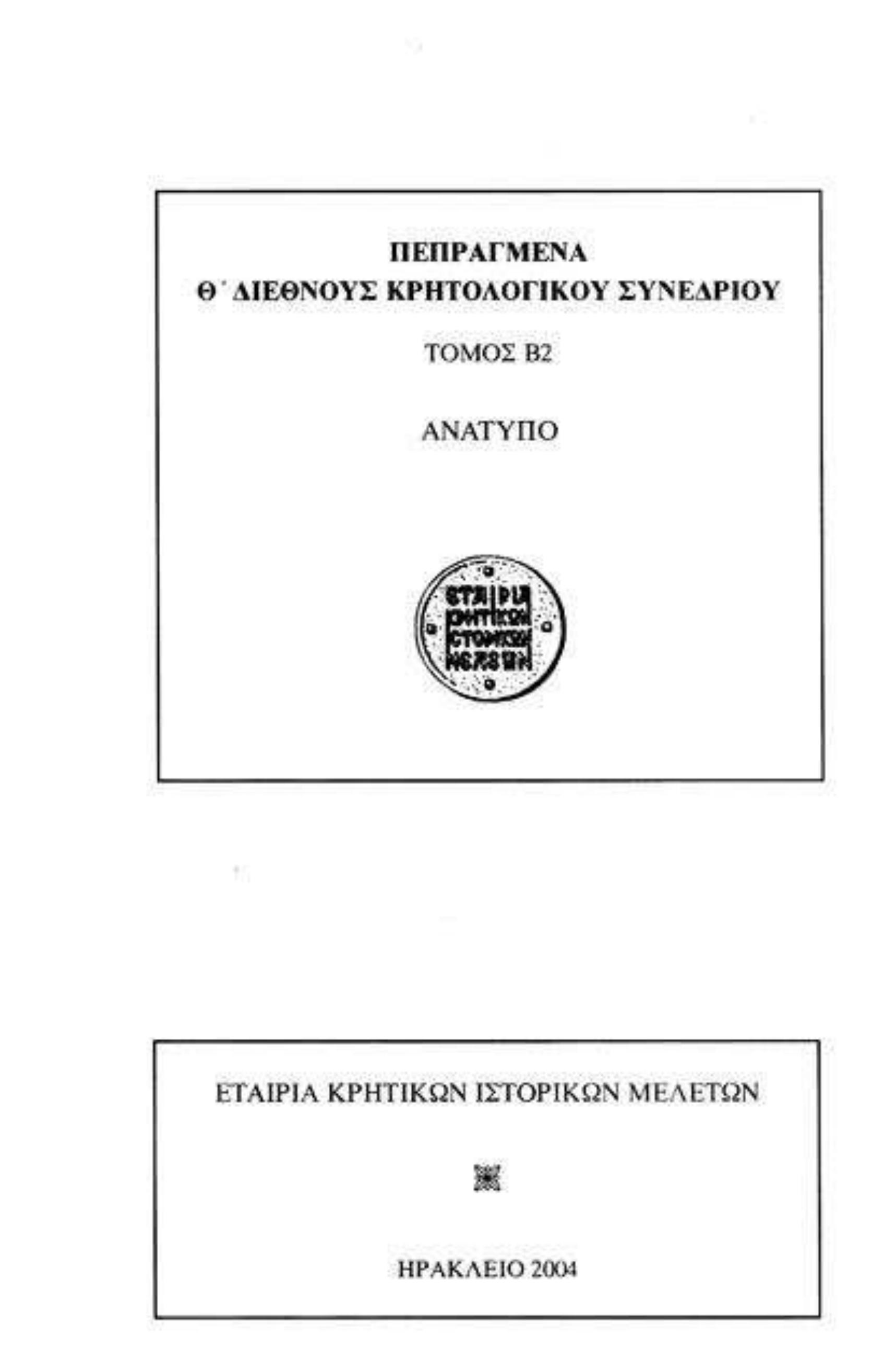 Πεπραγμένα Ι΄ Διεθνούς Κρητολογικού Συνεδρίου, Χανιά 2010, σελ. 149-173 και 500-501, 2010