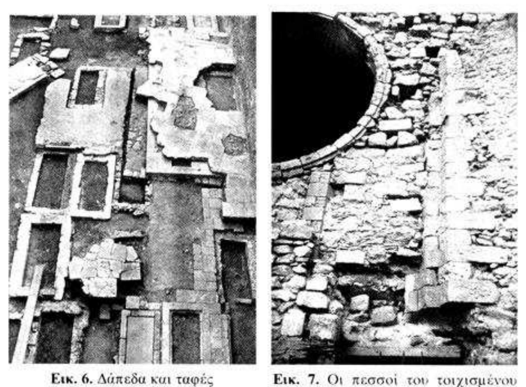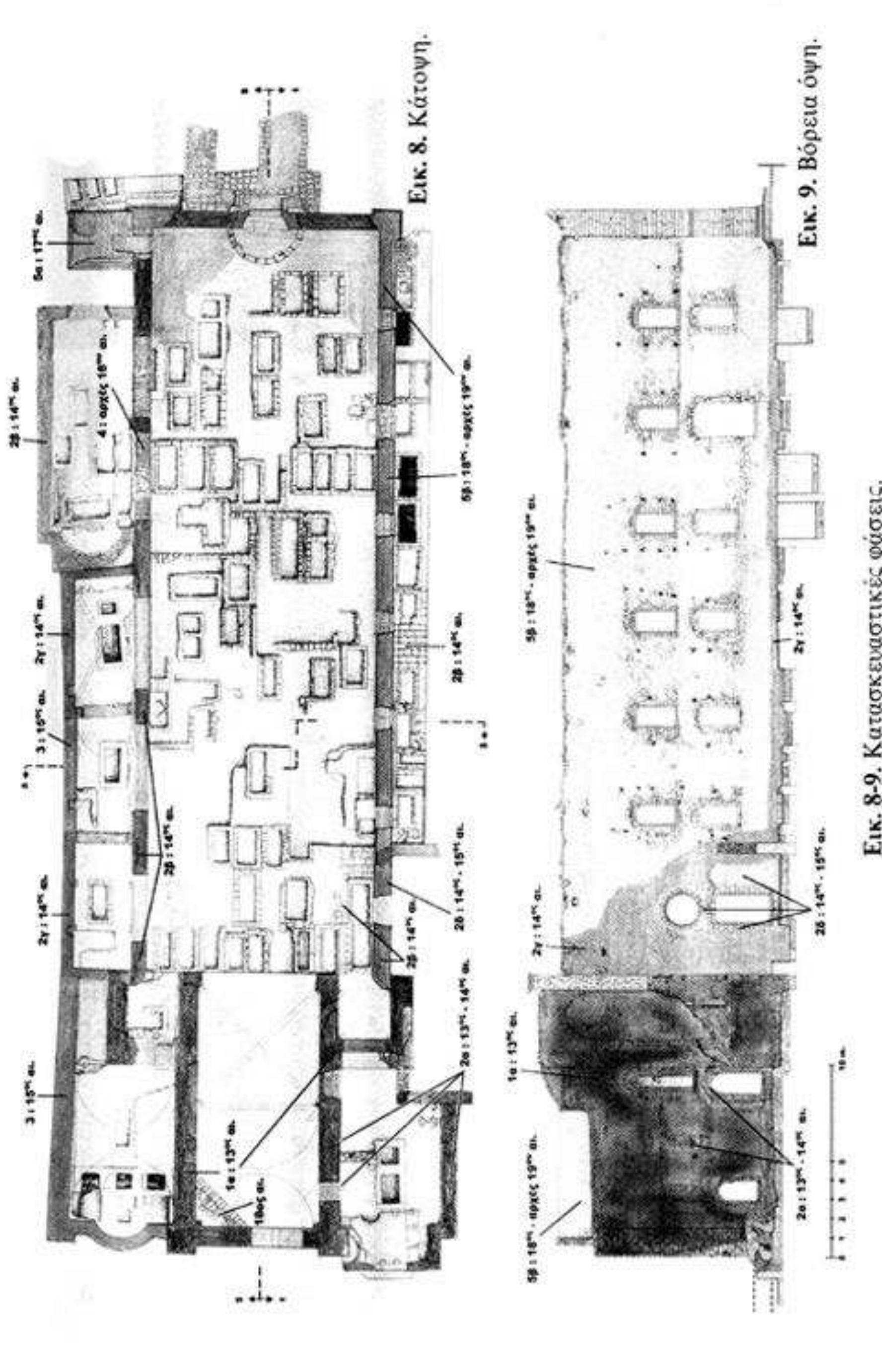 Regarding the domes, characteristic element of middle Byzantine churches, four types can be distinguished for the preserved monuments of the region. Blind arches, with single or double recession, consist a main feature of the exteriors. Their use appears in later examples as well. Brickwork is also abundant, forming a rich façade decoration, especially in the two bath buildings, later transformed into churches. Decorative brickwork, gradually degenerating, has survived as well in later constructions up to 14th century. Remains of external lime mortar plaster verify that rubble surfaces were covered with plaster, engraved to imitate ashlar masonry.