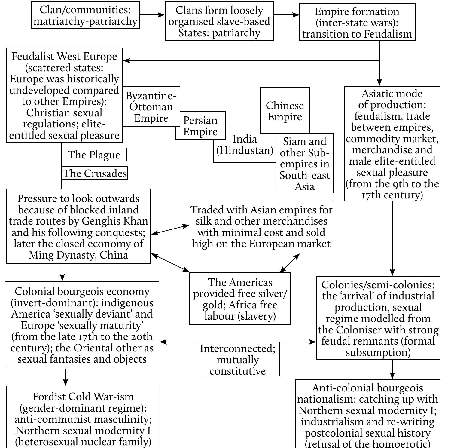 Our project is an intervention of, by and for queers in Asia specifically and the Global Sout... more Our project is an intervention of, by and for queers in Asia specifically and the Global South more generally. We foreground that a decolonial queer Marxist critique has to be grounded and contextualized. To countenance this argument, we critique two publications on queer Marxism; Warped and The Politics of Everybody. We argue that some streams of queer Marxism do not consider the coloniality of power; thus continue to disregard violence deployed on the bodies living in the South through the global cheapening and exploitation of the peripheral population. Further, it seems to set the tone for what is a ‘proper’ queer Marxist critique so the rest of the world can follow. Our relative work in China, Iran and India bring lived experiences of activists and demonstrate that queer liberation in these localities inevitably addresses issues of state-form (nation-state), capitalism, post-coloniality and post-sociality. Queer Marxism that only centres white urban workers in the North does not liberate but further disadvantage queers in the South. Anti-capitalist sexuality in the ‘peripheral’ innovates and decolonizes resistance to navigate multiple layers of power. What we call ‘decolonized queer Marxism’, then, has to engage with the uneven development, dialectics and the nation-state system that are intertwined with the praxis of global racial capitalism, heteropatriarchy of various forms and the construction of gender binary.