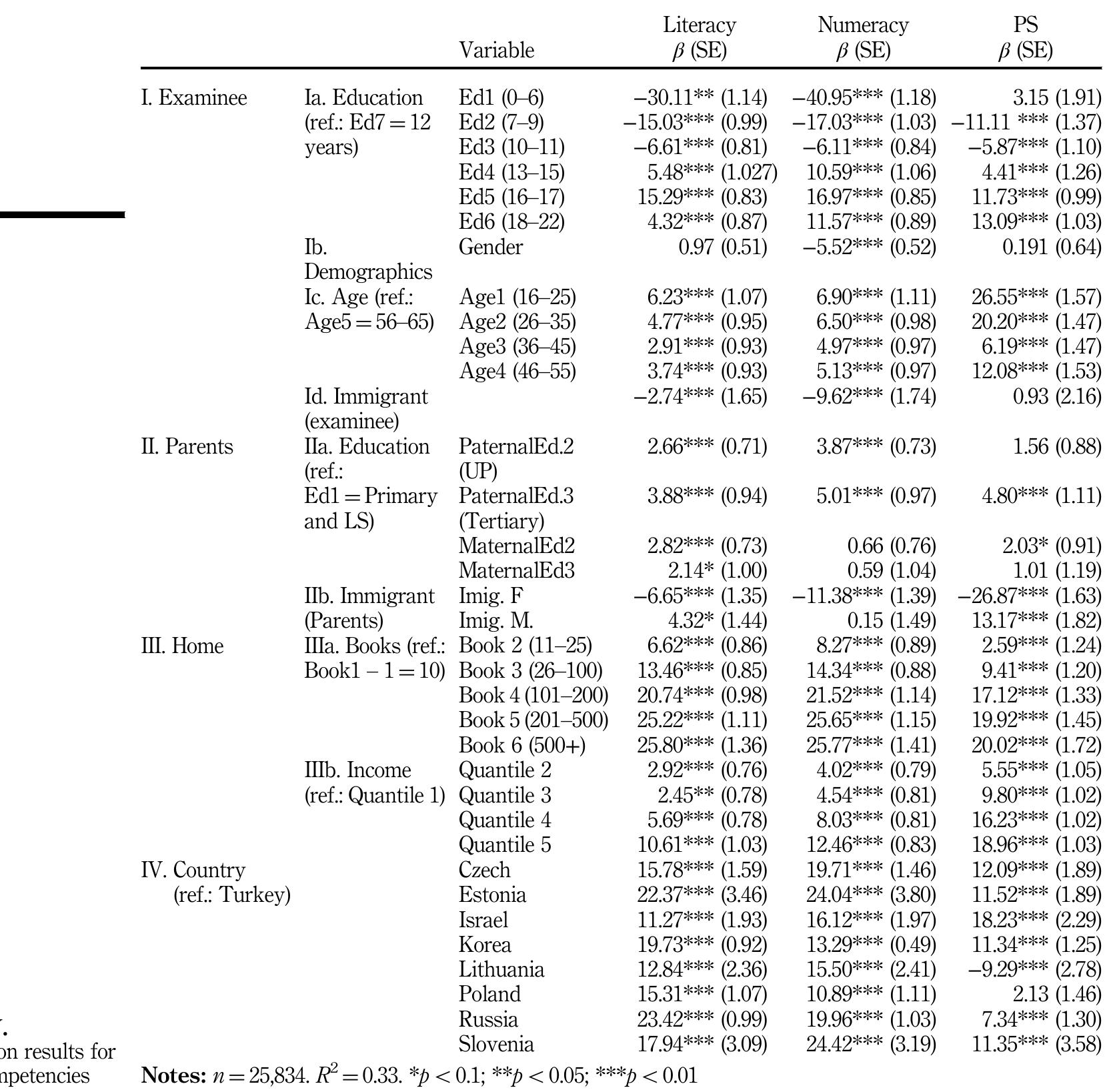 Purpose The purpose of this paper is to examine the relationships between education and competenc... more Purpose The purpose of this paper is to examine the relationships between education and competencies from a comparative view, while controlling for background characteristics (e.g. parental education), home features (e.g. income) and country fixed effect. Design/methodology/approach This paper utilises an international data sets of 12 Belt and Road (B&R) countries participating in the PIAAC survey. Data are examined using regression models with “REPSET” Stata code. The focus on B&R countries is interesting as this recent economic and strategic development alliance might transform the contemporary global balance of power. Therefore, examining its educational development is important. Findings Findings reveal the higher the level of education, the higher the competency level in numeracy and literacy. Age was found to be negatively related to competencies, and gender was found to be dually significant. Among the examined B&R countries, Slovenia, Russia and Israel contribute the most to...