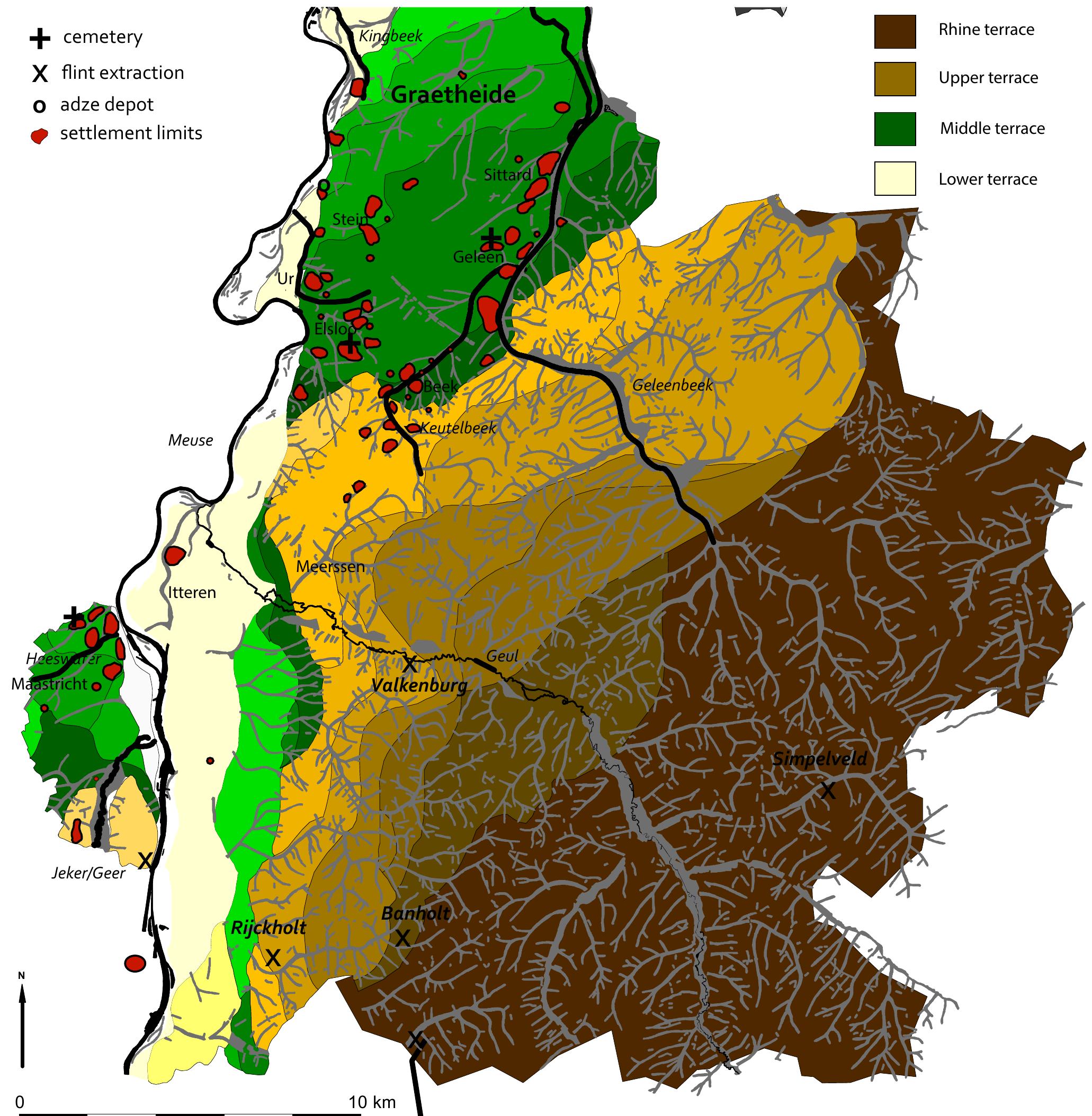 settlements are situated on the middle terraces, with the exception of several younger ones on the eastern side of the Meuse. The research was carried out by Archaeological