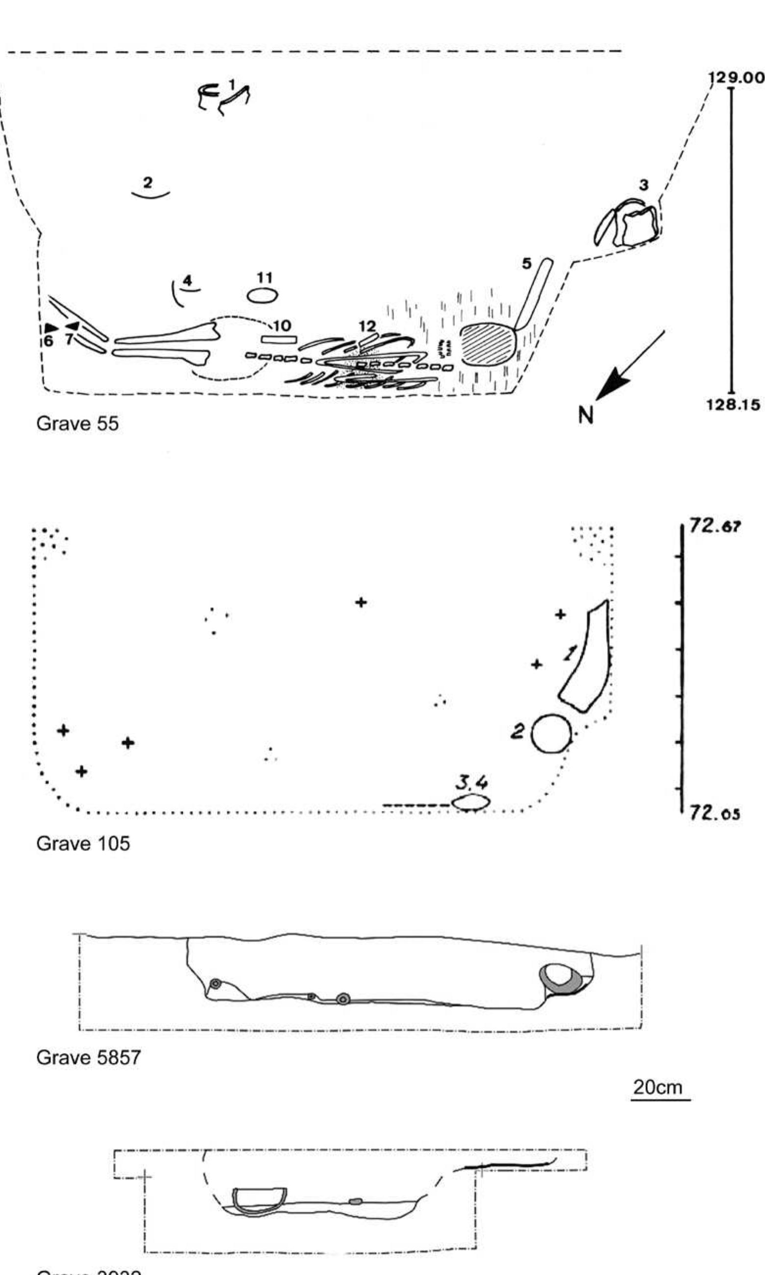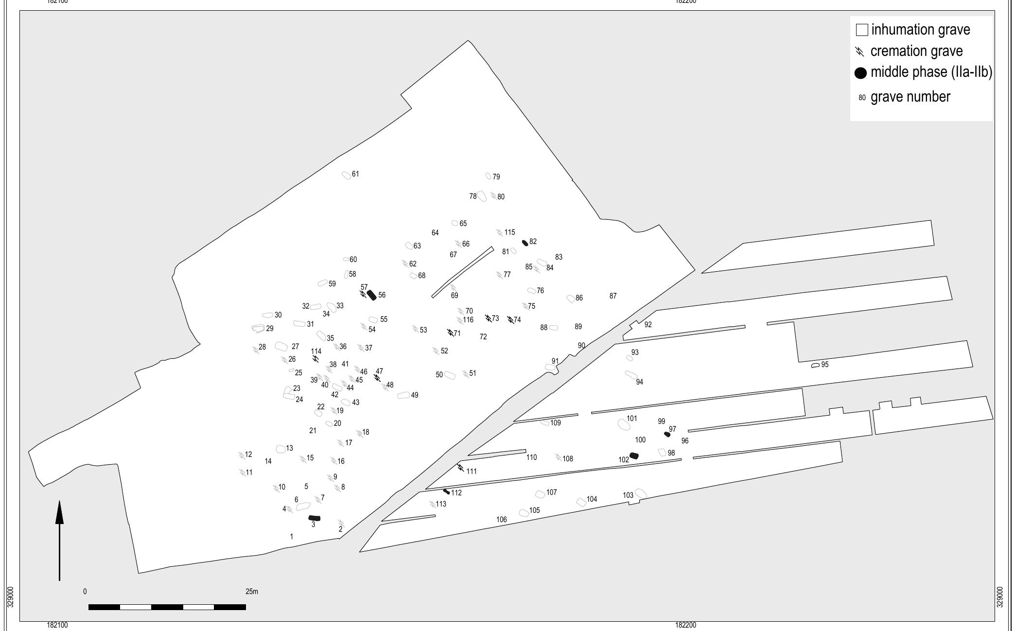 University in 1959 and 1966. The burial ground consists of 63 inhumation graves and 50 cremation graves of which 36 are