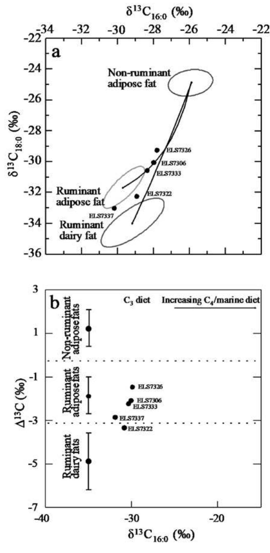 Direct, accurate, and precise dating of archaeological pottery vessels is now achievable using a ... more Direct, accurate, and precise dating of archaeological pottery vessels is now achievable using a recently developed approach based on the radiocarbon dating of purified molecular components of food residues preserved in the walls of pottery vessels. The method targets fatty acids from animal fat residues, making it uniquely suited for directly dating the inception of new food commodities in prehistoric populations. Here, we report a large-scale application of the method by directly dating the introduction of dairying into Central Europe by the Linearbandkeramik (LBK) cultural group based on dairy fat residues. The radiocarbon dates ( n = 27) from the 54th century BC from the western and eastern expansion of the LBK suggest dairy exploitation arrived with the first settlers in the respective regions and were not gradually adopted later. This is particularly significant, as contemporaneous LBK sites showed an uneven distribution of dairy exploitation. Significantly, our findings demon...