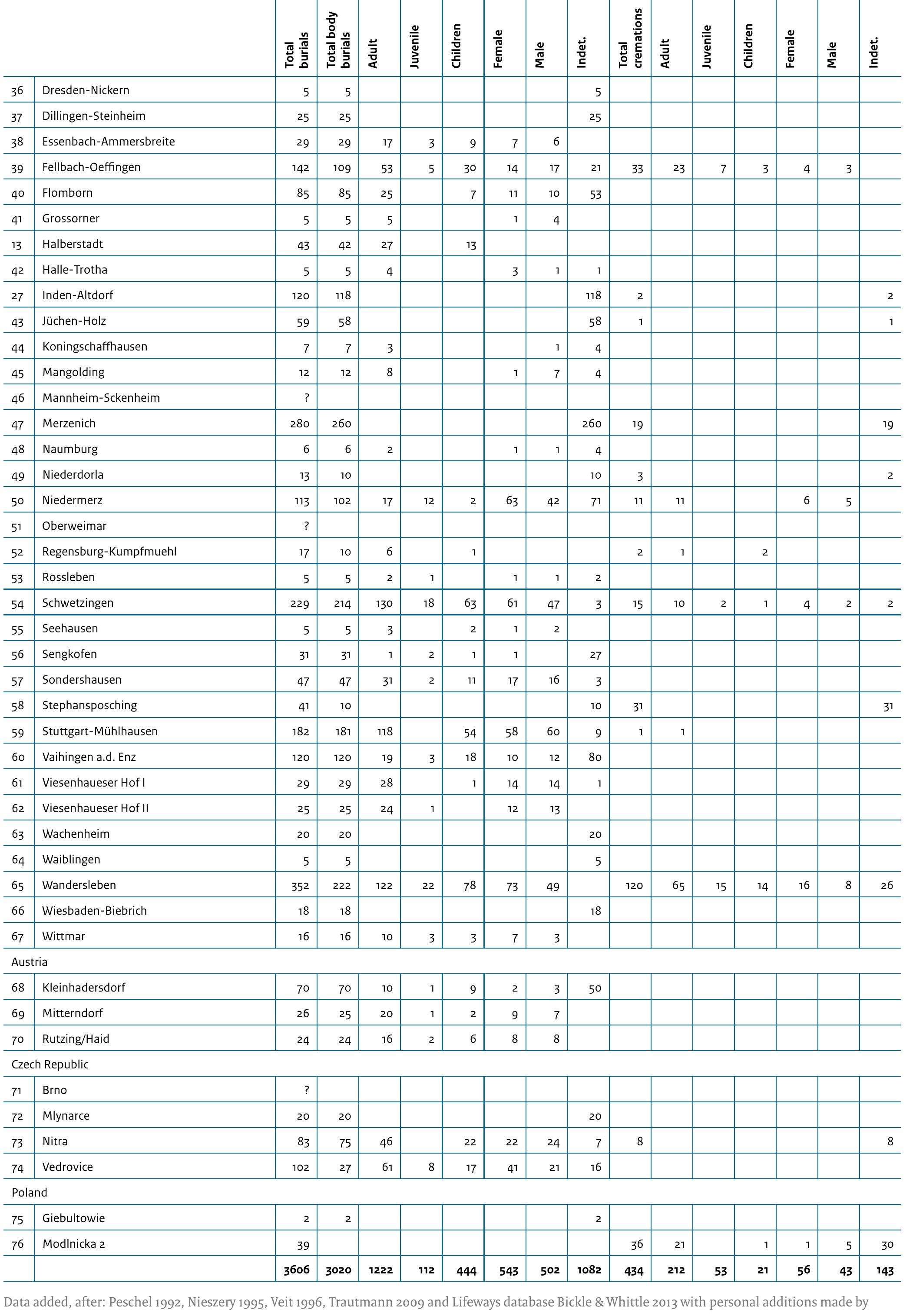 on archaeobotany, non-LBK pottery and hematite. A summary of sites lying in the