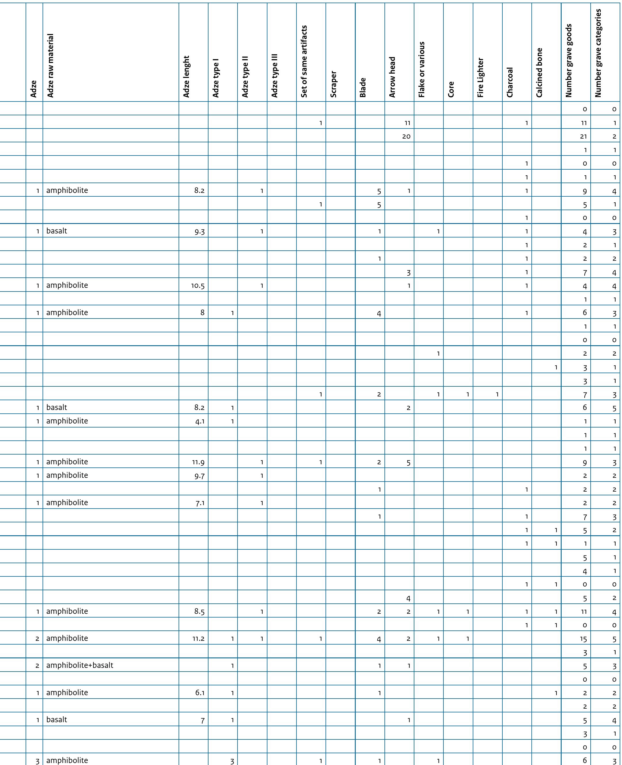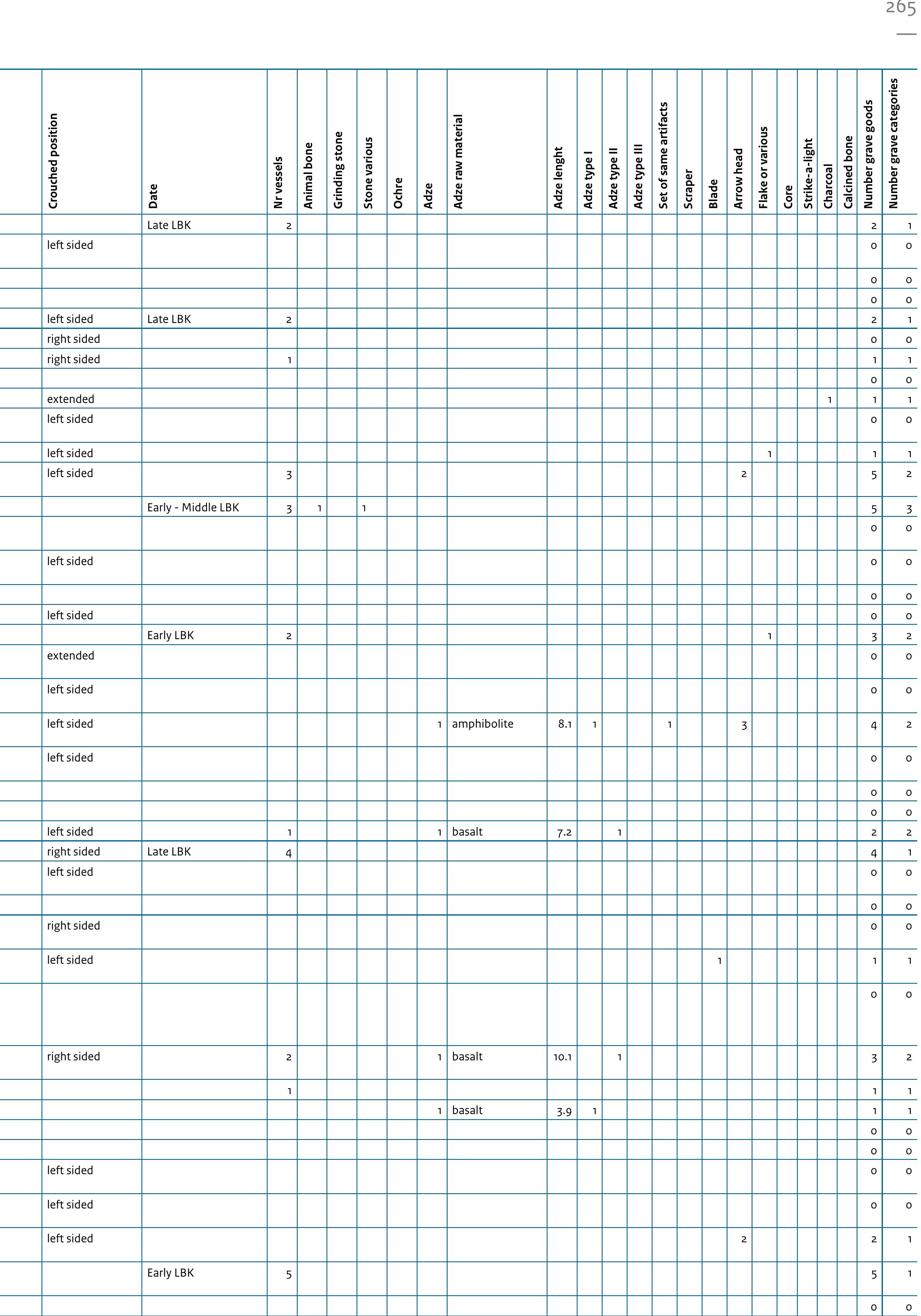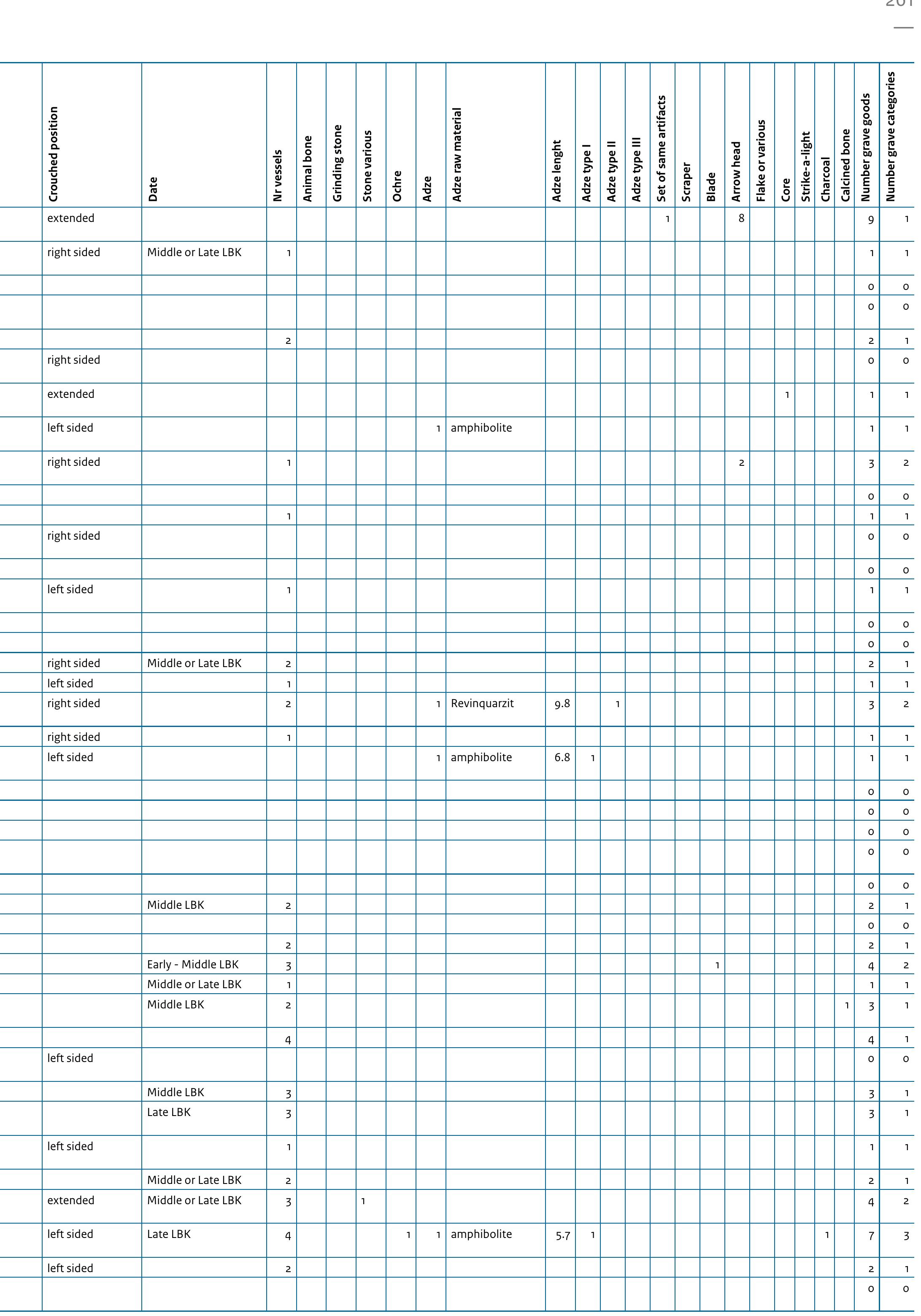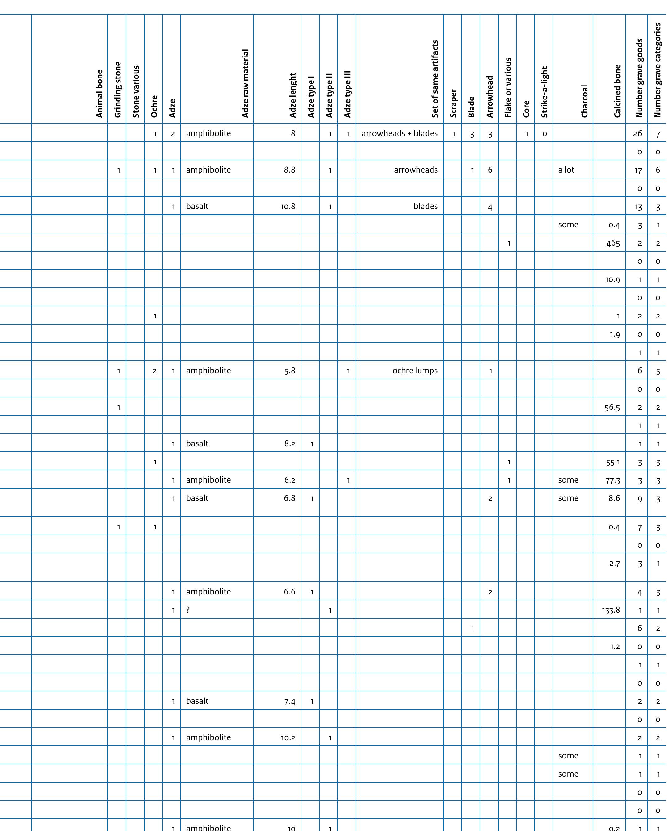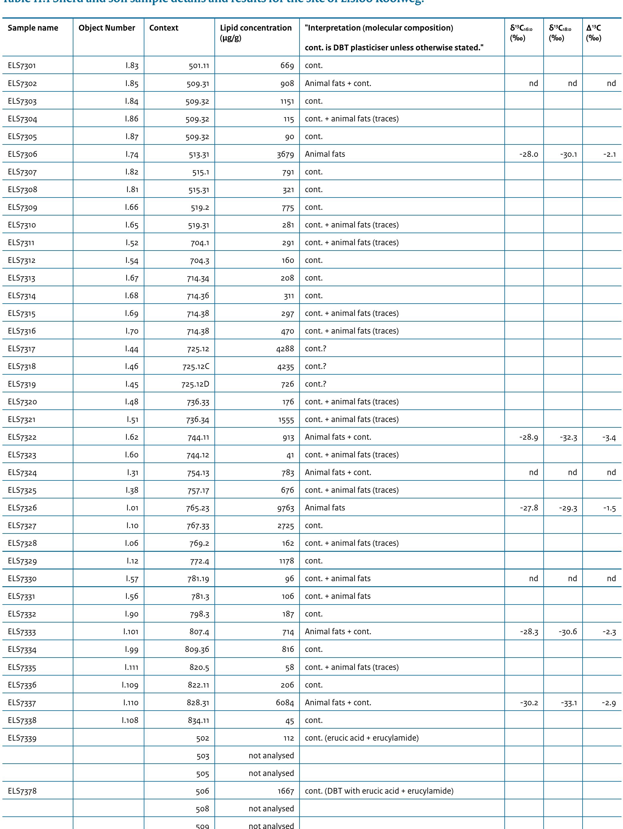 two prominent features that distinguish this site from other known settlements in the Netherlands and the Graetheide settlement cluster. There seems to be little difference in material culture compared to other sites. Pottery, flint and stone tools typically conform to regional LBK standards. What