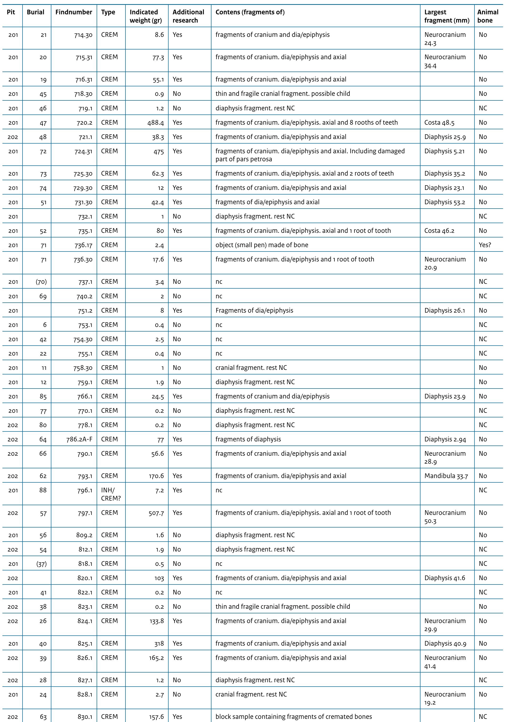 Tijdens de onderzoeken van Archol bv i.s.m. de Faculteit Archeologie van de Universiteit Leiden en met de hulp van vele vrijwilligers zijn aanvullend in totaal de resten van 19