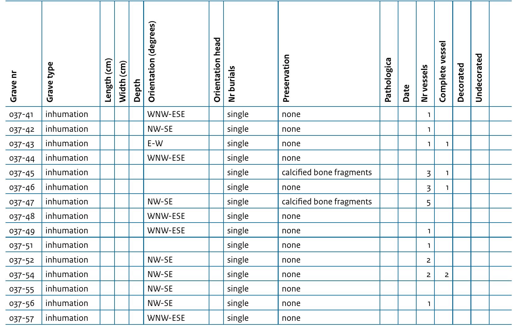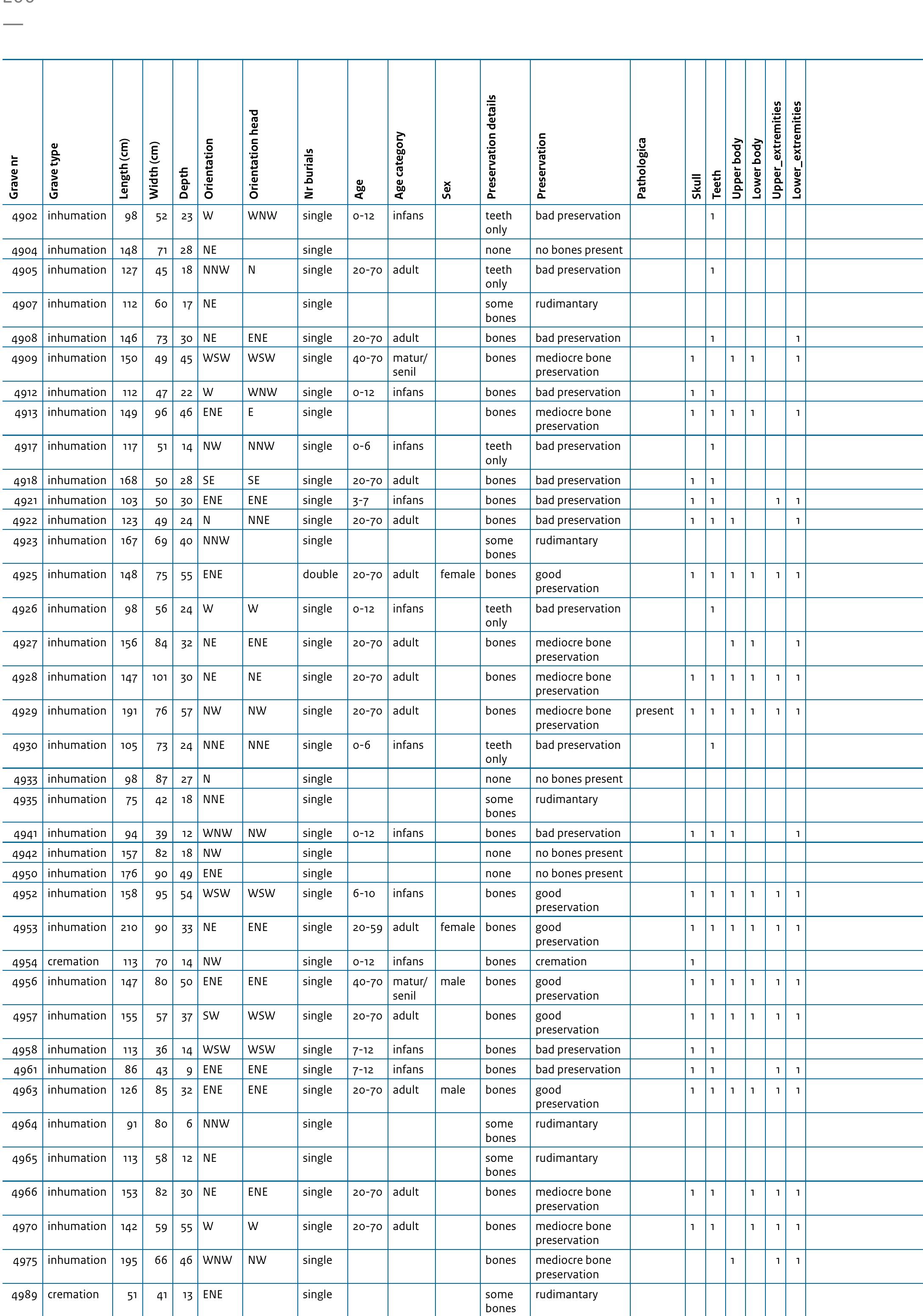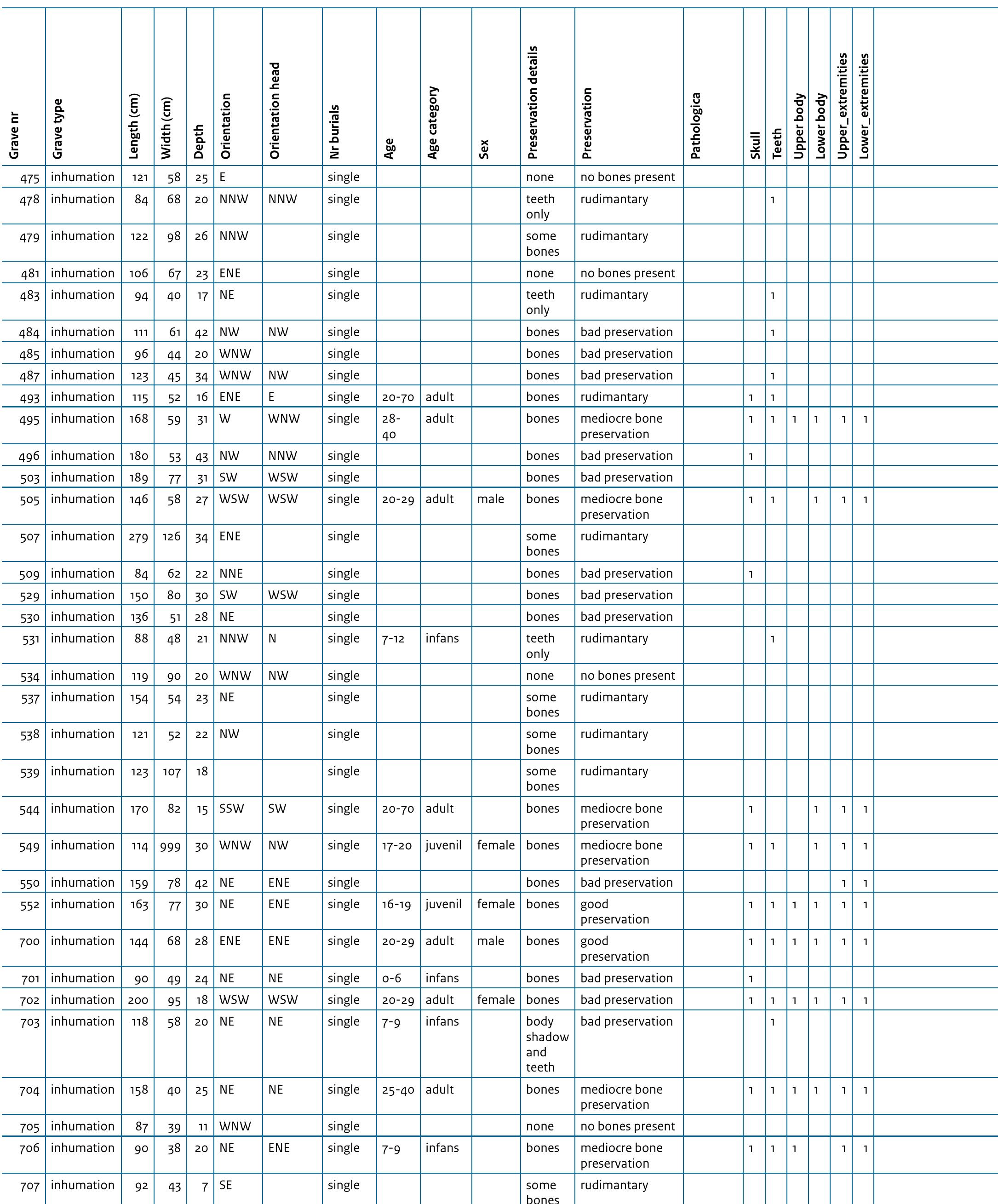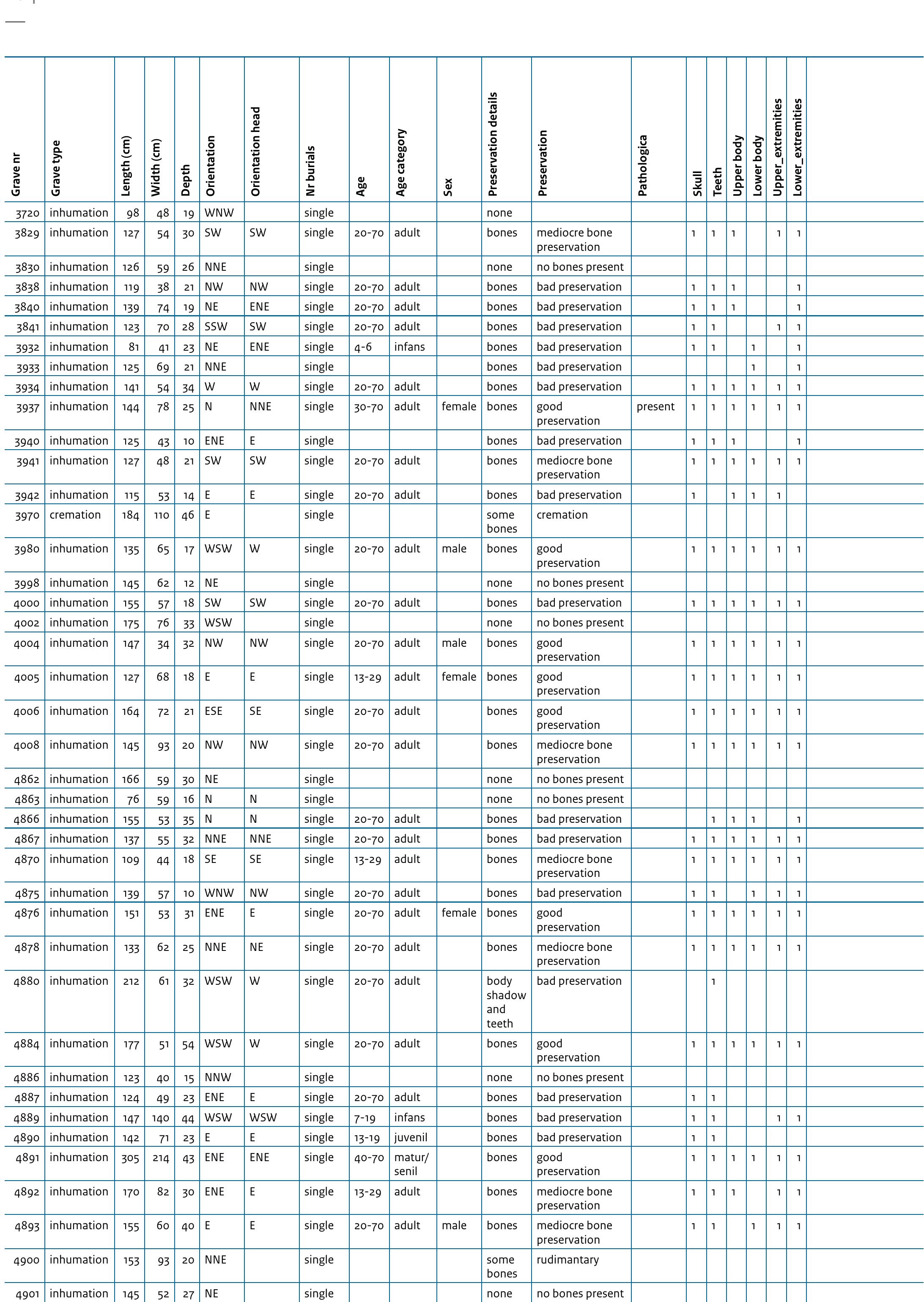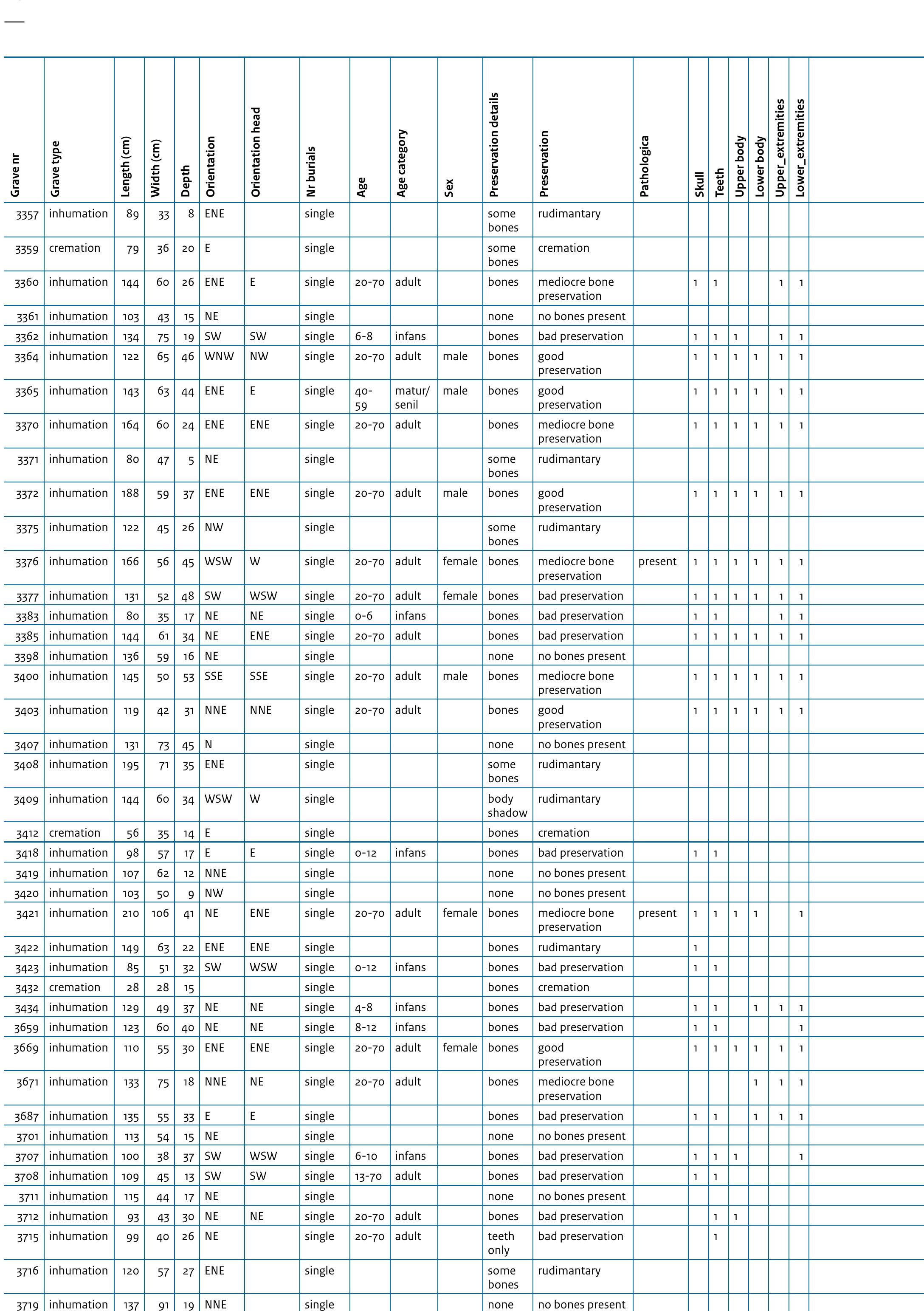 unambiguously identifed as such, resulting in a total of 97 and potentially 113 graves. The initial analysis of the burial ground