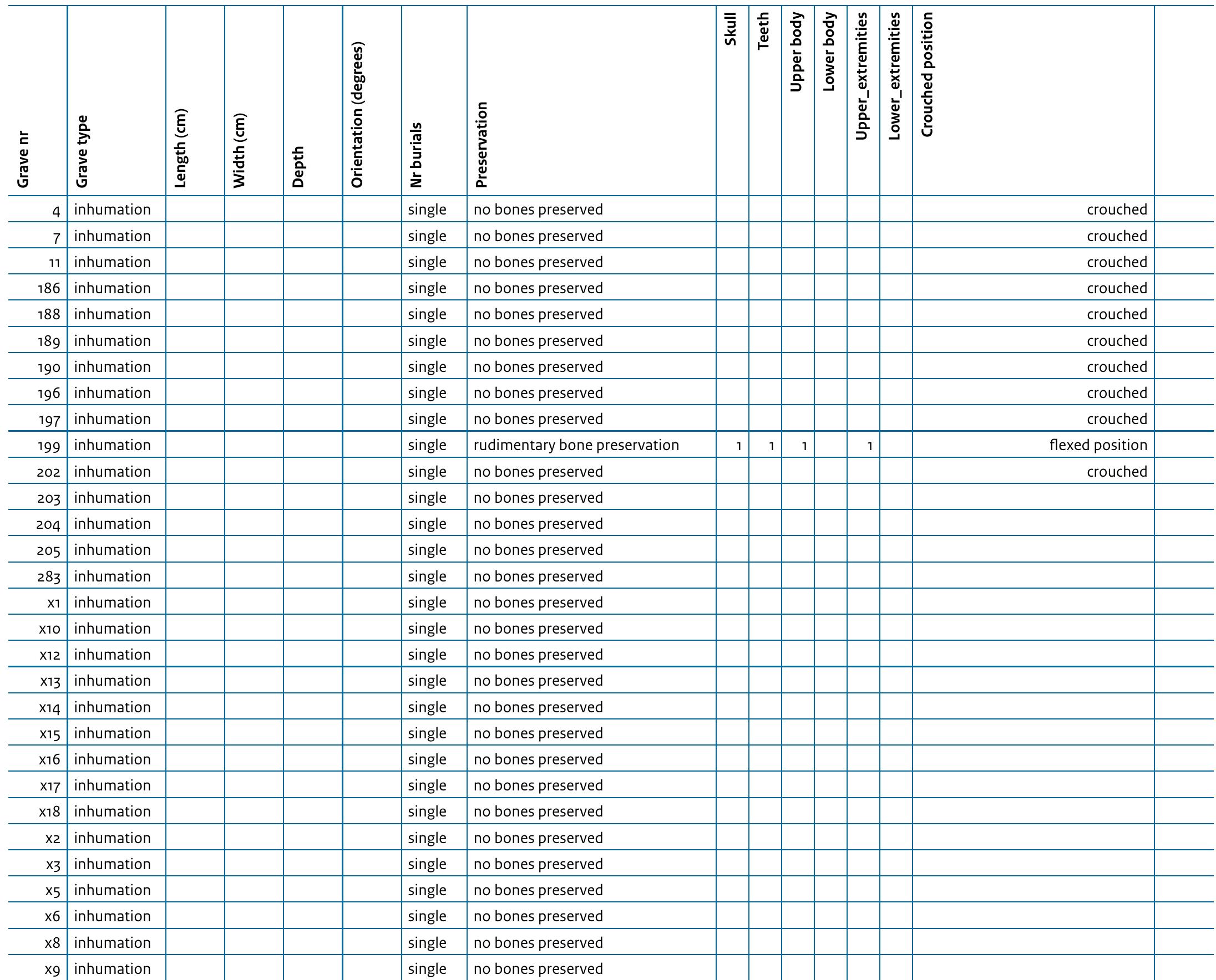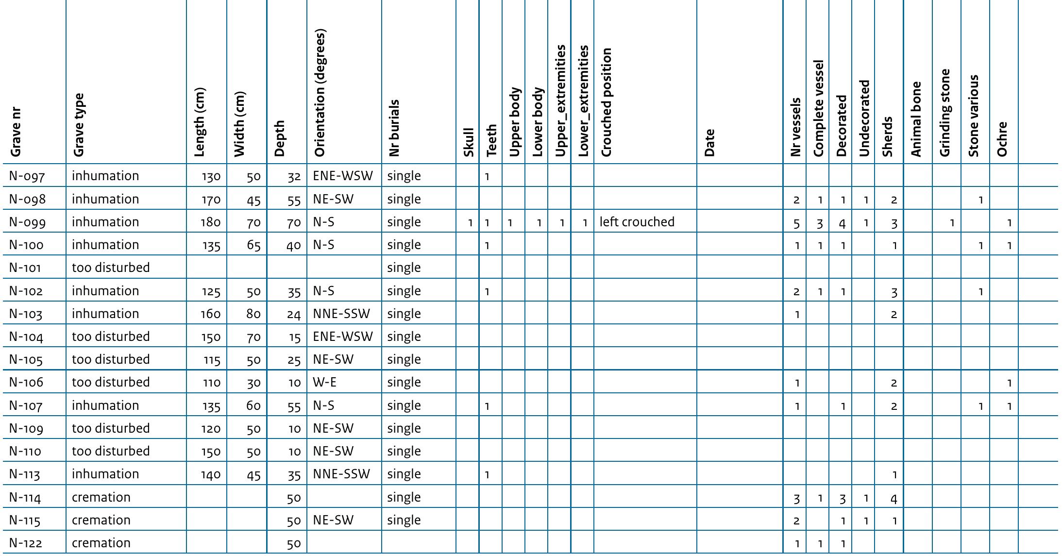 unambiguously identified as such, resulting in a total of 97 and potentially 113 graves. The initial analysis of the burial ground