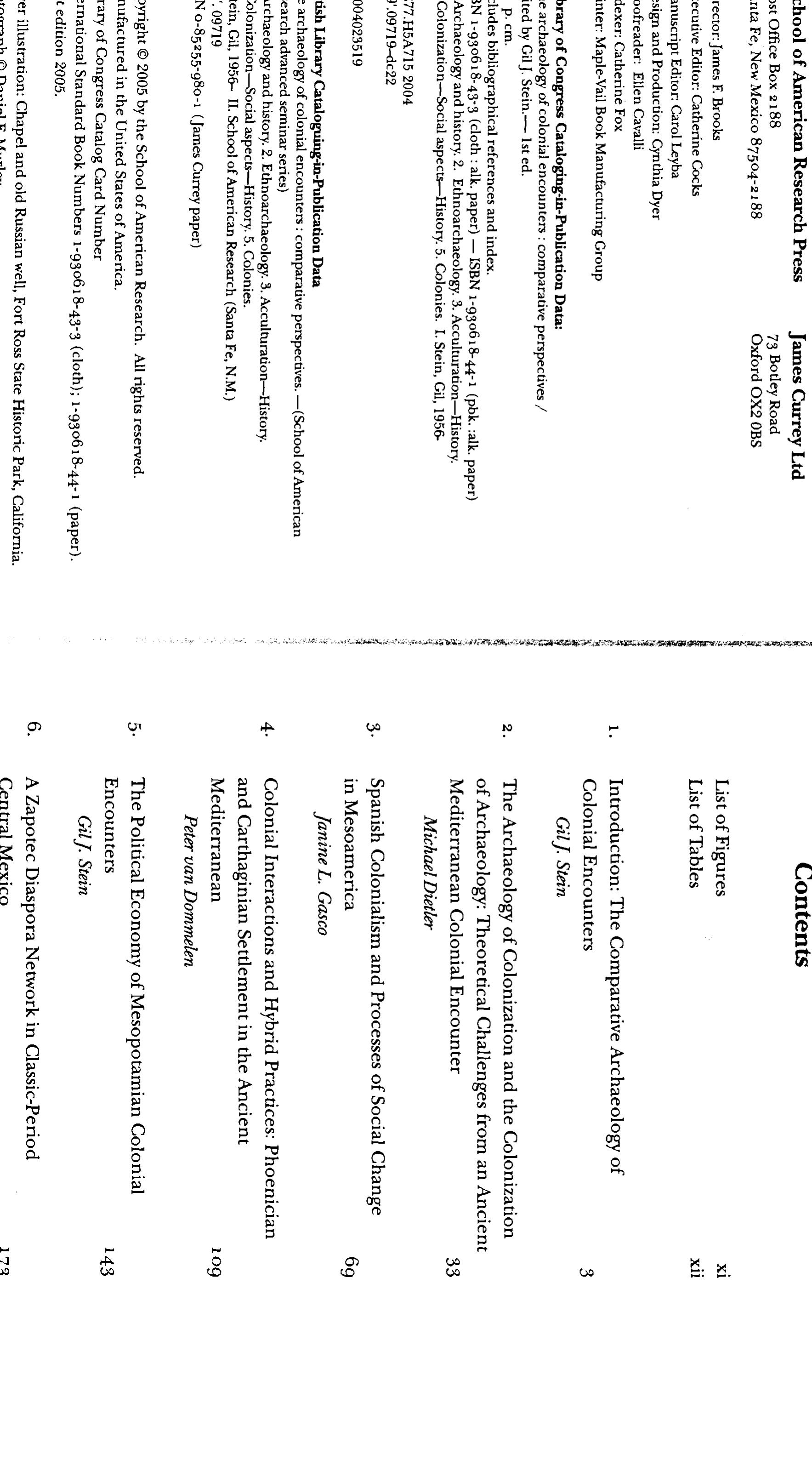 The Archaeology of Colonial Encounters: Comparative Perspectives, 2005