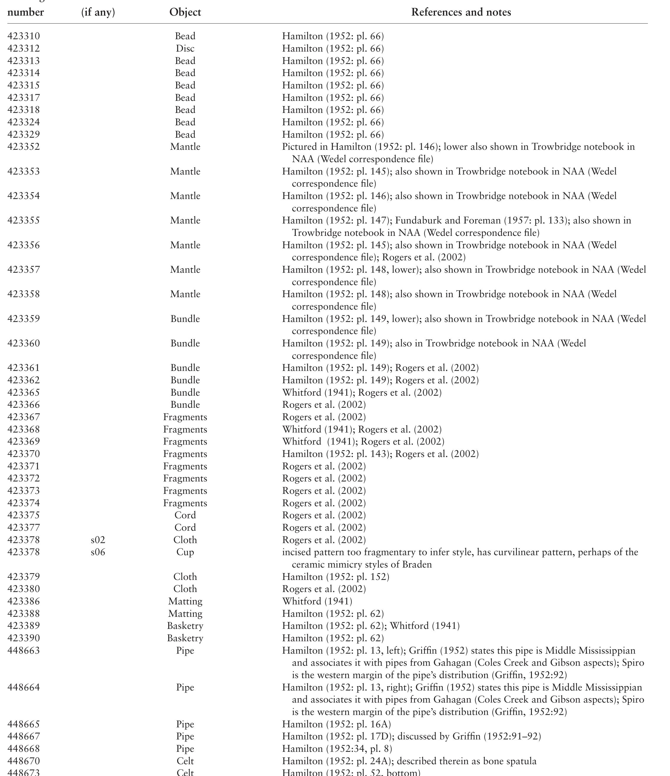 Contribution by Javier Urcid s m i t h s o n i a n c o n t r i b u t i o n s t o a n t h r o p o ... more Contribution by Javier Urcid s m i t h s o n i a n c o n t r i b u t i o n s t o a n t h r o p o l o g y • n u m b e r 4 9 washington, D.c. 2011 artifacts from the craig Mound at spiro, oklahoma April K. Sievert with J. Daniel Rogers Contribution by Javier Urcid aBstRact sievert, april K., with J. Daniel Rogers and contribution by Javier Urcid. Artifacts from the Craig Mound at Spiro, Oklahoma. smithsonian contributions to anthropology, number 49, xiv + 231 pages, 163 figures, 11 plates, 48 tables, 2011.-this monograph presents the historical context and detailed descriptions of a remarkable collection of more than 20,000 artifacts from the craig Mound at the spiro site in eastern oklahoma. spiro is one of the key sites known for the Mississippian Period (ad 900-1500) of the eastern United states. aside from the cultural importance of the site in regional history, the artifacts from spiro provide an almost unique glimpse into the ceremonial life and artistic innovations of a people who developed an important but poorly known cultural tradition. Between 1933 and 1936 the spiro site was looted, and artifacts were sold and traded to many collectors. subsequently, professional archaeological excavations were conducted, and those collections primarily reside at the sam noble oklahoma Museum of natural history. the smithsonian spiro collection is under the care of the Department of anthropology at the national Museum of natural history. the collection came to the Museum through 14 accessions between 1936 and 1986. the largest portion was acquired from harry M. trowbridge in 1958. of particular note in the collection are marine shells engraved with a wide variety of human and animal images. the collection also includes pigments, basketry, clothing with dyed designs, pipes, weapons, ornaments, containers, and figurines made from several different materials. Many of the artifacts are made from raw materials that were acquired by the spiro people through an extensive trade network extending from the atlantic to the Pacific ocean and from the upper Midwest in the north to central Mexico in the south. cover image: Detail of .