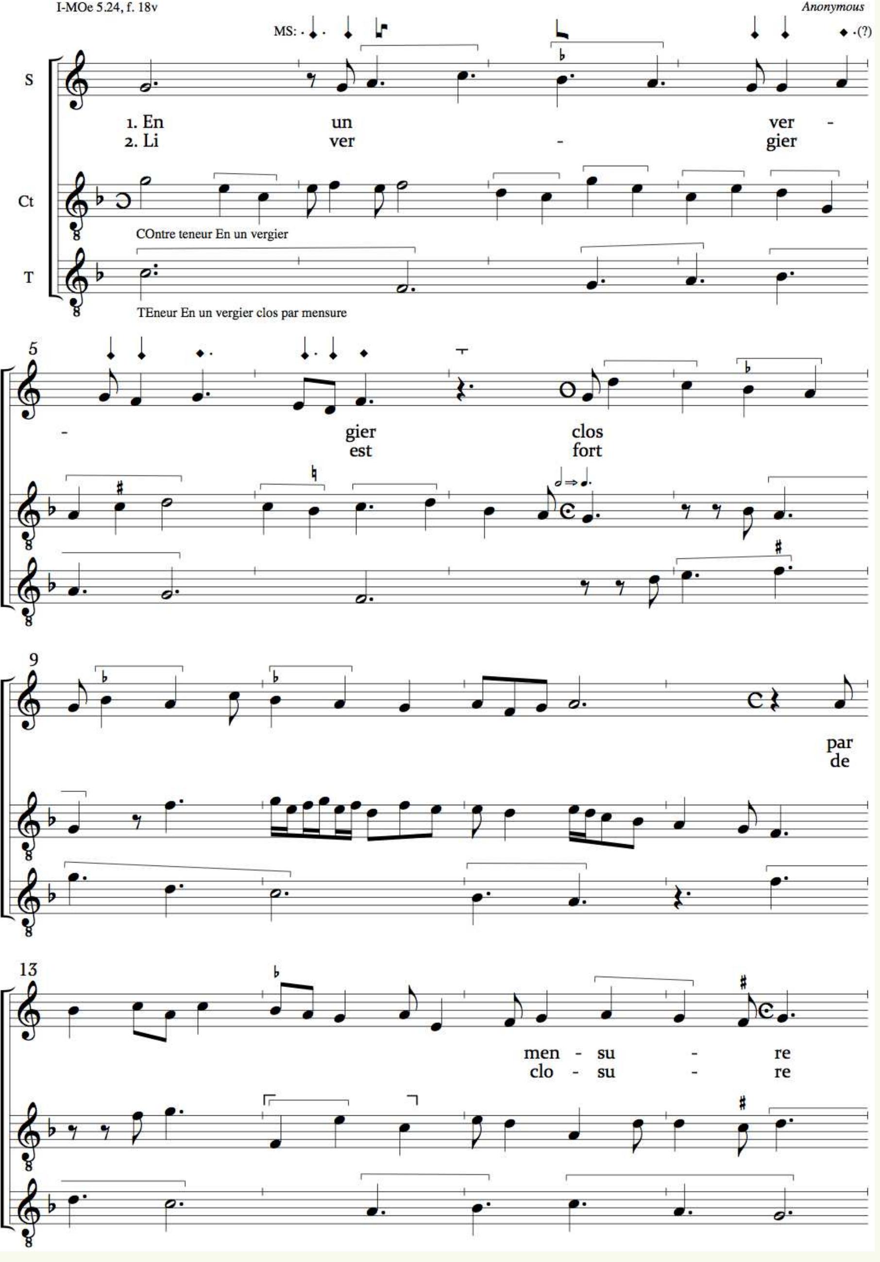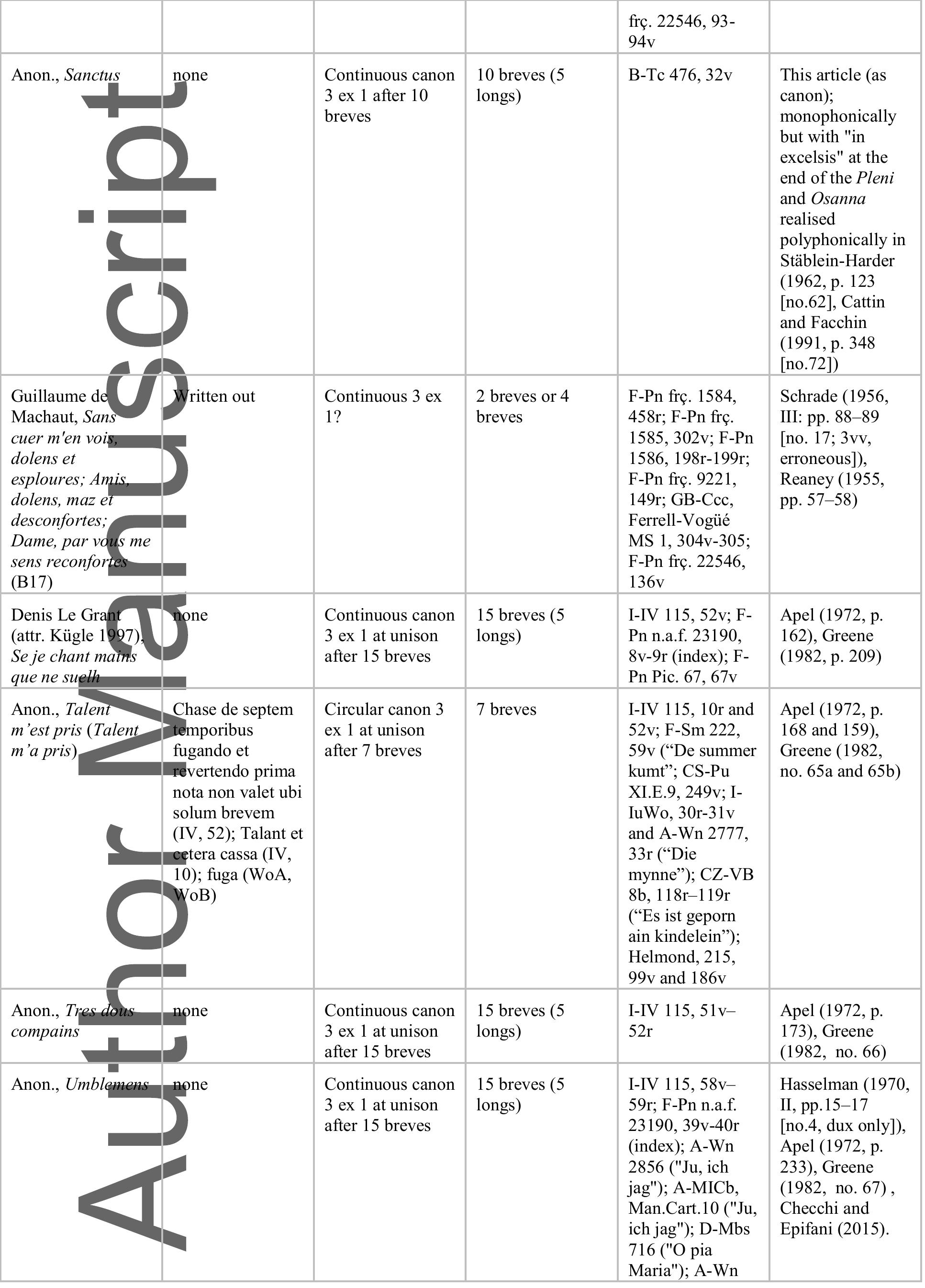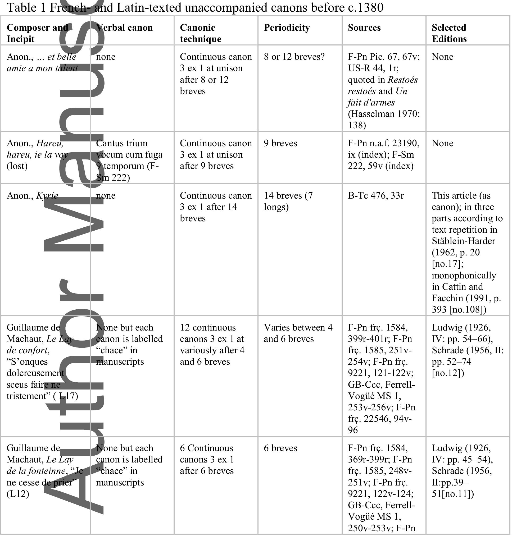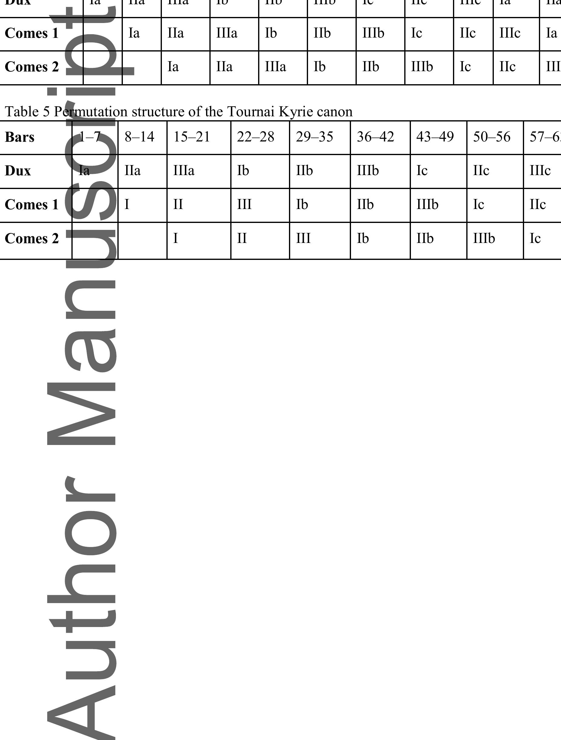 Tournai, Bibliothèque de la Cathédrale, ms. A 27 (olim 476), is well-known for its early polyphon... more Tournai, Bibliothèque de la Cathédrale, ms. A 27 (olim 476), is well-known for its early polyphonic setting of the Ordinary of the Mass (fols 28r-33v). Views on the musical cohesion of these settings vary. Charles van den Borren (1957, p. ii) adduced from patterns of transmission and stylistic features that the Mass was the work of several composers over several decades. 1 Irene Guletsky has argued for a single composer and a dating of 1317-25. Guletsky"s conclusions require further scrutiny elsewhere, but David Catalunya"s re-dating of the Las Huelgas manuscript, which transmits the Credo of the Tournai Mass, to the 1340s has some bearing on this discussion. 2 Nicola Tangari"s recent discovery of yet another transmission of the Credo in a source still in use at Avignon and then Rome in the 1360s challenges both an early dating and a one-composer hypothesis. 3 Certainly, the motet Se grasse/Cum venerint/ITE MISSA EST, which completes the Tournai Mass, still attracted the attention of the music theorist Johannes Boen in the 1360s. 4 Musicologists have long known that two additional settings of the Ordinary of the Mass, a Sanctus and Kyrie (in that order), appear in ars nova mensural notation in the Tournai manuscript. Yet their true nature has only been recently recognised, despite already being transcribed, albeit erroneously, in well-known twentieth-century monumental editions (see Table 1). In June 2014 Michael Scott Cuthbert announced on social media that he had used computational analysis to show that the once seemingly monophonic Kyrie and Sanctus could be rendered as polyphony. 5 In response, Ján Janovčik and Jason Stoessel proposed that each could be performed as a three-voice canon. 6 (See Appendices 1 and 2 for Stoessel"s transcriptions of the Kyrie and Sanctus.) 7 The discovery of the Tournai canons changes the history of canonic composition and to some extent established views on the so-called Tournai Mass.