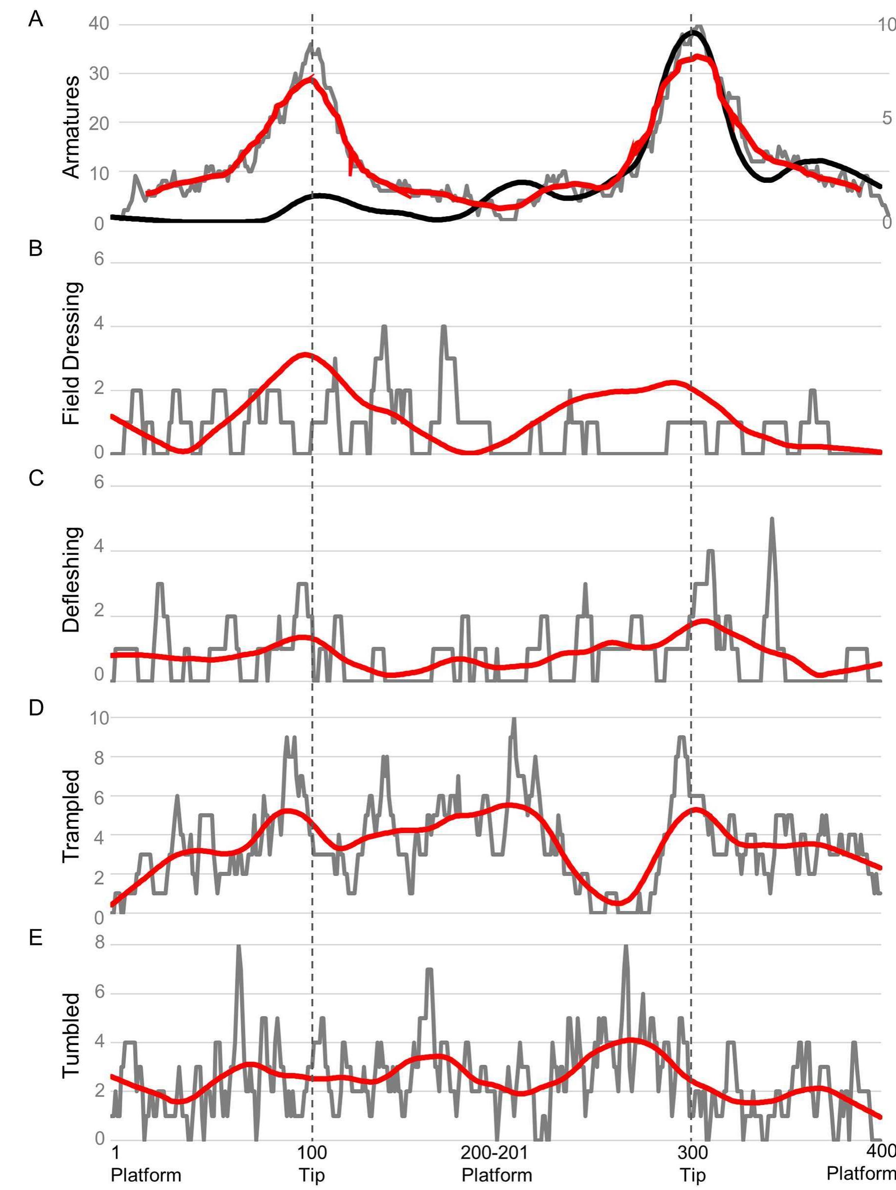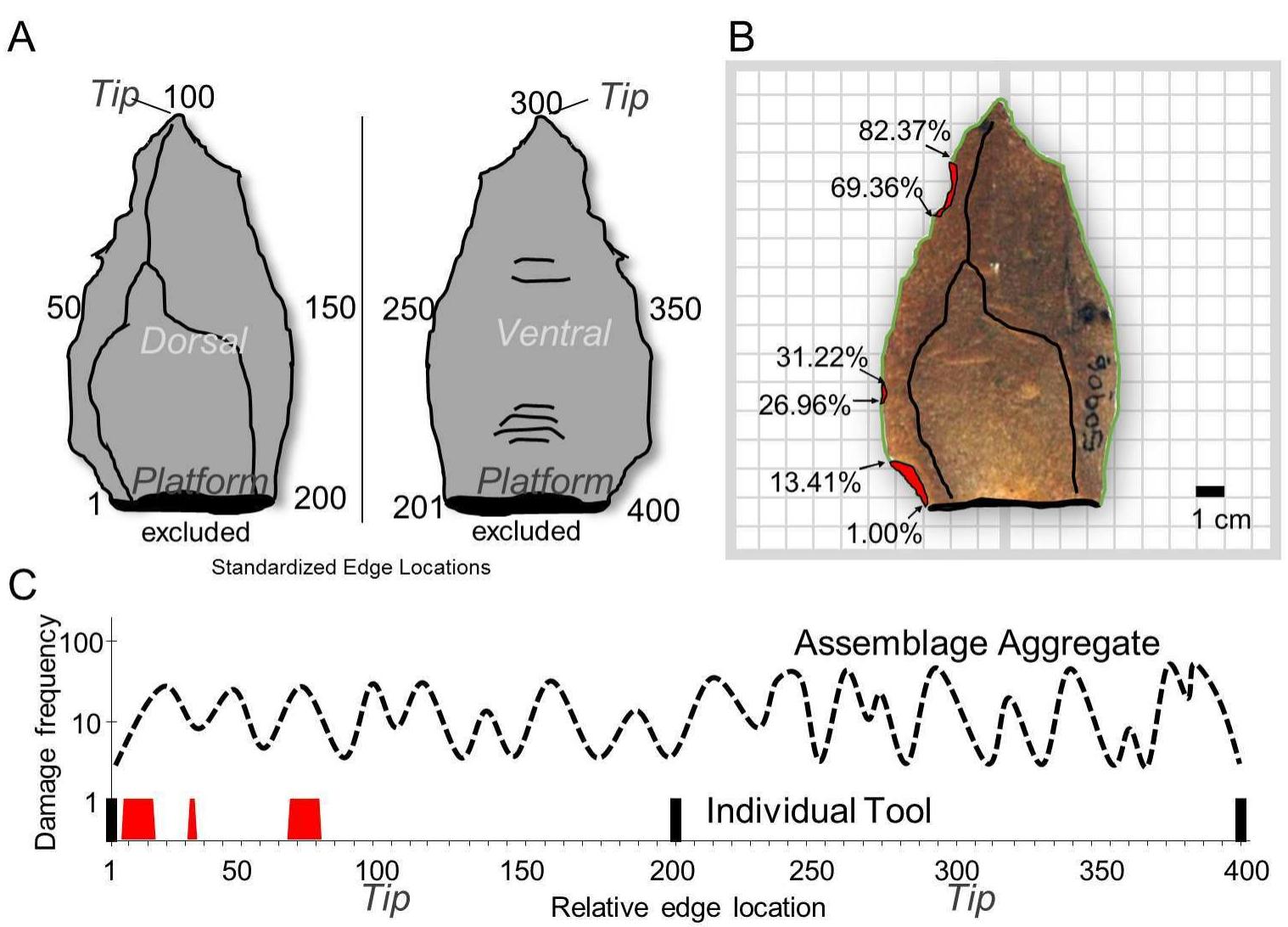 The Middle Stone Age (MSA) is associated with early evidence for symbolic material culture and co... more The Middle Stone Age (MSA) is associated with early evidence for symbolic material culture and complex technological innovations. However, one of the most visible aspects of MSA technologies are unretouched triangular stone points that appear in the archaeological record as early as 500,000 years ago in Africa and persist throughout the MSA. How these tools were being used and discarded across a changing Pleistocene landscape can provide insight into how MSA populations prioritized technological and foraging decisions. Creating inferential links between experimental and archaeological tool use helps to establish prehistoric tool function, but is complicated by the overlaying of post-depositional damage onto behaviorally worn tools. Taphonomic damage patterning can provide insight into site formation history, but may preclude behavioral interpretations of tool function. Here, multiple experimental processes that form edge damage on unretouched lithic points from taphonomic and behavioral processes are presented. These provide experimental distributions of wear on tool edges from known processes that are then quantitatively compared to the archaeological patterning of stone point edge damage from three MSA lithic assem-blages—Kathu Pan 1, Pinnacle Point Cave 13B, and Die Kelders Cave 1. By using a model-fitting approach, the results presented here provide evidence for variable MSA behavioral strategies of stone point utilization on the landscape consistent with armature tips at KP1, and cutting tools at PP13B and DK1, as well as damage contributions from post-depositional sources across assemblages. This study provides a method with which landscape-scale questions of early modern human tool-use and site-use can be addressed.