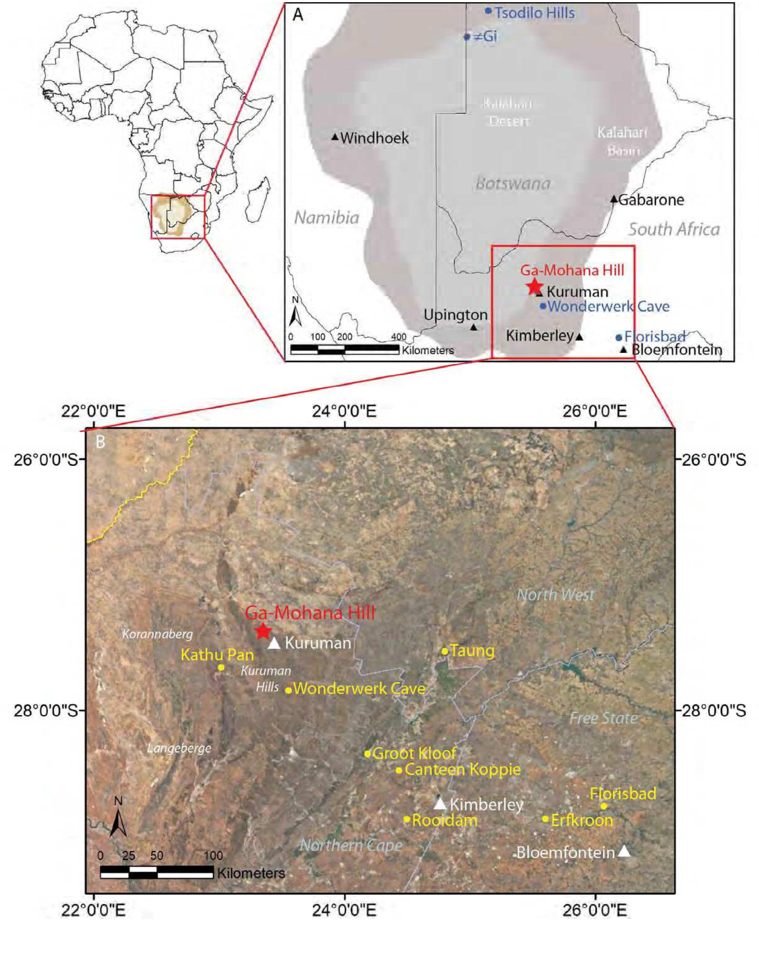 Over the last few decades, investigations of the southern African Late Pleistocene archeological ... more Over the last few decades, investigations of the southern African Late Pleistocene archeological record have transformed our understanding of Homo sapiens origins and evolution. However, the intensity of research on coastal and near-coastal records has surpassed that in the deep interior. One reason for the geographic bias is the rarity of well-preserved, datable rockshelter sites outside the more mountainous and karstic regions of South Africa. Here, we report stratified Middle Stone Age and Later Stone Age deposits at Ga-Mohana Hill North Rockshelter (GHN), near Kuruman, in the Northern Cape, South Africa. Contrary to a previous report, we show that the archeological deposits are in good context with minimal disturbance based on a detailed fabric analysis of plotted finds. Three dating methods, single-grain optically stimulated luminescence, radiocarbon, and uranium-thorium, indicate that the artifact-bearing deposits date to ~ 105 ka, ~ 31 ka, and ~ 15 ka. Thus, Ga-Mohana Hill North Rockshelter provides an important opportunity to investigate early human adaptation in this semiarid region of southern Africa.