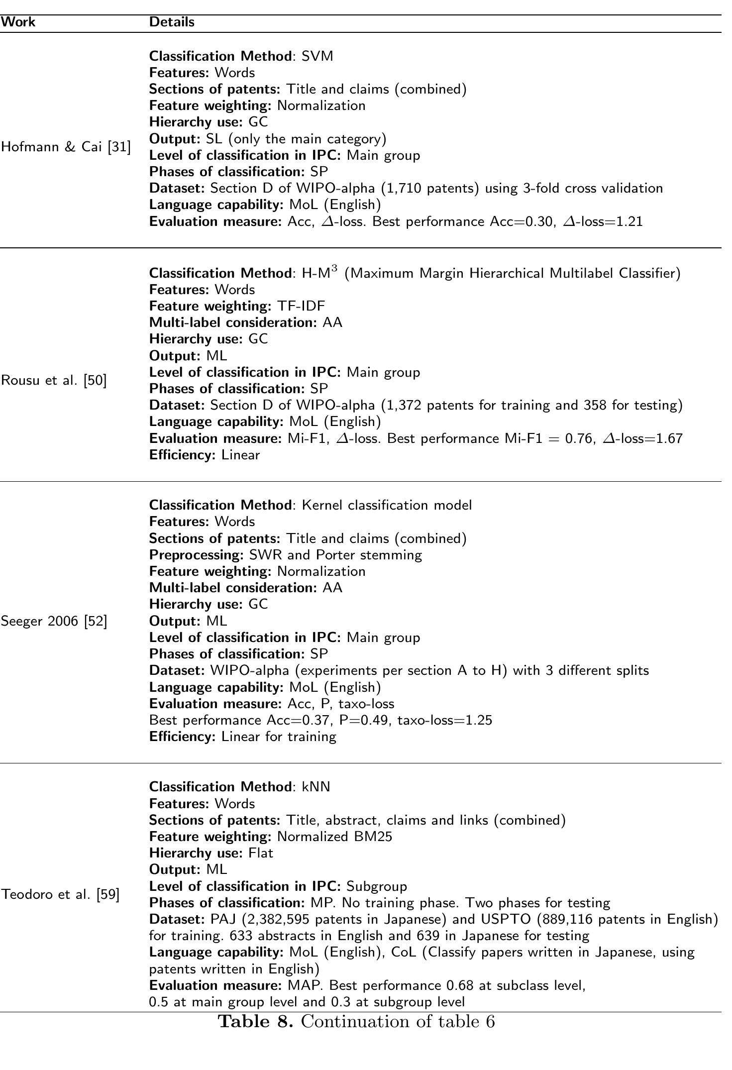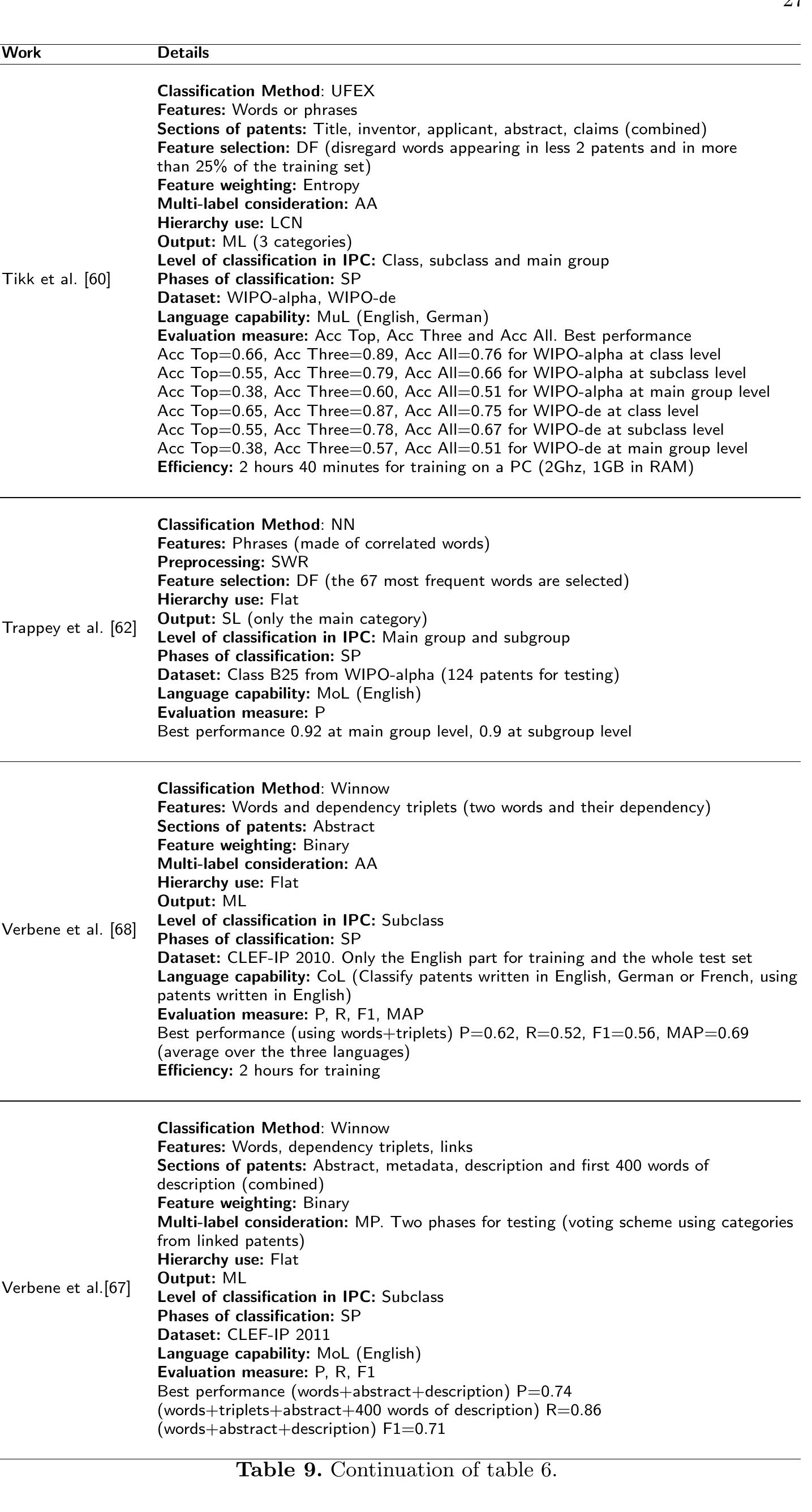 In this era of "big data", hundreds or even thousands of patent applications arrive every day to ... more In this era of "big data", hundreds or even thousands of patent applications arrive every day to patent offices around the world. One of the first tasks of the professional analysts in patent offices is to assign classification codes to those patents based on their content. Such classification codes are usually organized in hierarchical structures of concepts. Traditionally the classification task has been done manually by professional experts. However, given the large amount of documents, the patent professionals are becoming overwhelmed. If we add that the hierarchical structures of classification are very complex (containing thousands of categories), reliable, fast and scalable methods and algorithms are needed to help the experts in patent classification tasks. This chapter describes, analyzes and reviews systems that, based on the textual content of patents, automatically classify such patents into a hierarchy of categories. This chapter focuses specially in the patent classification task applied for the International Patent Classification (IPC) hierarchy. The IPC is the most used classification structure to organize patents, it is worldwide recognized, and several other structures use or are based on it to ensure office inter-operability.