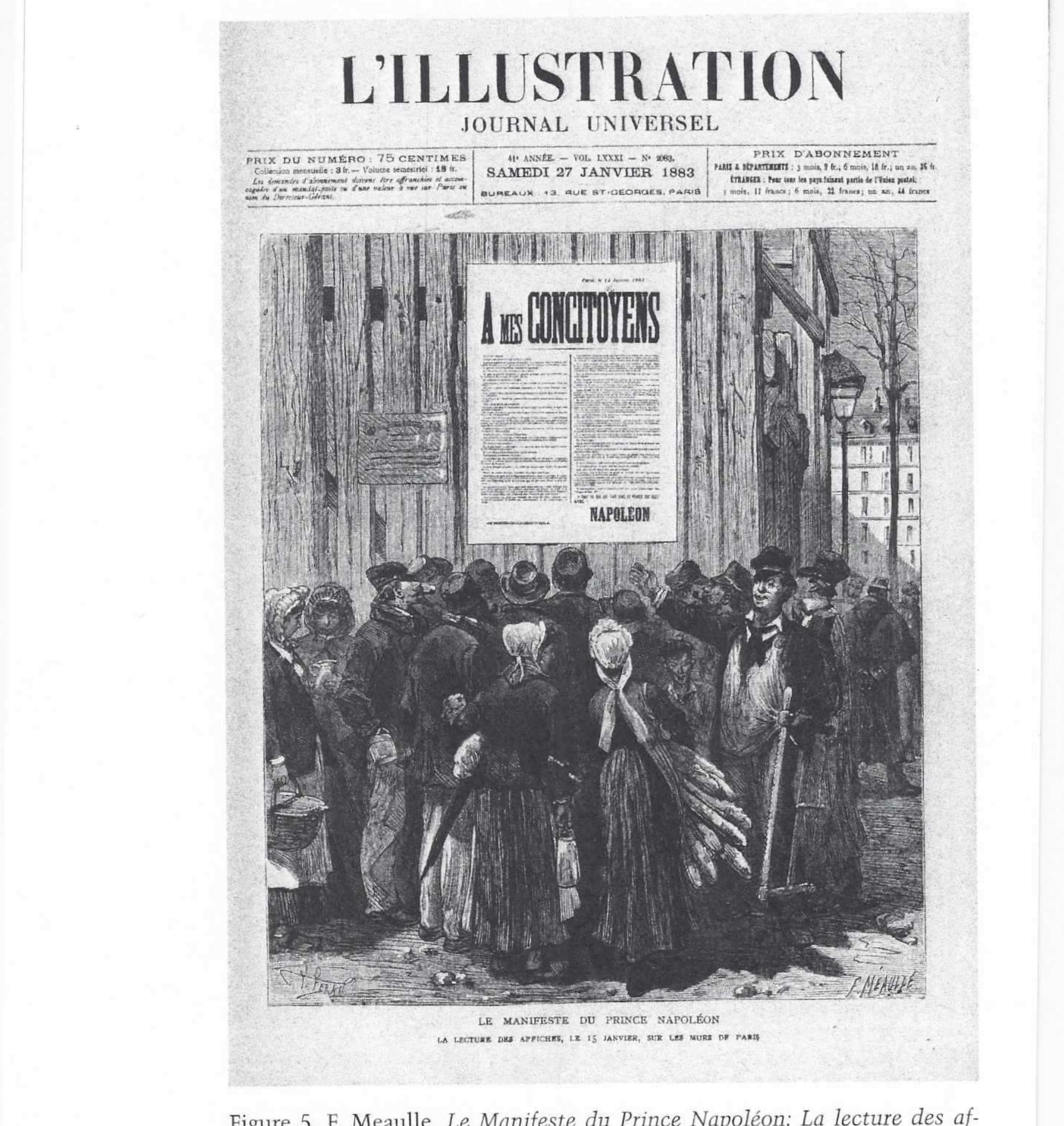 Rather than consider the overarching economic issues related to the development of capitalism, Carter’s essay instead discusses another, less frequently examined, cause for the de-politicization of culture and the rise of individual (as opposed to collective) spectatorship: police interference and political pressure. In the case examined here—political posters displayed in the streets of Paris in the 1880s and 1890s—the deliberate actions of agents of the municipal police and their dispersal of crowds that gathered around posters were attempts to eradicate expressions of political dissent as well as to prevent the collective reading that had historically been associated with the poster. These police actions were the result of a wider perception that the city space had been dramatically transformed and potentially radicalized by the greater distribution of textual and pictorial posters during these decades.