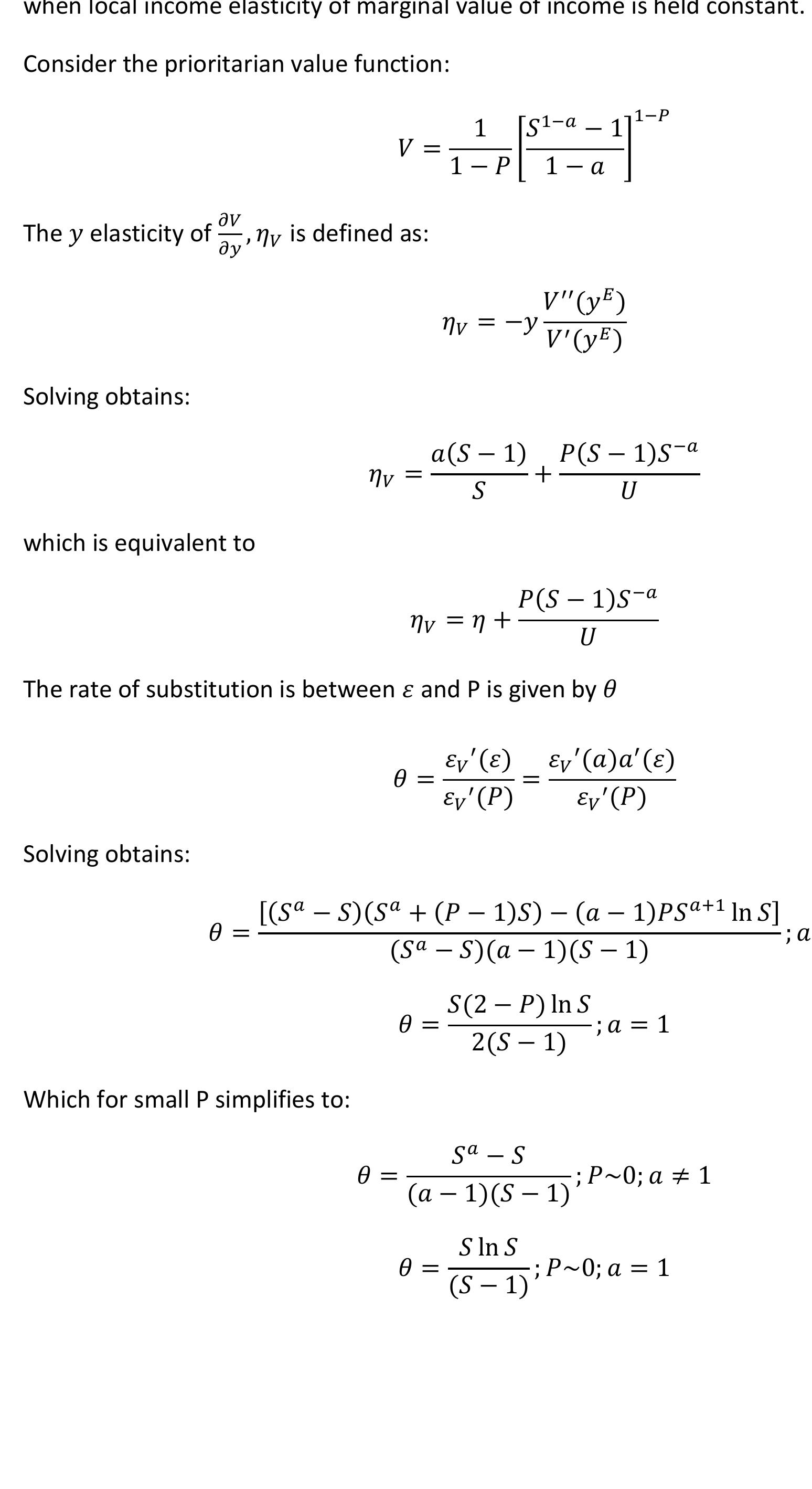 This paper introduces a logistic prioritarian social welfare function, where the weight given to ... more This paper introduces a logistic prioritarian social welfare function, where the weight given to marginal increases in utility is a decreasing logistic function of utility. The SWF then is weakly prioritarian, as the ratio of marginal value of marginal utility gains between any two hypothetical individuals is constrained to be finite. The paper outlines properties of the functions utilising a series of numerical examples. Solutions for an Atkinson like index are given, so that welfare losses from deviations from the ideal first best income distribution can be expressed in monetary equivalents (mean of a welfare equivalent equally, or alternatively optimally distributed income distribution). Finally, the paper gives numerical examples of calculated losses when the optimising and assessment parameters of the SWF disagree – For example losses when the income distribution is set to be optimal for some level of priority that is lower or higher than the level when assessing outcomes. The relatively small magnitude of such losses even under wide variation in parameter values suggest that normative disagreements over the strength of priority may not have large implications in terms of optimising policy.
