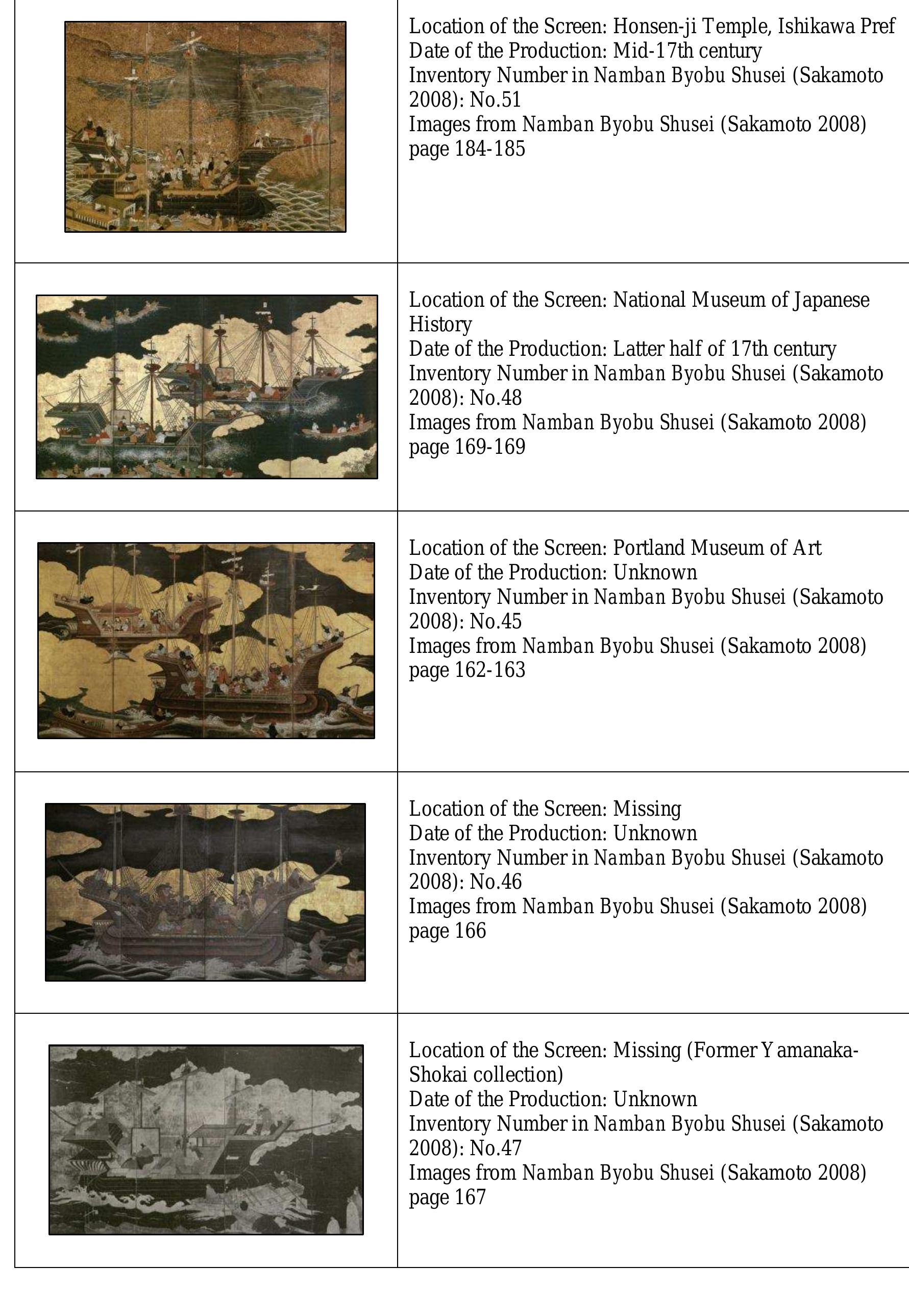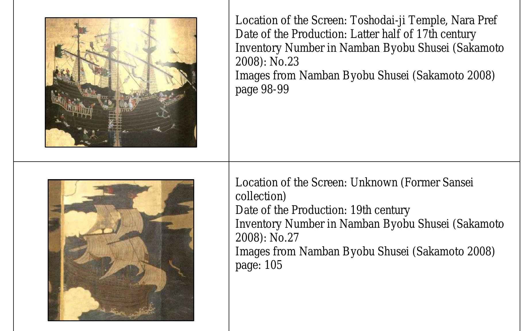 Namban screens, a well-known Japanese art form, were painted by skillful Japanese artists from th... more Namban screens, a well-known Japanese art form, were painted by skillful Japanese artists from the late 16th century to the 17th centuries. Approximately 90 of these screens have been handed down up to the present. Not only they show some important historical scenes of European commercial activities in the Far East for the first time, but they also depict representational pictures of Portuguese ships during the Age of Discovery. Although the ships’ images on the screens are roughly acceptable, the details are often strangely anachronistic. The same images could be found in some Western maps in the 16th century. Judging from the similarity, perhaps, Japanese painters, who had never seen actual ships themselves in ports, did manage to copy the images from ones on those maps, which were brought to Japan by the well known Tensho embassy. This was the first Japanese embassy that was sent to Europe; the diplomats left Japan in 1582 and arrived at Portugal in 1584. They met with Pope Gregory XIII and his successor, Pope Sixtus V, in Rome, and then returned back to their homeland in 1590. In the following year the embassy members succeeded in seeing Hideyoshi Toyotomi, who was the leading political ruler in Japan at that time. They gave him some souvenirs from Europe, including the maps. It seems that some official court painters had a chance to see those gifts, from where Japanese artists could have obtained an idea of the ships’ images that appear in the Namban Screens.