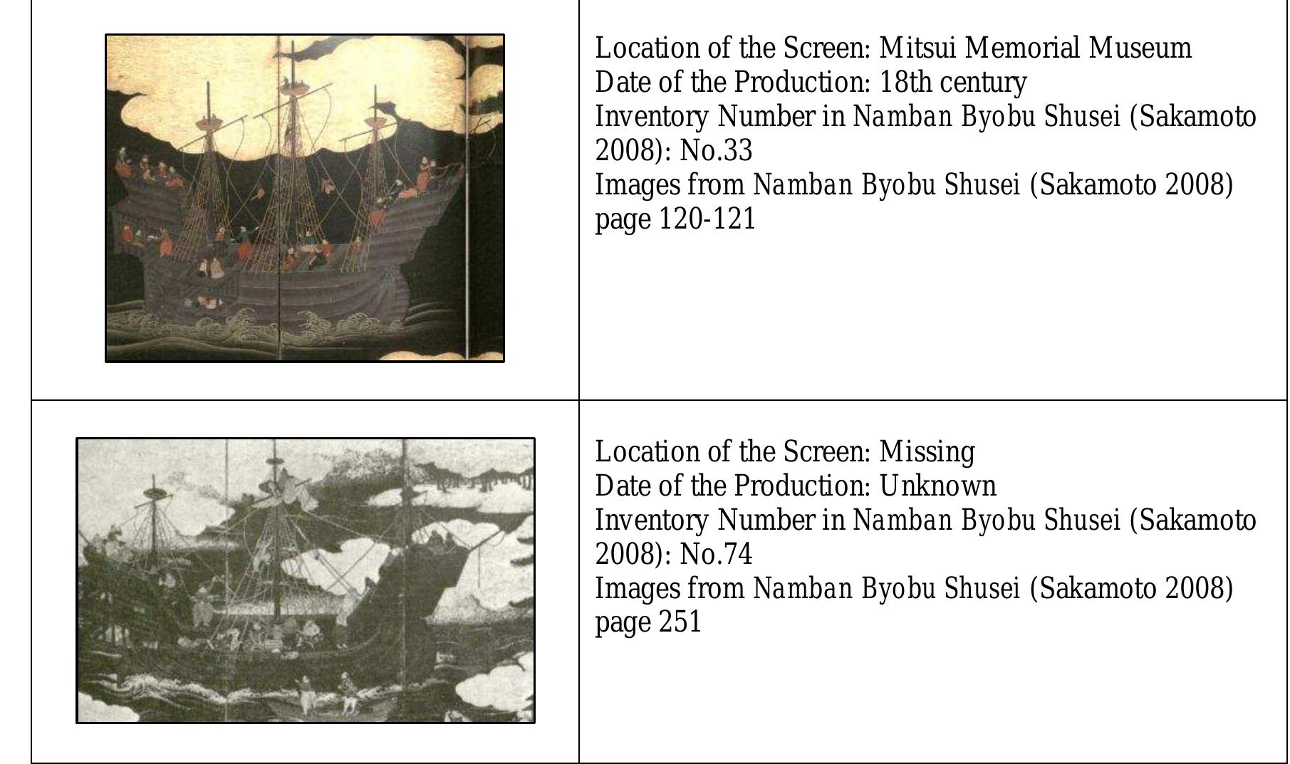 Namban screens, a well-known Japanese art form, were painted by skillful Japanese artists from th... more Namban screens, a well-known Japanese art form, were painted by skillful Japanese artists from the late 16th century to the 17th centuries. Approximately 90 of these screens have been handed down up to the present. Not only they show some important historical scenes of European commercial activities in the Far East for the first time, but they also depict representational pictures of Portuguese ships during the Age of Discovery. Although the ships’ images on the screens are roughly acceptable, the details are often strangely anachronistic. The same images could be found in some Western maps in the 16th century. Judging from the similarity, perhaps, Japanese painters, who had never seen actual ships themselves in ports, did manage to copy the images from ones on those maps, which were brought to Japan by the wellknownTensho embassy. This was the first Japanese embassy that was sent to Europe; the diplomats left Japan in 1582 and arrived at Portugal in 1584. They met with Pope Gregory XIII and his successor, Pope Sixtus V, in Rome, and then returned back to their homeland in 1590. In the following year the embassy members succeeded in seeing HideyoshiToyotomi, who was the leading political ruler in Japan at that time. They gave him some souvenirs from Europe, including the maps. It seems that some official court painters had a chance to see those gifts, from where Japanese artists could have obtained an idea of the ships’ images that appear in the Namban screens.