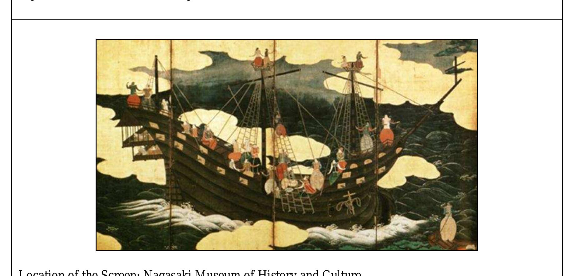 Namban screens were created by skillful Japanese traditional painters who had the utmost respect for detail, and yet the European ships they depicted are often anachronistic and strangely. On maps of the Age of Discovery, the author discovered representations of ships that are remarkably similar to the ships represented on the Namban screens. Considering the hypothesis that ships of some of the Namban screens are copies of ships represented on contemporary European cartography, the author realized that one particular historical event connecting Europe and Japan may be the source of these representations. This was the first visit of the Japanese Christian embassy, the Tensho Embassy, to Rome, in 1582. Its journey to Europe and its following visit to the Taiko, or first effective leader of Japan, Hideyoshi Toyotomi, may have been a trigger for the production of one of the most well-known Japanese artworks, the Namban screens.