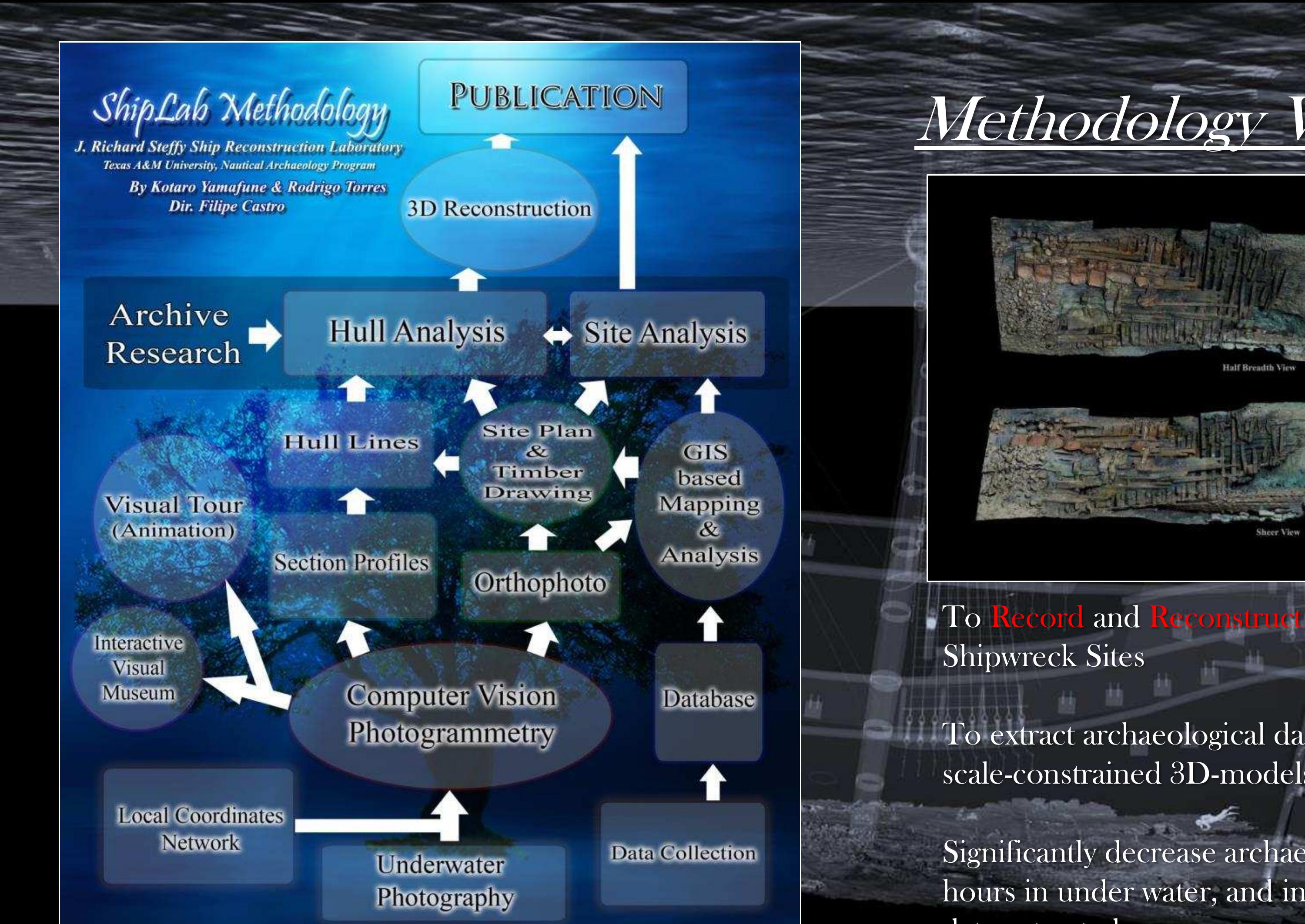 A team from the Nautical Archaeology Program at Texas A&M University developed a methodology to record and analyze underwater shipwreck sites with off-the-shelf software, including Computer-Vision (multi-image) photogrammetry. This methodology produced reliable archaeological data, based on 1:1 scale-constrained photogrammetry models, such as 2D site plans, hull lines, and timber catalogues.