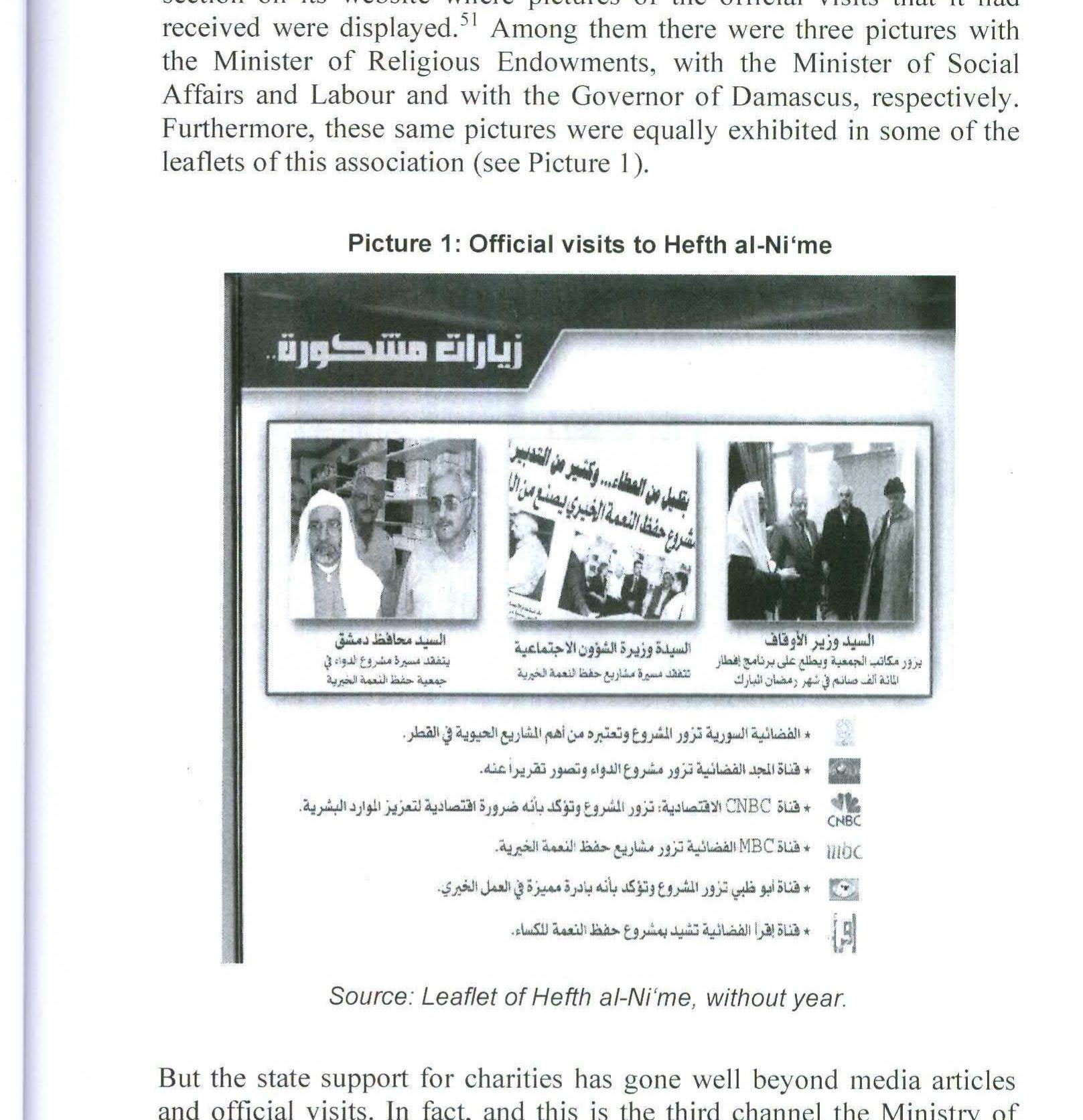 Syrian charities have become key actors within the Syrian civil society during the last ten years... more Syrian charities have become key actors within the Syrian civil society during the last ten years. Actually, in the context of the economic liberalization, charities – as other kind of NGOs – have experienced an important growth and a significant renewal in terms of the methods and the projects being undertaken. The aim of this paper is to provide a deeper analysis of the state / Charities relation during Bashar al-Asad‟s first decade. We will argue that the development of this sector has been actively encouraged by the Syrian authorities, who conceive these social structures as an efficient way to partially “off-load” the state from, at least, a part of its welfare responsibilities. We will show indeed throughout which mechanisms this support has been regularly provided (registration facilities, land donations, official visits, etc.). Notwithstanding, we will argue, the state / charities relation does not limit itself to the reinforcement of these organizations by the public administration. On the contrary, we will demonstrate how the expansion of this sector has been accompanied by the attempt to redeploy the state and to upgrade the mechanisms that permit to control and disciplinarize these activities (registration of previous non-registered charities, creation of GO-NGOs, etc.). Finally, we will supply some examples of the repressive and the coercive measures that can be extraordinary undertaken against charities (banning religious leaders from the boards of directors, dissolution of boards of directors, etc.).