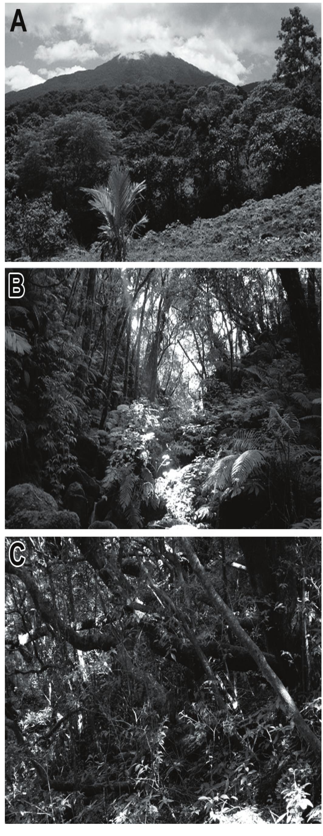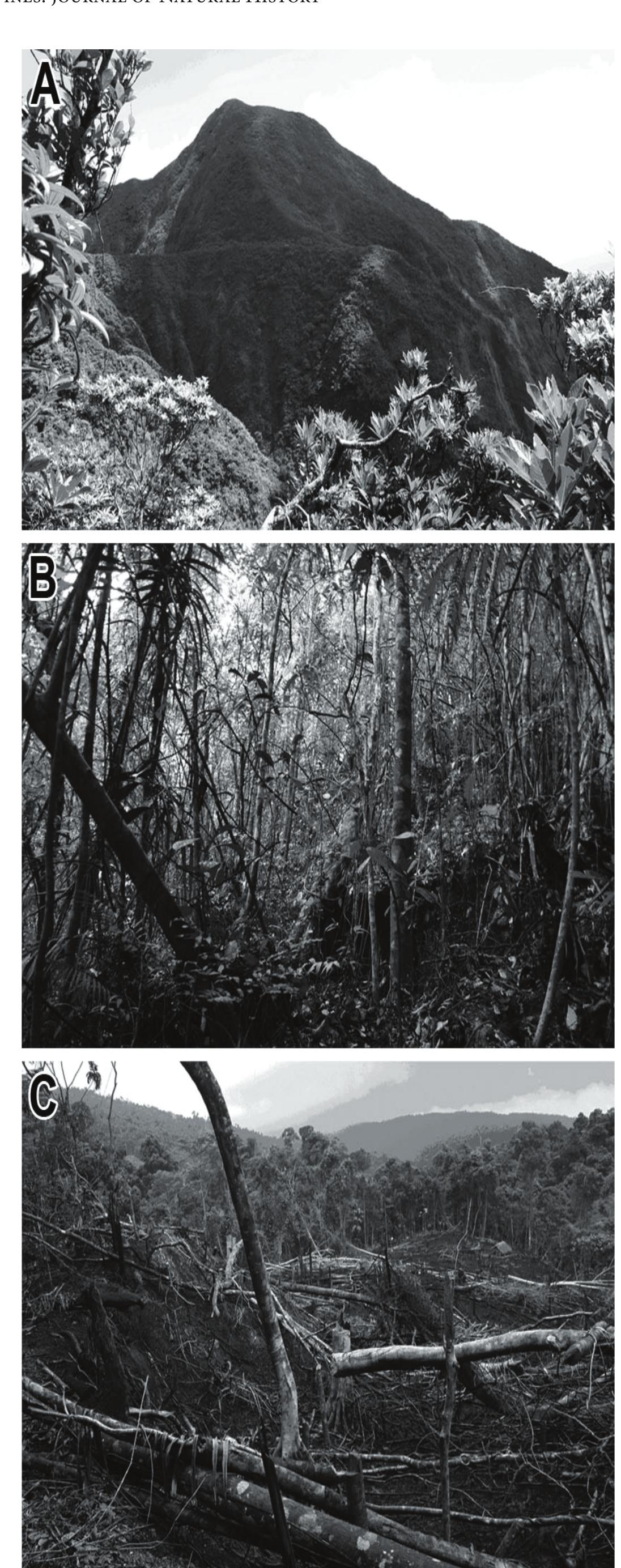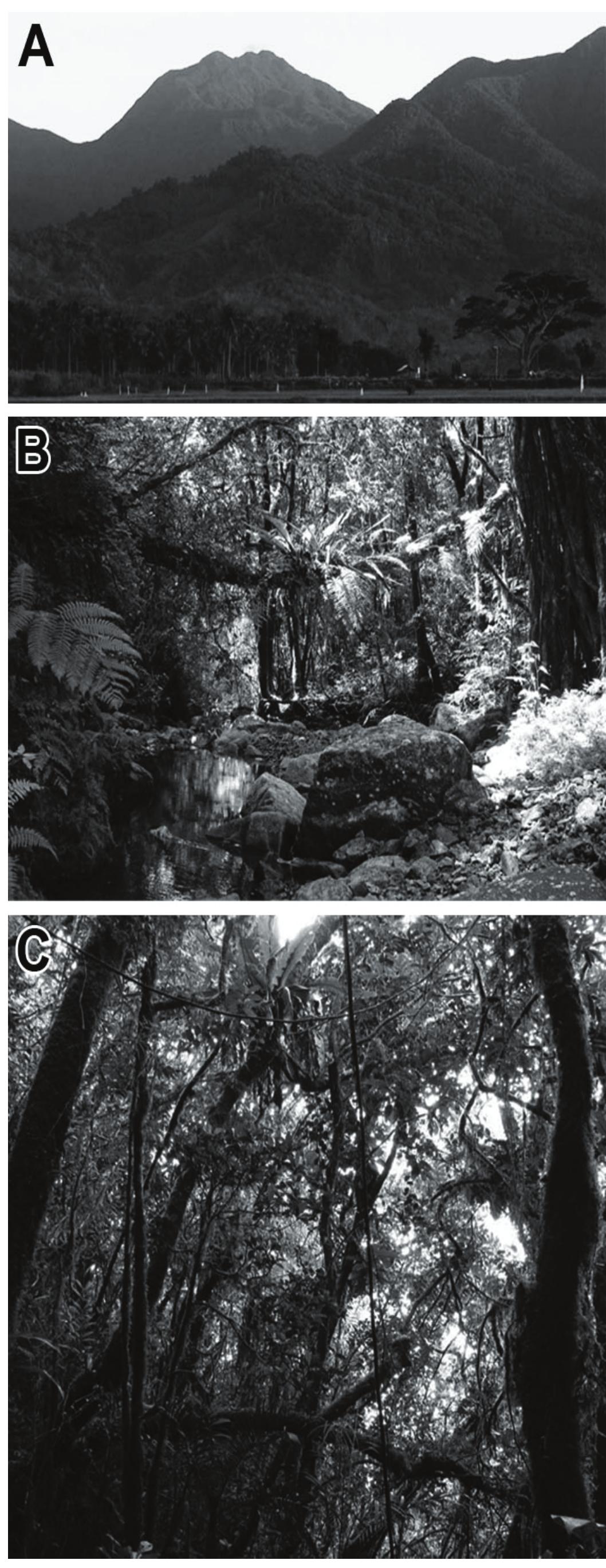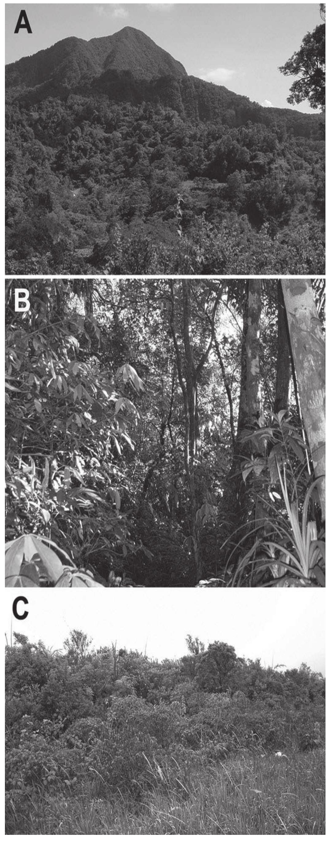 Camiguin Island, with an area of ca. 265 km 2 and maximum elevation of ca. 1620 m, lies about 10 ... more Camiguin Island, with an area of ca. 265 km 2 and maximum elevation of ca. 1620 m, lies about 10 km north of Mindanao but is isolated from Mindanao by a deep (385 m) channel. It originated from volcanic activity as a dryland island not earlier than 1 million years ago, but most growth of the island has occurred within the past 340,000 years. Current landforms are dominated by large, scenic volcanic peaks, several of which are active. Lowland rain forest originally occurred up to about 1100 m elevation, with montane rain forest from 1100 m to about 1350 m and mossy forest from 1350 m to the peaks. By the mid-1990s, deforestation had removed most natural vegetation below about 600 m, with degree of disturbance to forest decreasing with elevation and ending at about 1250 m. The climate is tropical, with rainfall of 2-3 m per year in the lowlands and probably about 7.5 m near the peaks. Mammal and/or bird specimens are available from 18 sites from the 1960s and 1990s; these sites are here located and described to the extent possible. Given the presence of two endemic species of mammals (one described in this volume), one endemic bird (described in this volume), and previously described endemic plants and a frog, Camiguin is one of the smallest but most distinctive centers of biodiversity in the Philippines and should be a priority site for conservation. The remaining forest on Camiguin is essential habitat for these unique species, but it is also essential for watershed protection and control of floods and landslides, and it contributes significantly to the tourism trade that provides substantial income on the island. Deforestation for logging and agriculture and overhunting are current threats. A protected area on the island should include the full range of original habitat diversity, which would encompass both the existing high-quality forest at upper elevations and also significant tracts of disturbed but natural lowland forest, especially along rivers and streams, that should be allowed to regenerate in the future.