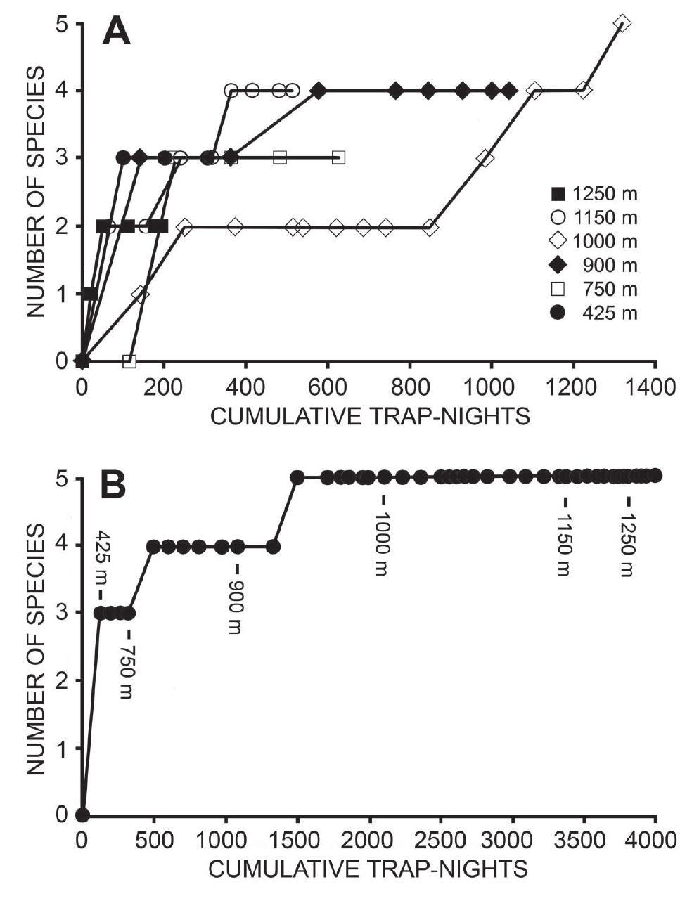 An intensive survey of the small non-volant mammals along the full elevational gradient of Mt. Ba... more An intensive survey of the small non-volant mammals along the full elevational gradient of Mt. Banahaw -San Cristobal National Park in 1995-2005, and 2012, using standardized procedures, produced records of ten native and three exotic small mammals. Four species discovered during our survey appear to be endemic to the park (Apomys banahao, A. magnus, Musseromys gulantang, and Rhynchomys banahao), a remarkable number for such a small area; the other native species are more widespread. Species richness in forest on Mt. Banahaw (peak = 2169 m) increased from five at 620 m to seven at 1465 m, and declined to three at 2030 m. Mixed agricultural areas and exotic grassland with shrubby second growth supported up to three exotic species and up to three native species. Exotic species were apparently absent from secondary or primary forest. Relative abundance of native species was significantly correlated with increasing elevation, with abundance about five times greater in montane and mossy forest than in the lowlands. Trap success using live earthworms as bait increased significantly with increasing elevation, and small mammals showed an overall preference for earthworm bait, but a few were arboreal and a few preferred coconut bait. Most species were significantly more active on the ground than in trees, and most were significantly more active during the night than during daylight. Mt. Banahaw -San Cristobal National Park is a premier example of a highly localized center of mammalian endemism; along with its important role as a religious and recreational center and crucial function as a watershed, it clearly deserves continued and active protection.