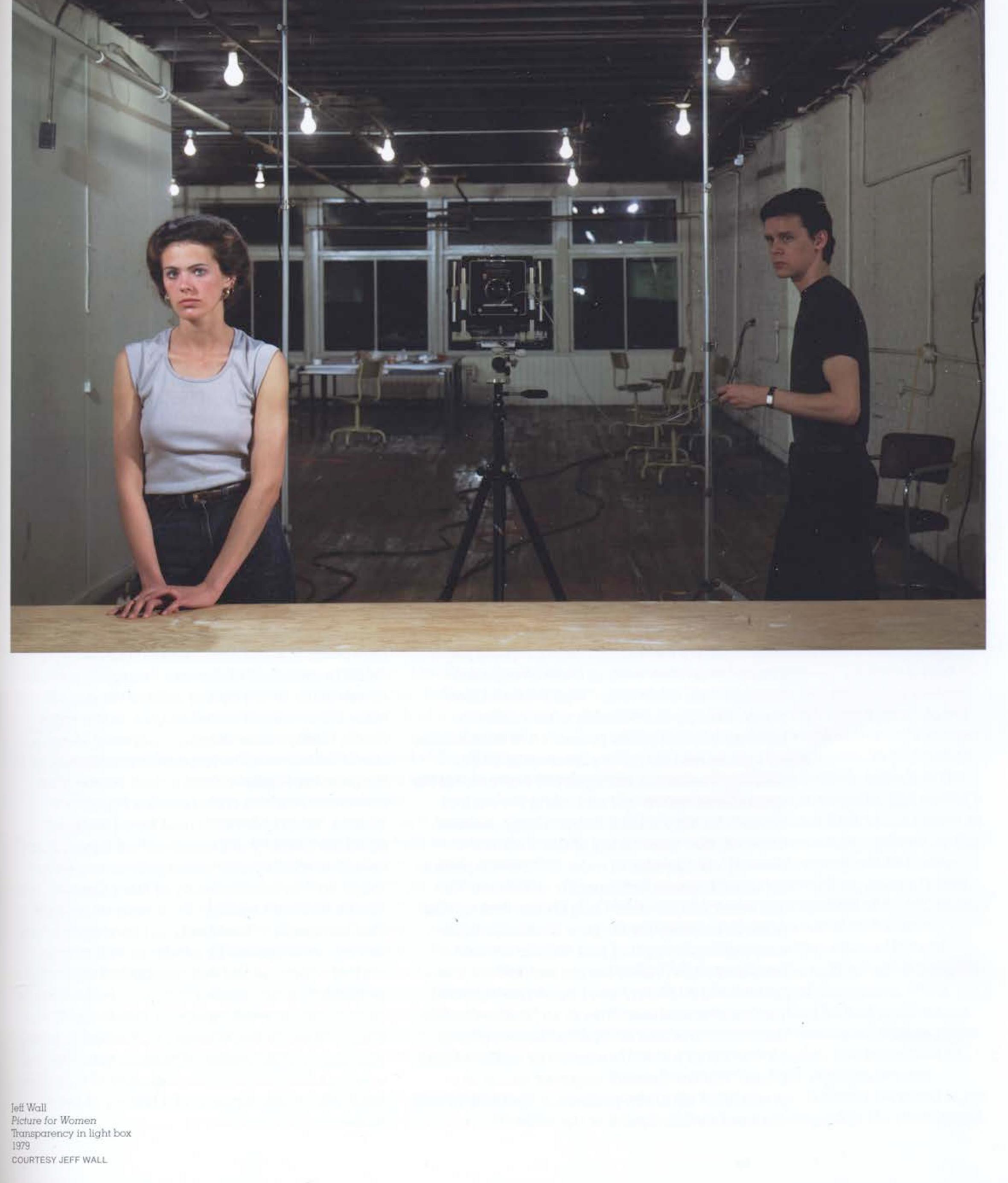 Jeff Wall's photographs are analyzed in relationship to feminist art theory.