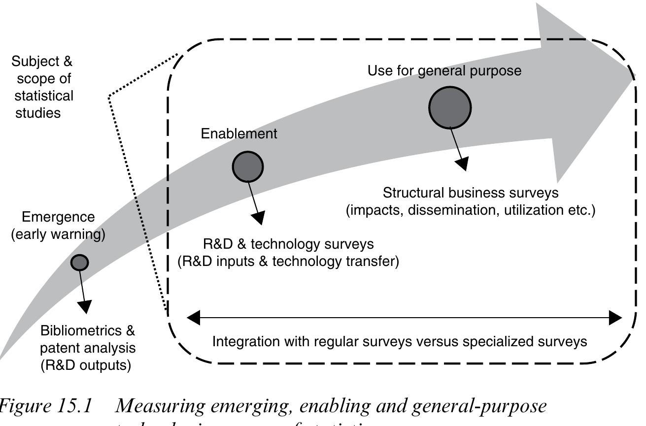 The chapter focuses on the measurement of emerging technologies that have the potential to transf... more The chapter focuses on the measurement of emerging technologies that have the potential to transform wide swathes of social and economic activity. The relevance of the topic is explained by the fact that the existing mechanisms of statistical accounting for a number of reasons fail to measure technologies that are at an early stage of development and still do not have specific applications. This results in a reduced ability to manage technology progress. Analyzing the lessons learned from statistical work around ICT and biotechnology, the authors propose a "three-dimensional" approach to the classification of technologies that covers all stages of the R&D cycle — from an idea to market launch of an end-user product or service. The basic components in measuring this area are the scientific base or origin of a given technology, its applications and the socio-economic impact. The authors demonstrate the scope for using technology Foresight to orient statistical work, and suggest that a combination of improved statistical monitoring of ongoing developments, and Foresight analysis of anticipated technology and technology applications, represents a powerful approach to achieving early footholds by way of indicators of emerging technologies in concrete circumstances. The chapter outlines the main requirements for such an approach to be effectively implemented and its results utilized; it concludes with proposals for future methodological and conceptual development.