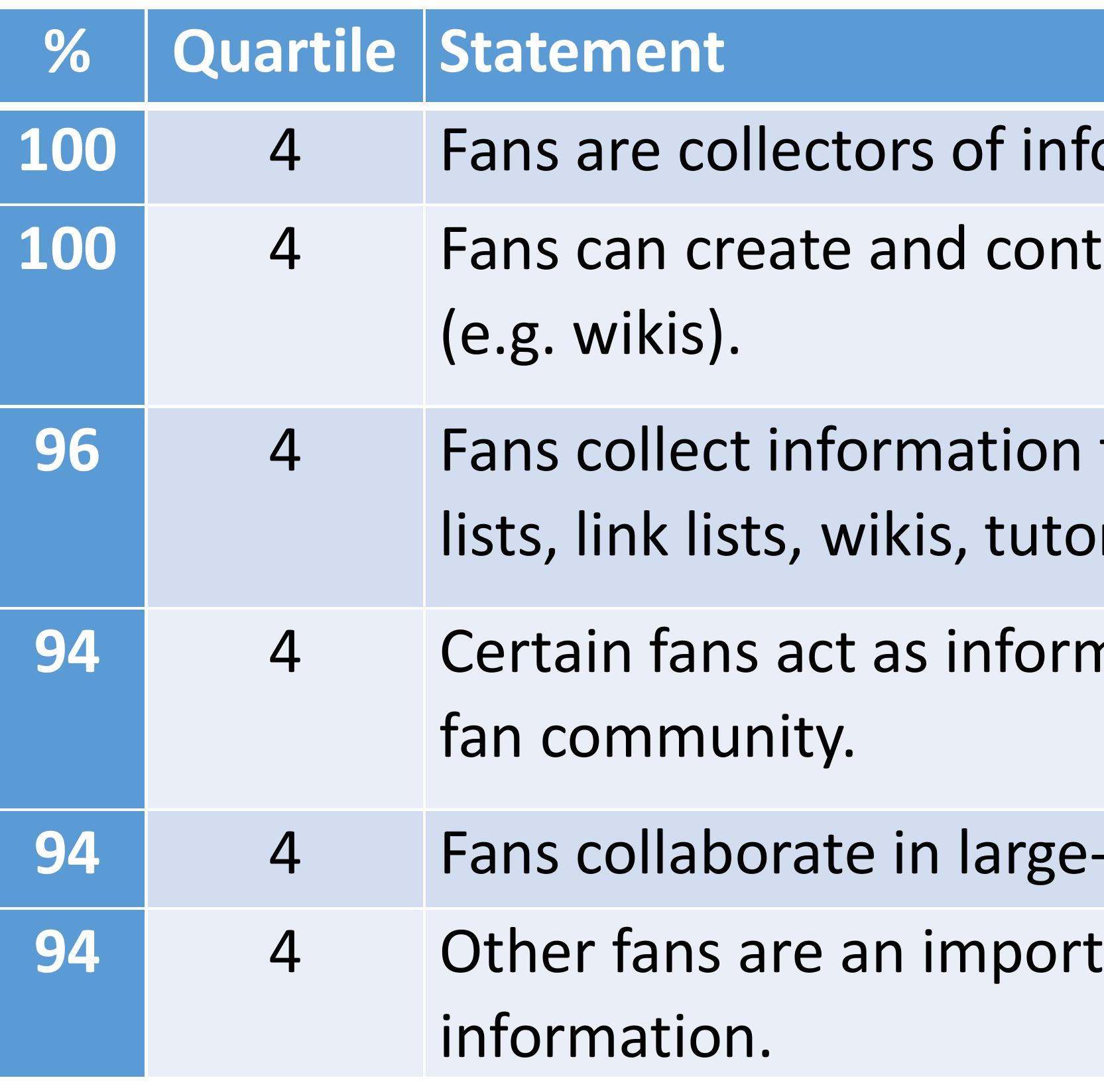 The role of the fan-gatekeeper is therefore essential for the preservation of what is undeniably part of our cultural heritage, one that has been largely ignored by the mainstream. This work informs the library and information professions of the existence of fan expertise on which it could draw to improve understanding of and access to an enormous body of non-mainstream creative works. It also has potential implications for education (in harnessing the passion of fans to help pass on valuable, transferable skills) and publishing (in the movement from established to DIY forms of publication).