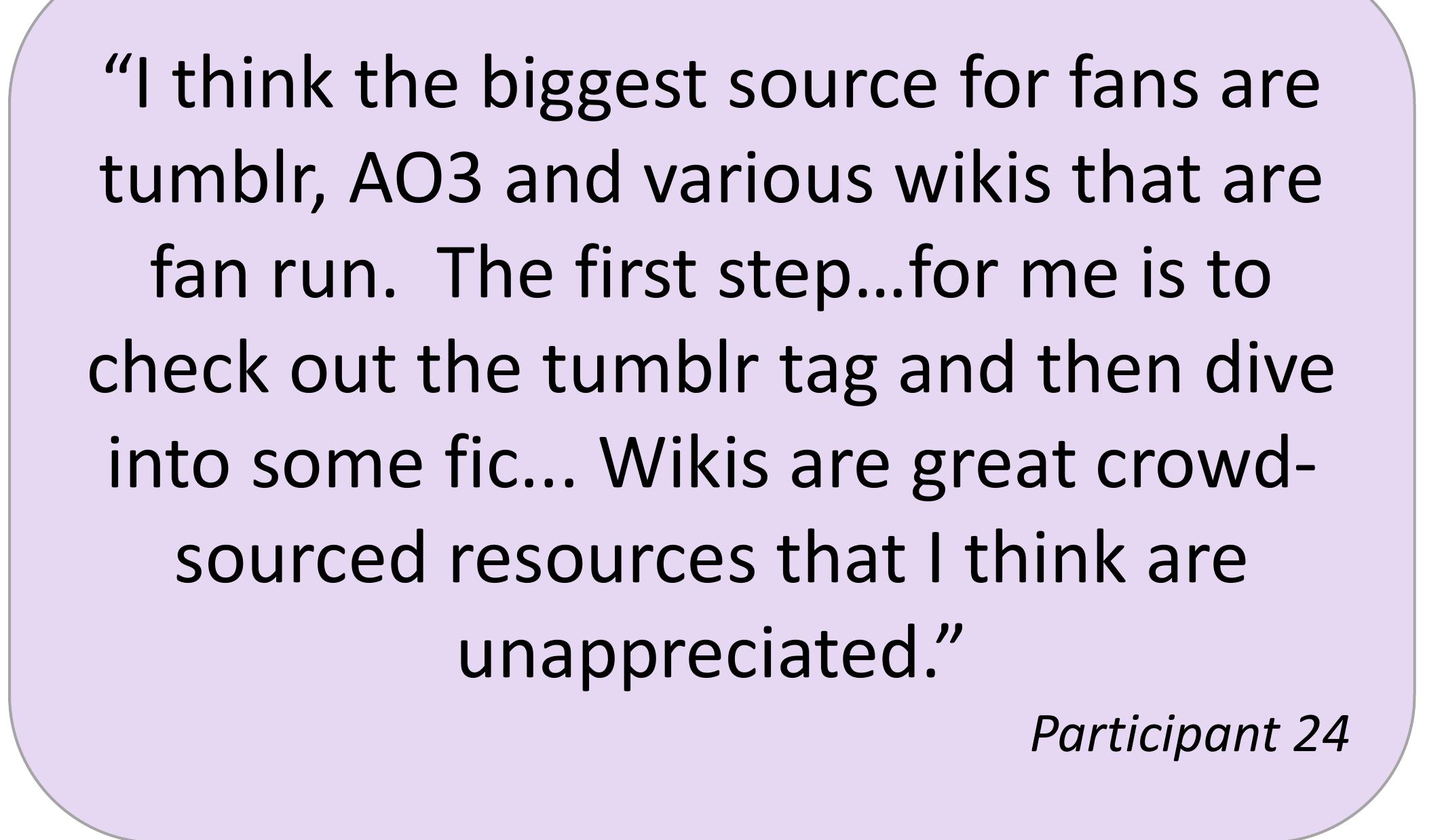 This research investigates the information behaviour of cult media fan communities on the interne... more This research investigates the information behaviour of cult media fan communities on the internet, using three novel methods which have not previously been applied to this domain. Firstly, a review, analysis and synthesis of the literature related to fan information behaviour, both within the disciplines of LIS and fan studies, revealed unique aspects of fan information behaviour, particularly in regards to produsage, copyright, and creativity. The findings from this literature analysis were subsequently investigated further using the Delphi method and tag analysis. A new Delphi variant – the Serious Leisure Delphi – was developed through this research. The Delphi study found that participants expressed the greatest levels of consensus on statements on fan behaviour that were related to information behaviour and information-related issues. Tag analysis was used in a novel way, as a tool to examine information behaviour. This found that fans have developed a highly granular classification system for fanworks, and that on one particular repository a ‘curated folksonomy’ was being used with great success. Fans also use tags for a variety of reasons, including communicating with one another, and writing meta-commentary on their posts. The research found that fans have unique information behaviours related to classification, copyright, entrepreneurship, produsage, mentorship and publishing. In the words of Delphi participants – “being in fandom means being in a knowledge space,” and “fandom is a huge information hub just by existing”. From these findings a model of fan information behaviour has been developed, which could be further tested in future research.