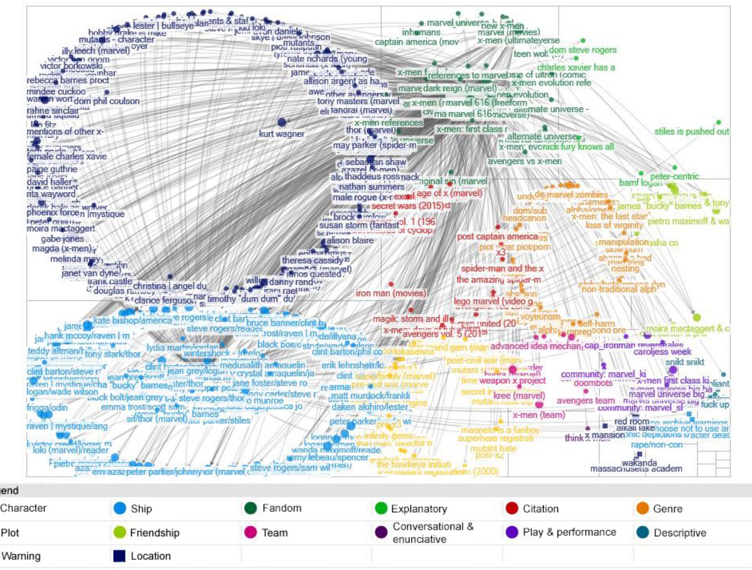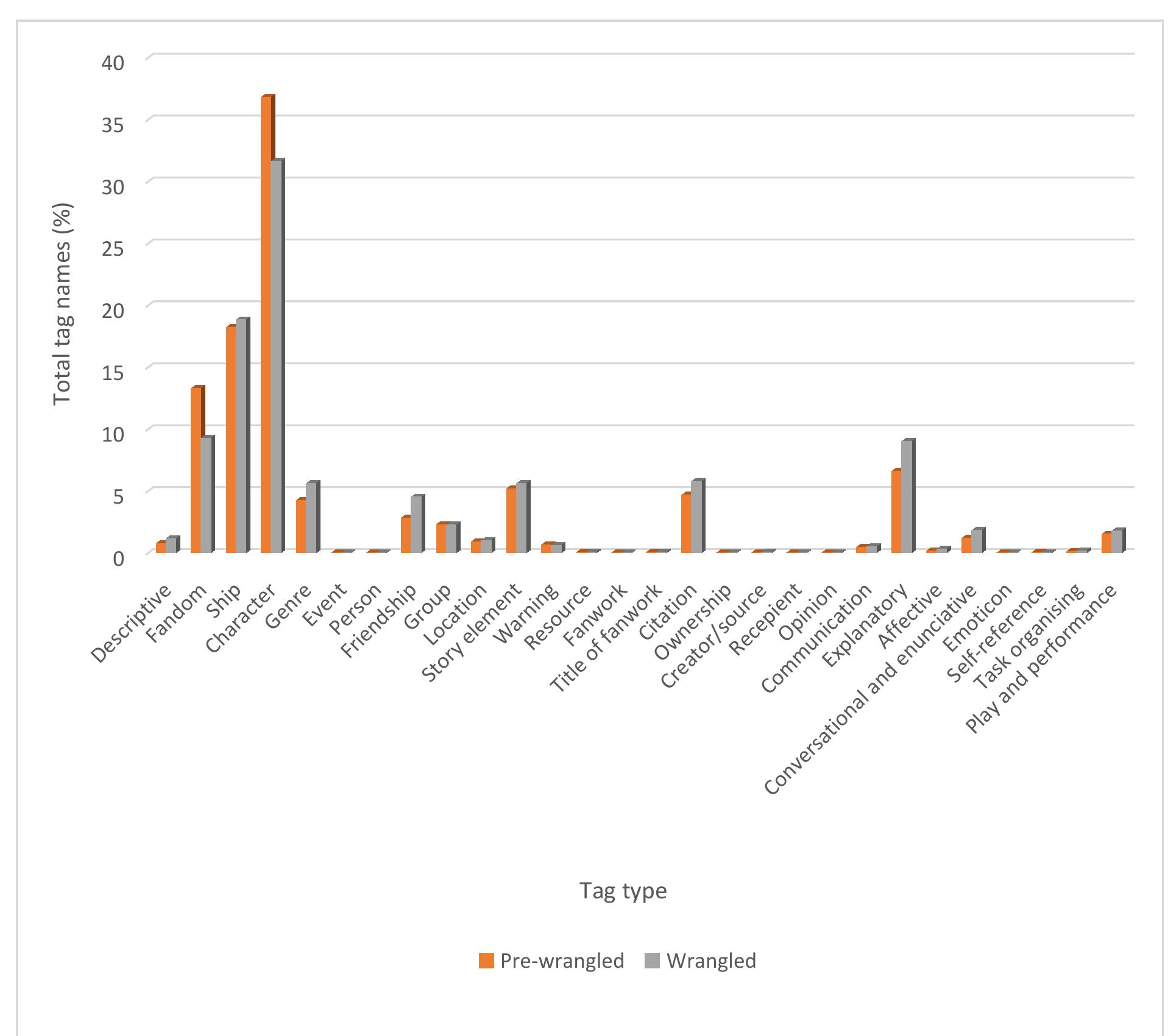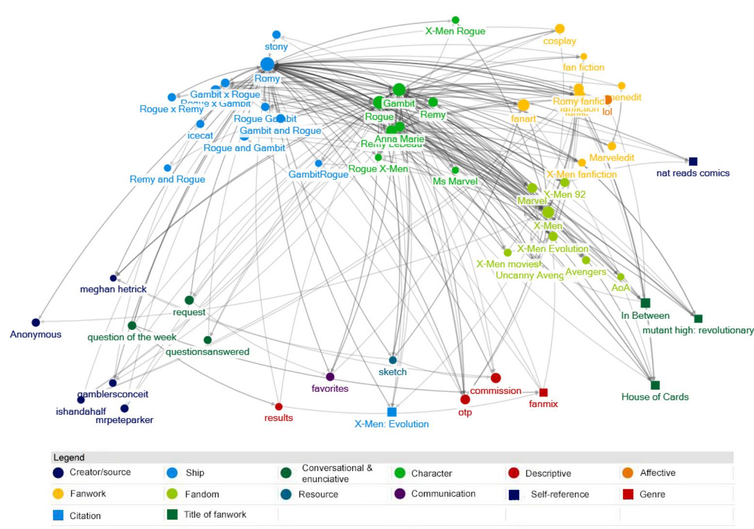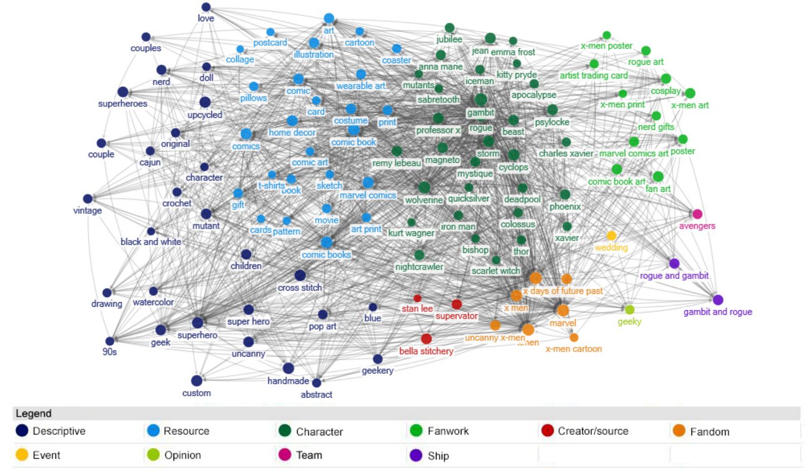 Findings: These showed that fans used tags in a variety of ways quite apart from classification purposes. These included tags being used on Tumblr as meta-commentary and a means of dialogue between users, as well as expressors of emotion and affect towards posts. On AO3 in particular, fans had developed a practice called “tag wrangling” to mitigate the inherent “messiness” of tagging. Evidence was also found of a “hybrid market economy” on Etsy fan stores. From the study findings, a taxonomy of fan-related tags was developed.