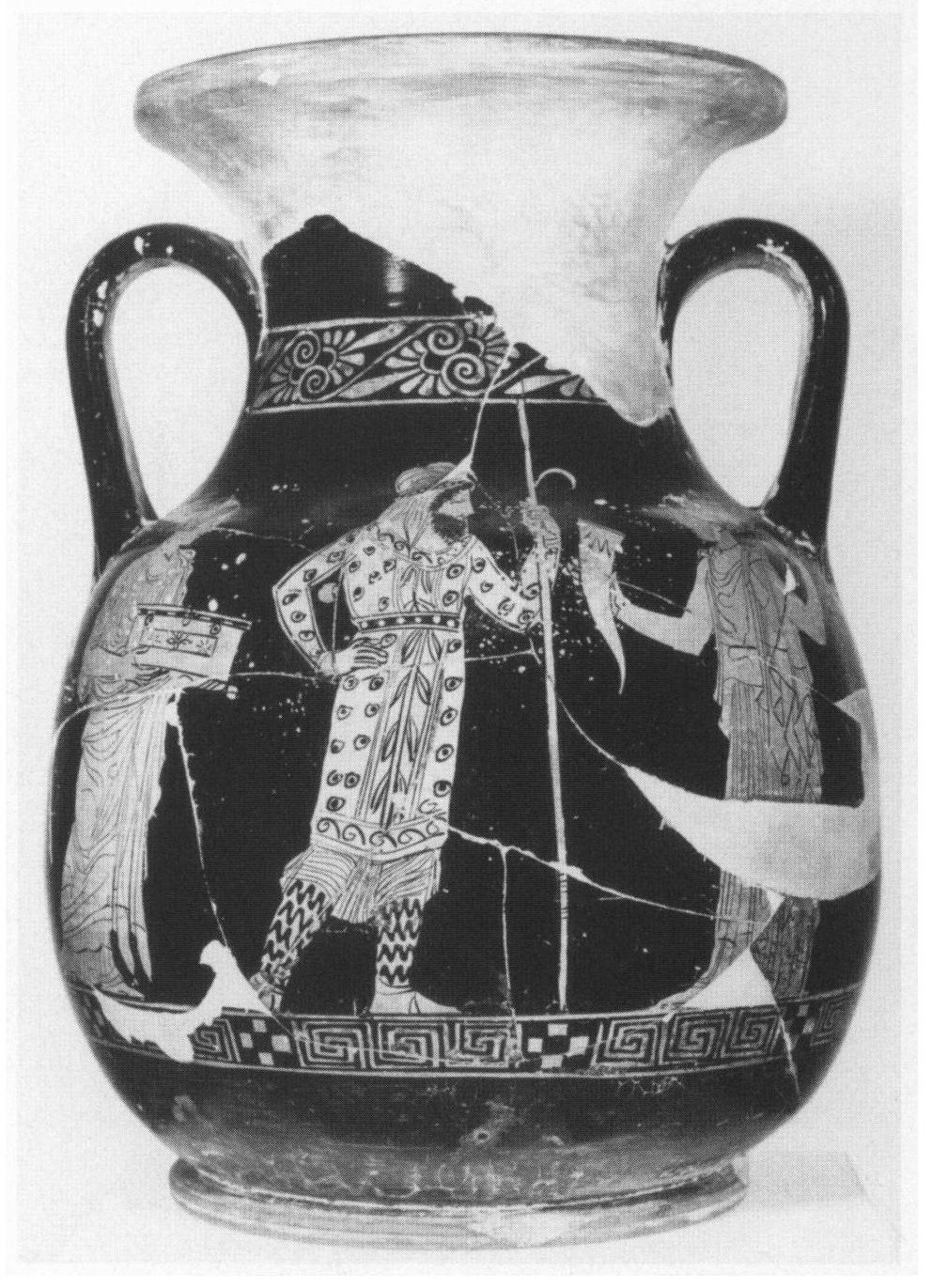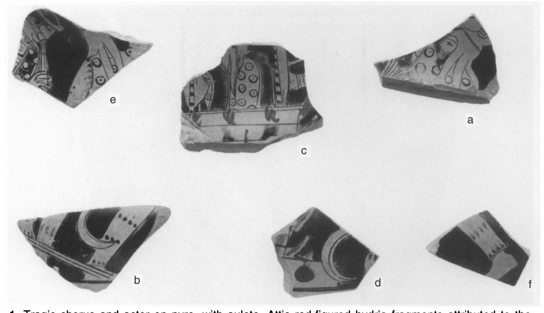 In the 1920s excavation of the North Cemetery of Corinth, five fragments o Classical Attic red-fi... more In the 1920s excavation of the North Cemetery of Corinth, five fragments o Classical Attic red-figured hydria were found, featuring a burning pyre with a figu emerging from it, gesticulating Orientals, and an elaborately dressed aulete (pi. 23: J. D. Beazley published this sadly fragmentary hydria in an important article in noted that the aulete was 'in strange company: that is to say, not on the concert-pl and not on the sports-ground', and argued compellingly that such a collocatio signify a representation of drama." The hydria immediately gained fame as one of visual testimonies to Attic tragedy. Its value as evidence was most effectively exp J. Gould and D. M. Lewis.3 Scholarly interest has otherwise focused on trying to id subject of the drama-could it be Aeschylus' Persai,4 or perhaps a tragedy abo one of a trilogy about the Mermnad dynasty whose existence had been p postulated?5