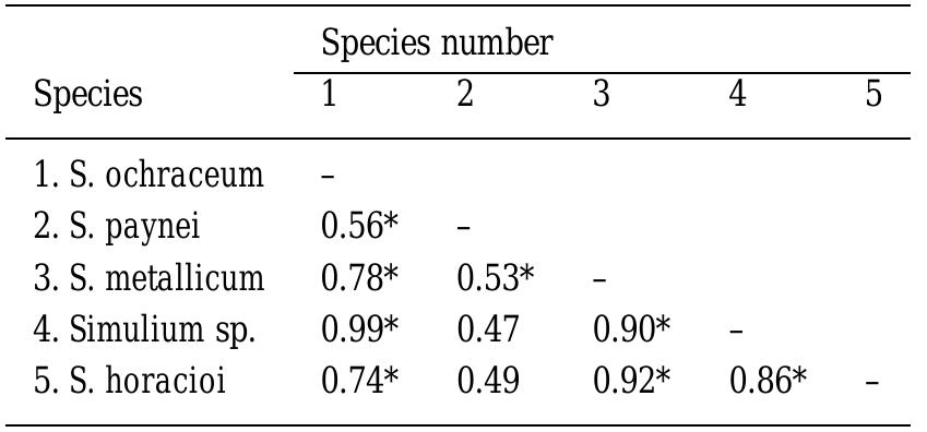 Blackfly larvae were sampled monthly from two smallNeotropical mountain streams 500 m apart from ... more Blackfly larvae were sampled monthly from two smallNeotropical mountain streams 500 m apart from each other in northernVenezuela during a 15-month period, and ten habitat variables weremeasured at two altitudes (800 and 900 m) to determine local spatialand temporal variations in abundance, stream variables, speciesco-occurrence, and substrate preference within the blackflyguild. The blackfly species composition of each stream was the same,with five species (in order of abundance): Simulium ochraceumWalker s.l., S. paynei Vargas, S. metallicum Bellardicytospecies E, Simulium sp., and S. horacioi Okazawa &Onishi. There were clear differences in community structurebetween streams (not among altitudes), although S. ochraceums.l. was the most abundant species in both habitats. Principal component andcorrelation analyses revealed that structural (great depth, width,flow, and discharge) and chemical (low conductivity) factors werethe stream variables best associated to the spatial distribution ofmost blackfly species. Blackfly abundance was greater in the largerstream. Larvae were most abundant on submerged rocks and fallenleaves, although the patterns of substrate use within the guildrevealed substrate partitioning among most blackfly species.There was one general annual peak of abundance at the end of therainy season. We suggest that blackfly community structure in theseNeotropical headwaters streams, over the small spatial scaleexamined here, is largely influenced by interactions among streamsize and velocity-related factors (width, streamflow, discharge andsubstrate availability-stability) and the rainfall regime.