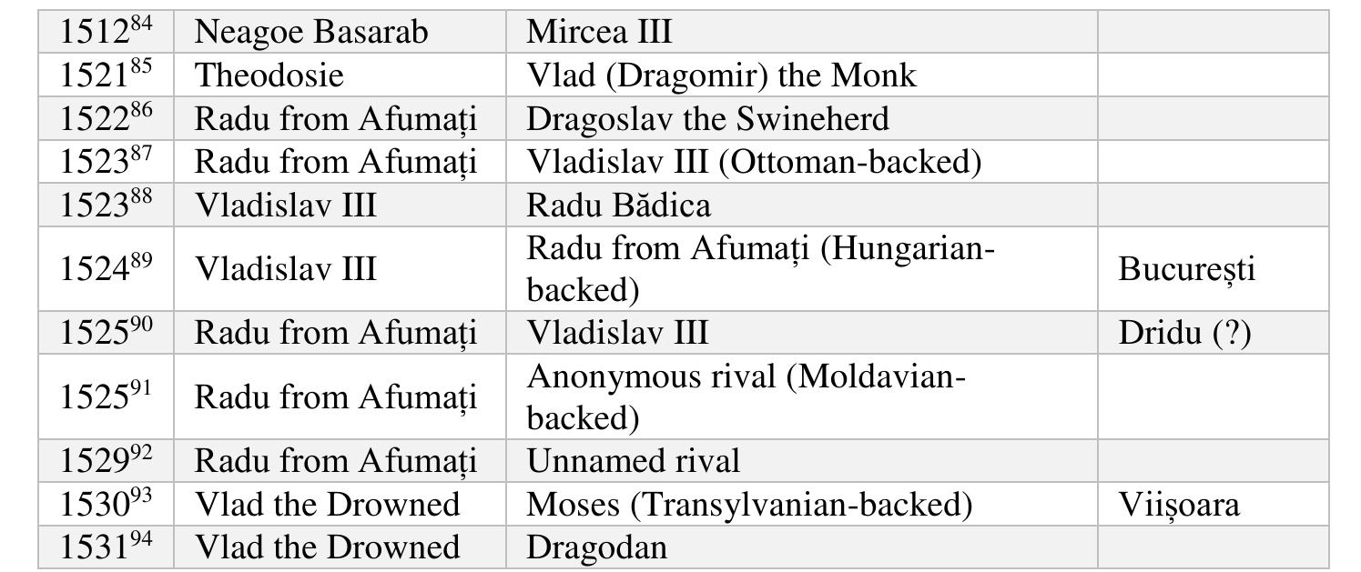 Of more than fifty lords ruled Wallachia from 1418 to 1632, only four directly inherited the thro... more Of more than fifty lords ruled Wallachia from 1418 to 1632, only four directly inherited the throne. Usually, a bid for the throne was decades long and it took extremely convoluted routes, as a successful pretender needed to gather a wide-ranging coalition of supporters and allies. The competition for the throne often led to open military confrontations and the armies involved in such battles were usually mixed. Throughout this period, the slow integration of the realm into the Ottoman Empire brought significant changes into the game of Wallachian politics and, more often than not, the Ottoman troops were actively participating to these battles. The aim of this article, which has a threefold structure, is to investigate the military confrontations for the throne of Wallachia. The first part will sketch a few methodological caveats, by mapping the different distortions of the primary sources, both intentional and unintentional. The second part proposes a broad overview, delineating the main phases in the history of the military confrontations for the throne of Wallachia from 1418 to 1632. Finally, the third and last section of the study attempts to theorize the main rules of engagement, trying to define the circumstances, conditions and manners in which a battle for the throne of Wallachia took (or did not take) place, with a special focus on the involvement of the Ottoman contingents.