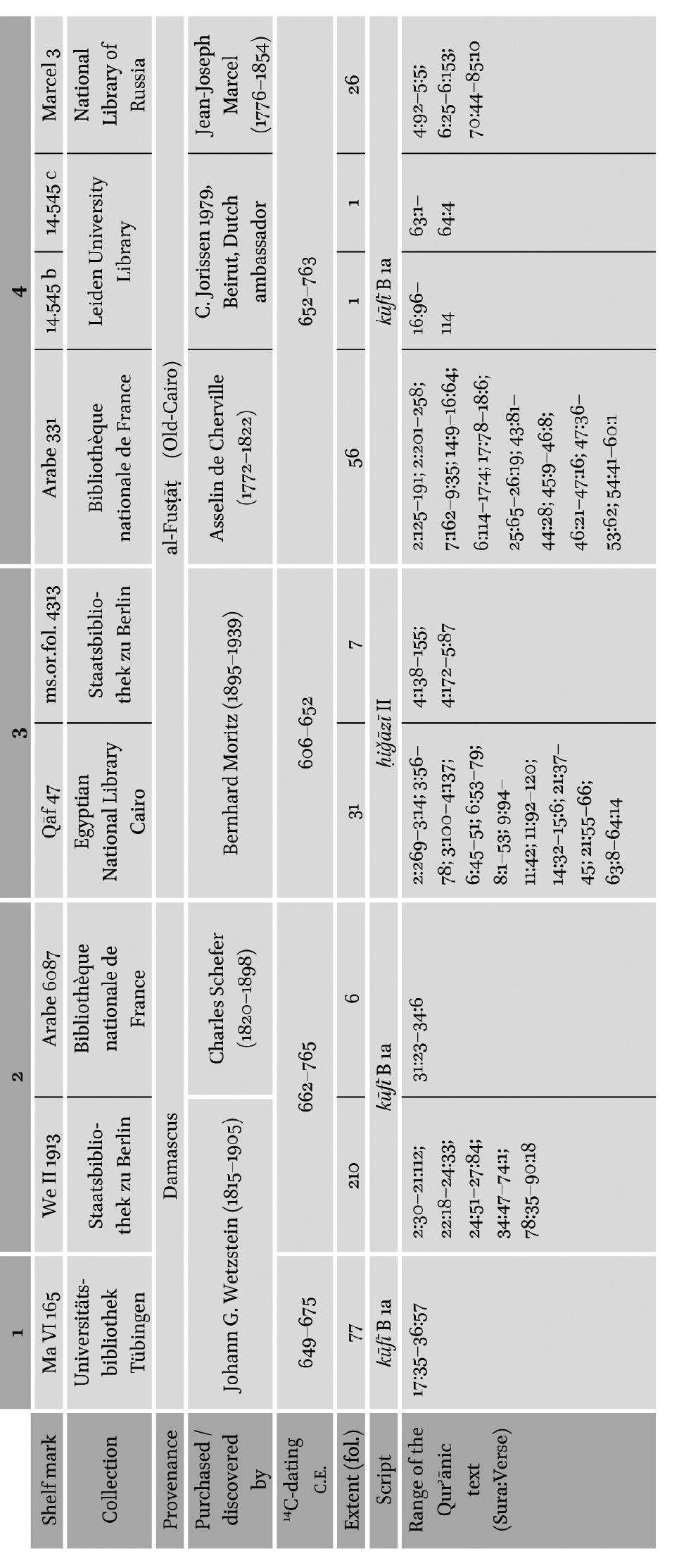Vgl. eine erste Übersicht von Fragmenten, die auf ca. 750 n. Chr. zu datieren sind, in: Marx: Der... more Vgl. eine erste Übersicht von Fragmenten, die auf ca. 750 n. Chr. zu datieren sind, in: Marx: Der Korantext als Herausforderung (Fußnote 24), S. 430-35. Vgl. die Untersuchungen von Gregor Schoeler zur Wissensvermittlung im frühen Islam, z. B. Gregor Schoeler: Écrire et transmettre dans les débuts de l'Islam. Paris: Presses universitaires de France 2002.