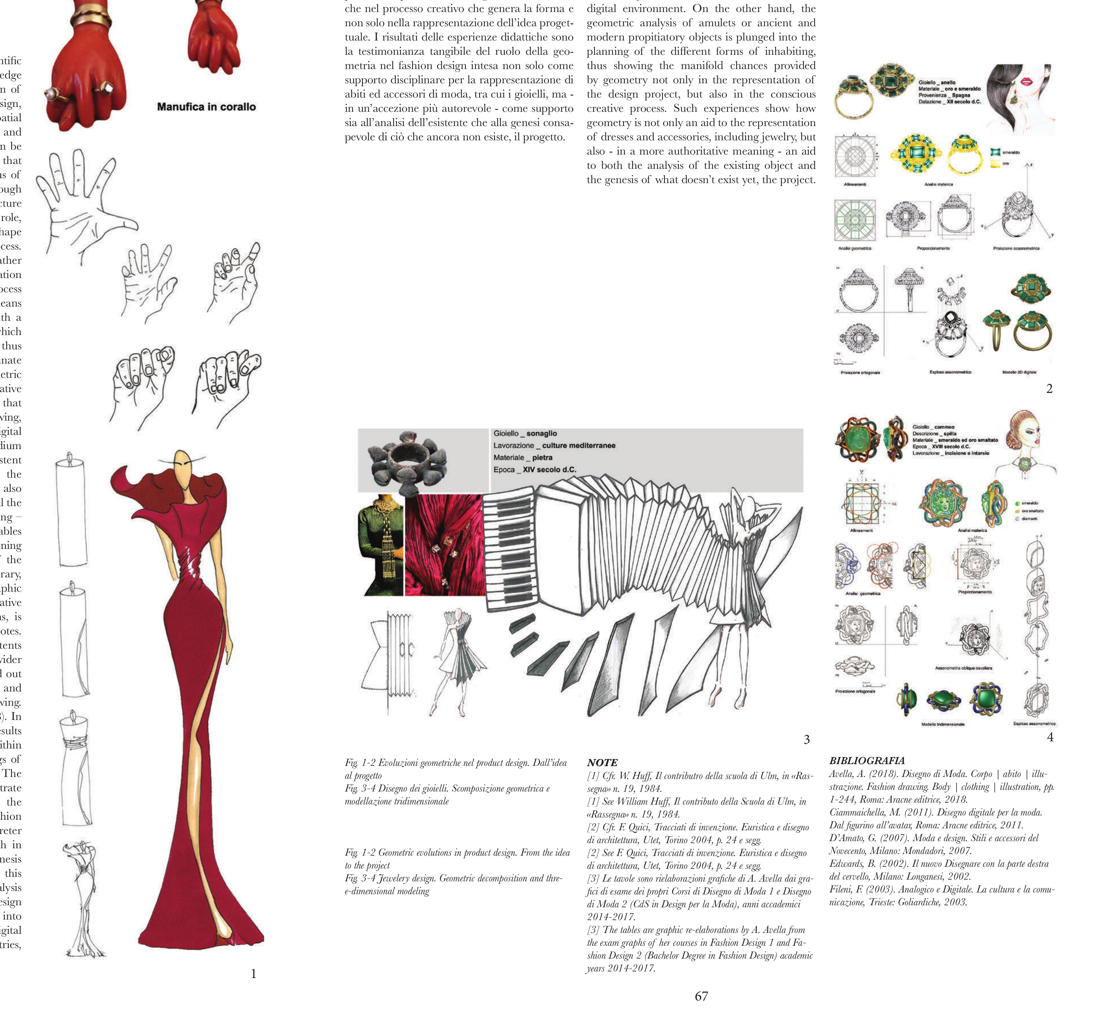 The improvement in fashion design and the availability of new design and production technologies ... more The improvement in fashion design and the availability of new design and production technologies tools, has gained a starring role thus becoming part of the creative process. Because the advent of algorithmic drawing tools, which base their design flow on the reproduction and on the it- eration of biological and evolutionary systems, the com- putational approach to design, acquires a substantial role and characterizes, increasingly guiding and directing, the formal abstraction and conceptualization of the project and the subsequent design product.