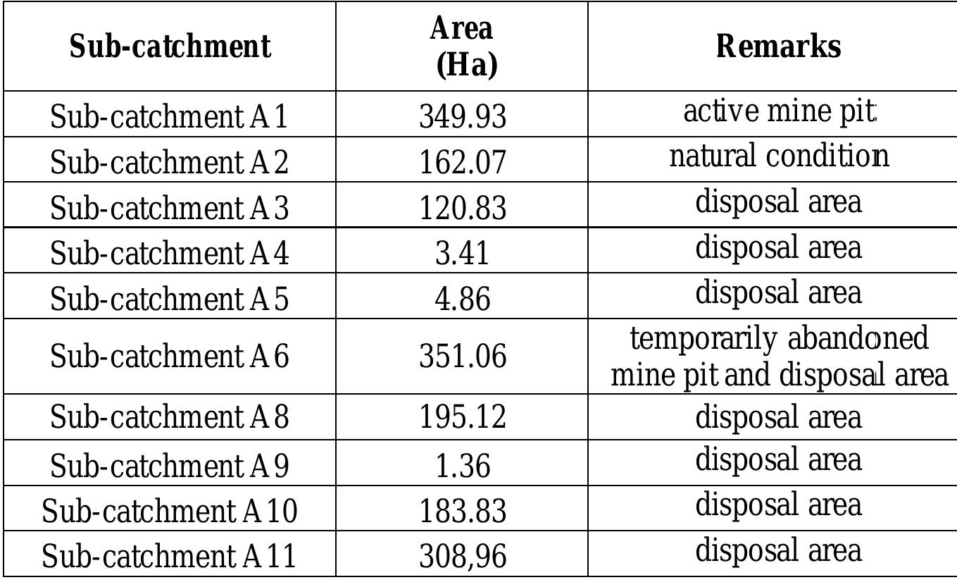 Lati coal mine is one of four mine sites owned and operated by PT. Berau Coal located in East Kal... more Lati coal mine is one of four mine sites owned and operated by PT. Berau Coal located in East Kalimantan. The mine is suffering from acid mine drainage (AMD) problem since most of the overburden as well as inter-burden materials are classified as potentially acid forming. Ukud River is located in the southern part of Lati mine site. The catchment area covers a total area of 1738.67 Ha consisting of 48.6% min e disturbed area and 51.4% of natural area. The river has been indicated to be impacted by AMD with pH value of 3-4 since in the past operation there was no segregation between potentially acid forming material and non-acid forming material when dumping the overburden. in this catchment. The hydrological responses in the river are strongly influenced by the dynamics of catchment area. Ukud's catchment area is divided into 11 sub-catchments. Monitoring has been conducted to evaluate the behavior of water quality flowing from each sub-catchment. Low pH has been measured in almost all monitoring points except one point representing the undisturbed natural condition with pH of 7.01. In 2009, the water quality simulation was conducted to identify the critical sub-catchment with highest contributors for AMD, i.e. sub-catchments A1, A8 and A10. Continuous monitoring campaign has shown that in 2013 the main contributors are sub-catchment A1 (active mine pit) and A7 (temporarily abandoned mine pit). The dynamic change of Ukud's catchment area due to mine pit opening, waste dump enlargement as well as mine dewatering system are the challenges in AMD management. AMD treatment effort and reclamation of disturbed area should be integrated with the mine planning.