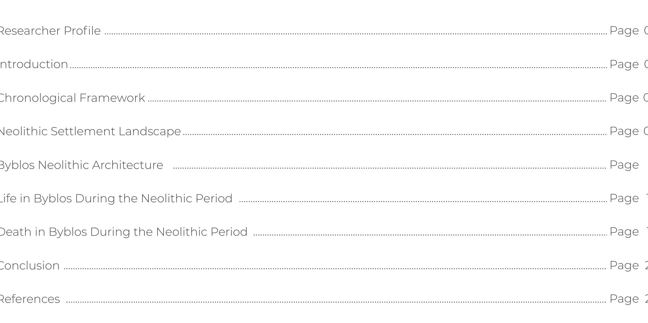 Over more than a century, extensive archaeological excavations have taken place in Byblos. The ai... more Over more than a century, extensive archaeological excavations have taken place in Byblos. The aim of this paper is to shed light on the Neolithic settlement of Byblos and narrate the story of human communities in Byblos during the emergence of settled life. It encompasses the dawn and development of this settlement, the evolution of architecture, the expansion of settlements and continuity from the Neolithic to the Chalcolithic period. Furthermore, it delves into subjects like the dynamics of life and death in prehistoric Byblos, and presents the origins and legacy of this city through an interdisciplinary lens that combines prehistoric archaeology and anthropology. This study has integrated old archaeological drawings while introducing novel illustrations and reconstructions to enhance our understanding on Byblos during the Neolithic period.
