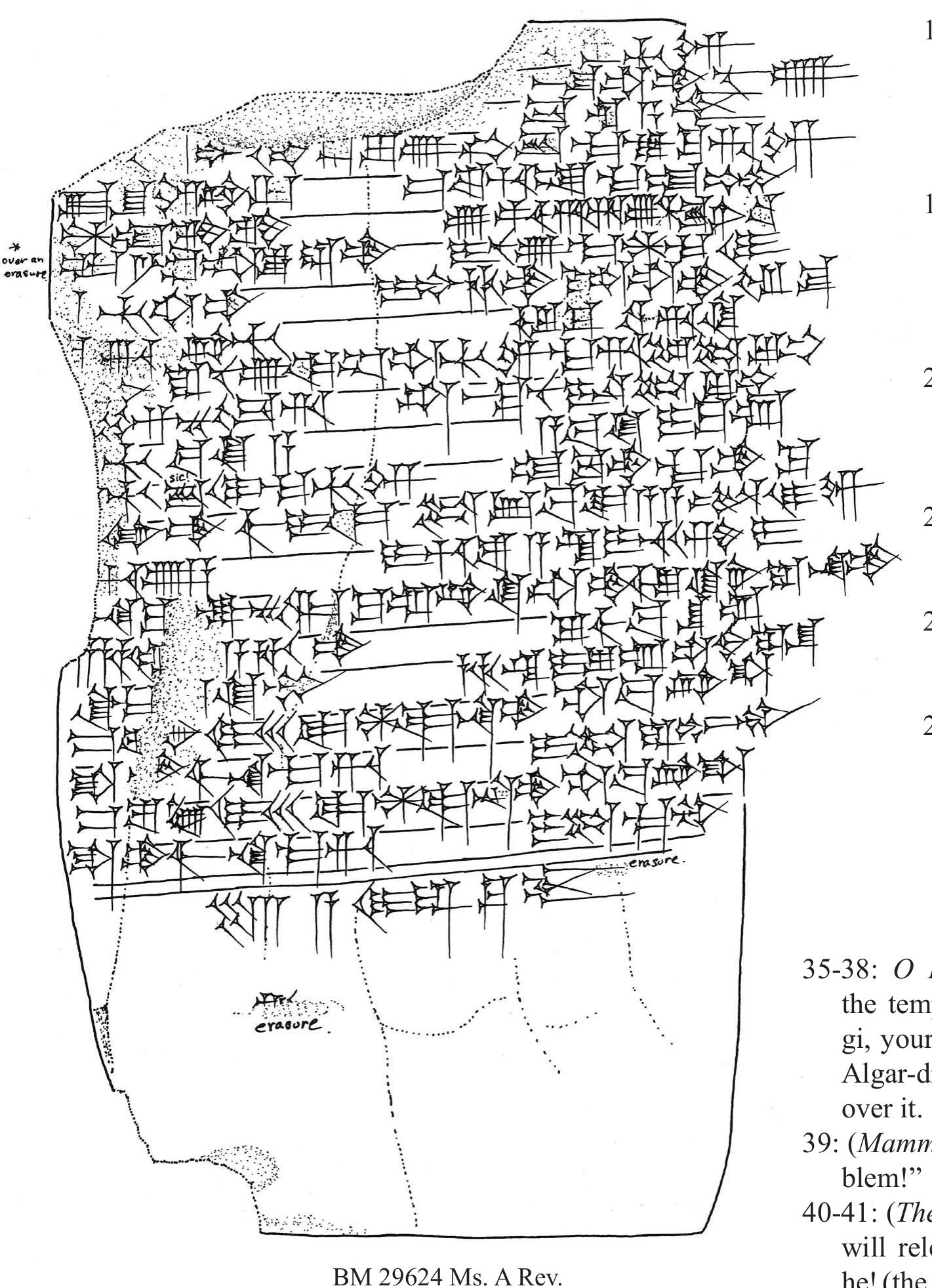In this paper we present for the first time an intriguing Akkadian lament of the mother goddess o... more In this paper we present for the first time an intriguing Akkadian lament of the mother goddess over her destroyed temples. Remarkably, the lament, almost complete, is known from two exemplars: BM 29624 (ms. A) and BM 109164 (ms. B). Judging by their grammar, orthography, and sign-forms, both tablets date to the early Old Babylonian period. Ms. A preserves a colophon, which identifies the lament as amerakūtum. We propose the historical framework for this unique literary piece, discuss it against the background of other Old Babylonian laments and analyze the musical and architectural components of the temple that are described in the lament.
