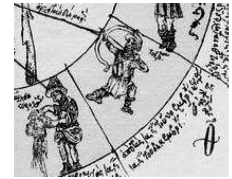 The image of Sagittarius zodiac occurs in different forms: in Islamic art the archer has the body of lion or fantastic animal (Fig. 8, 9, 10), in Europe, mainly, it is centaur or the figure on foot (Fig. 11, 12, 13, 14, 15, 16). The hunter of Oshki relief should be one of the variants of depicting of zodiac sign of Sagittarius – on foot, kneeling archer.