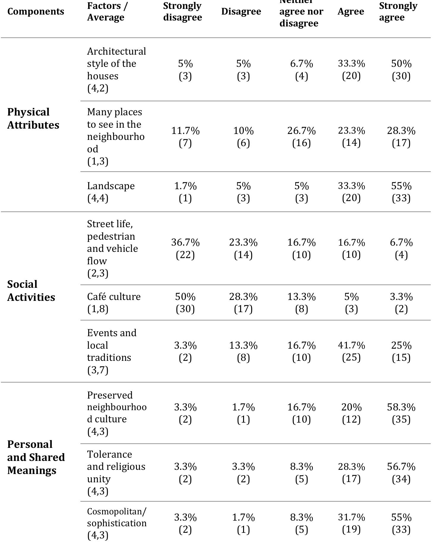 This paper foresees to contribute to the literature by developing an empirical study on the concept of sense of place with its descriptive and interpretive approach. Further studies, which can utilize the results of this article, may answer questions about how the components related to sense of place sought out and reinterprets these factors over historical places.